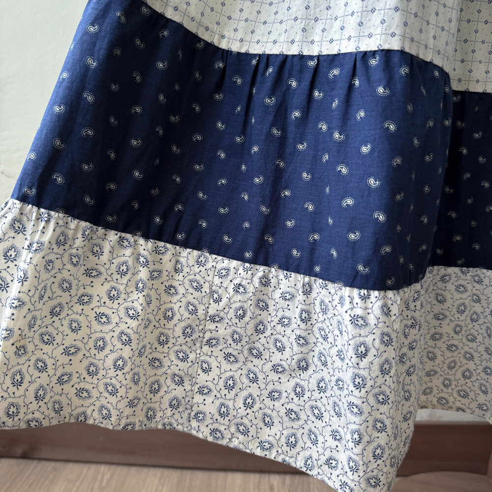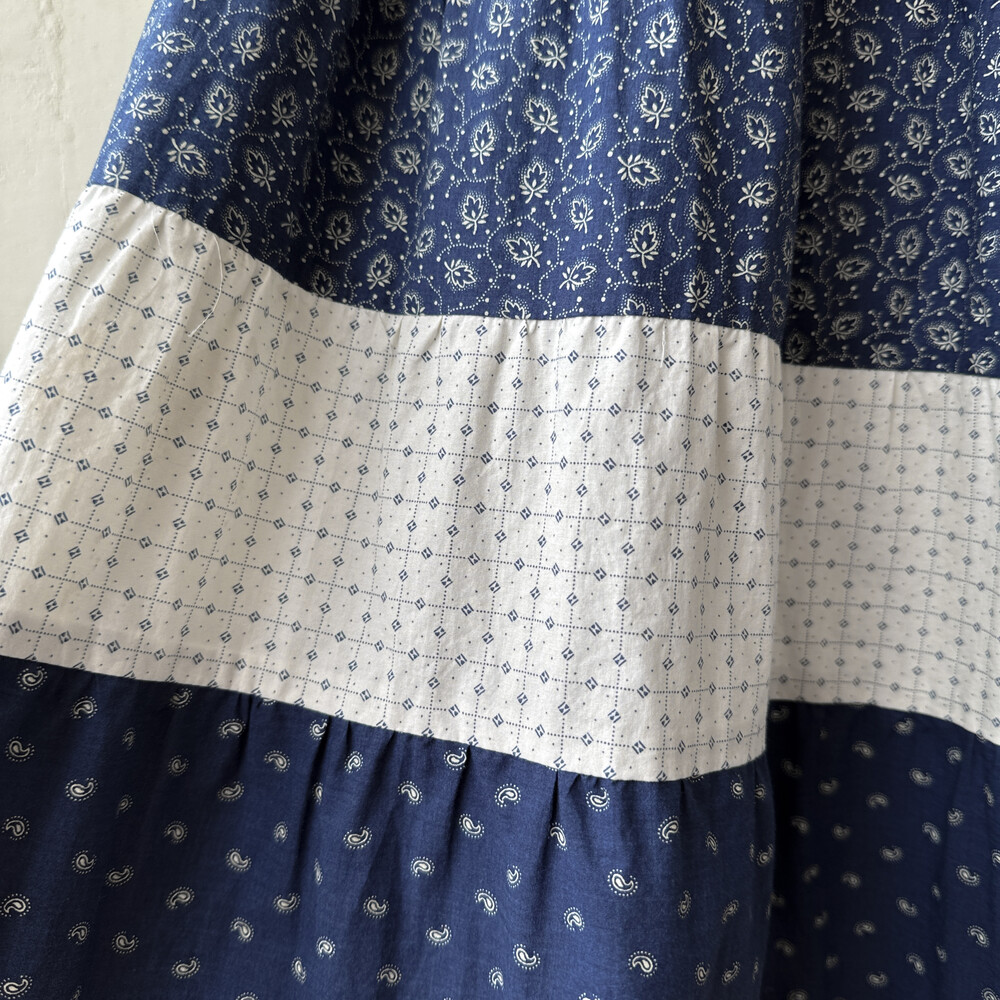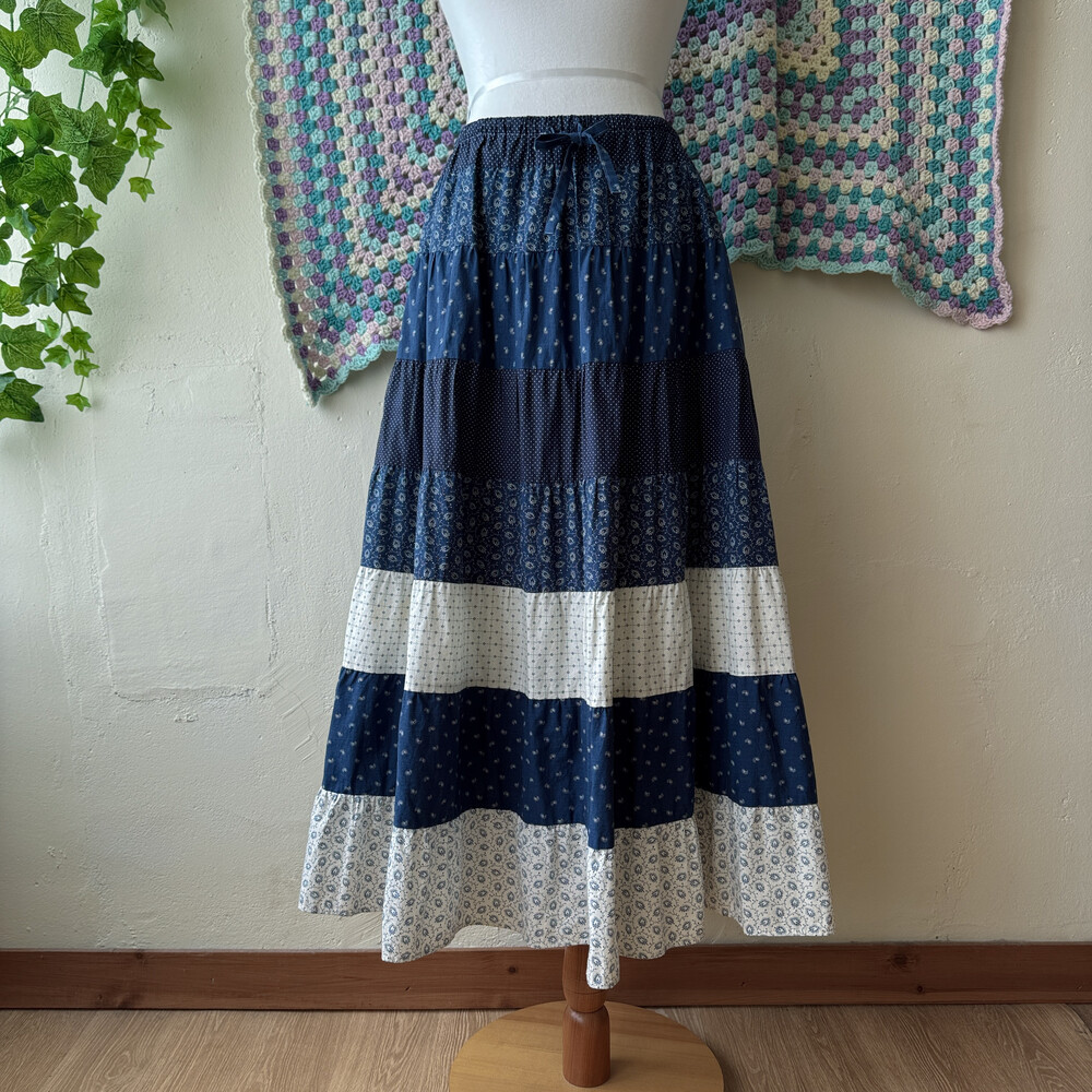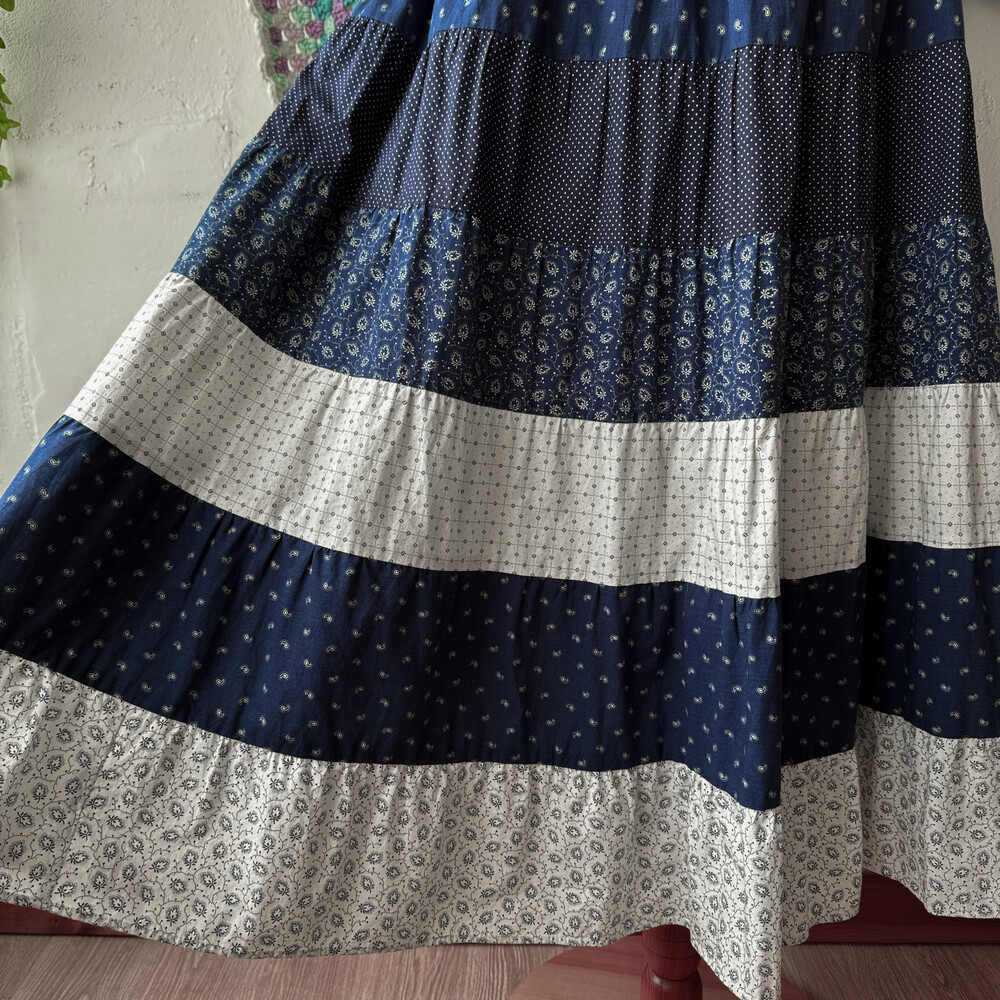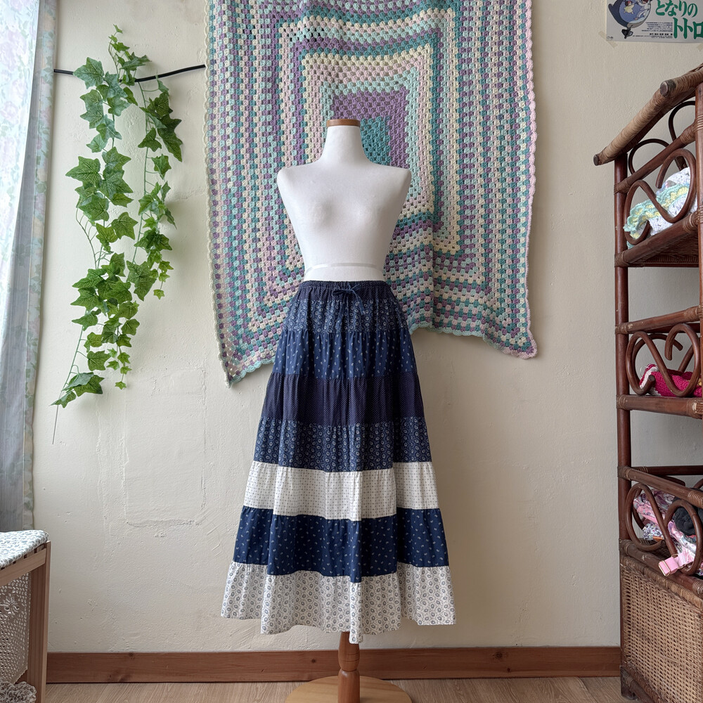 네이비, 아이보리 색감의 패치워크 스커트예요