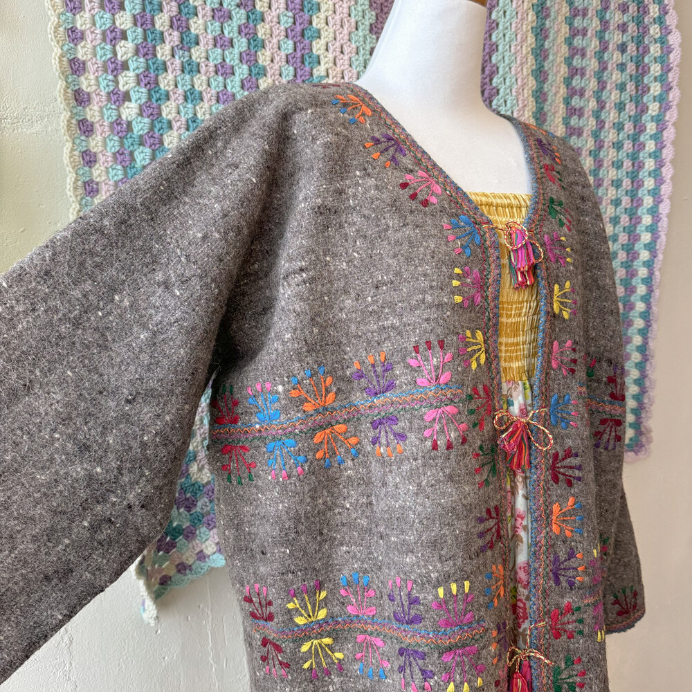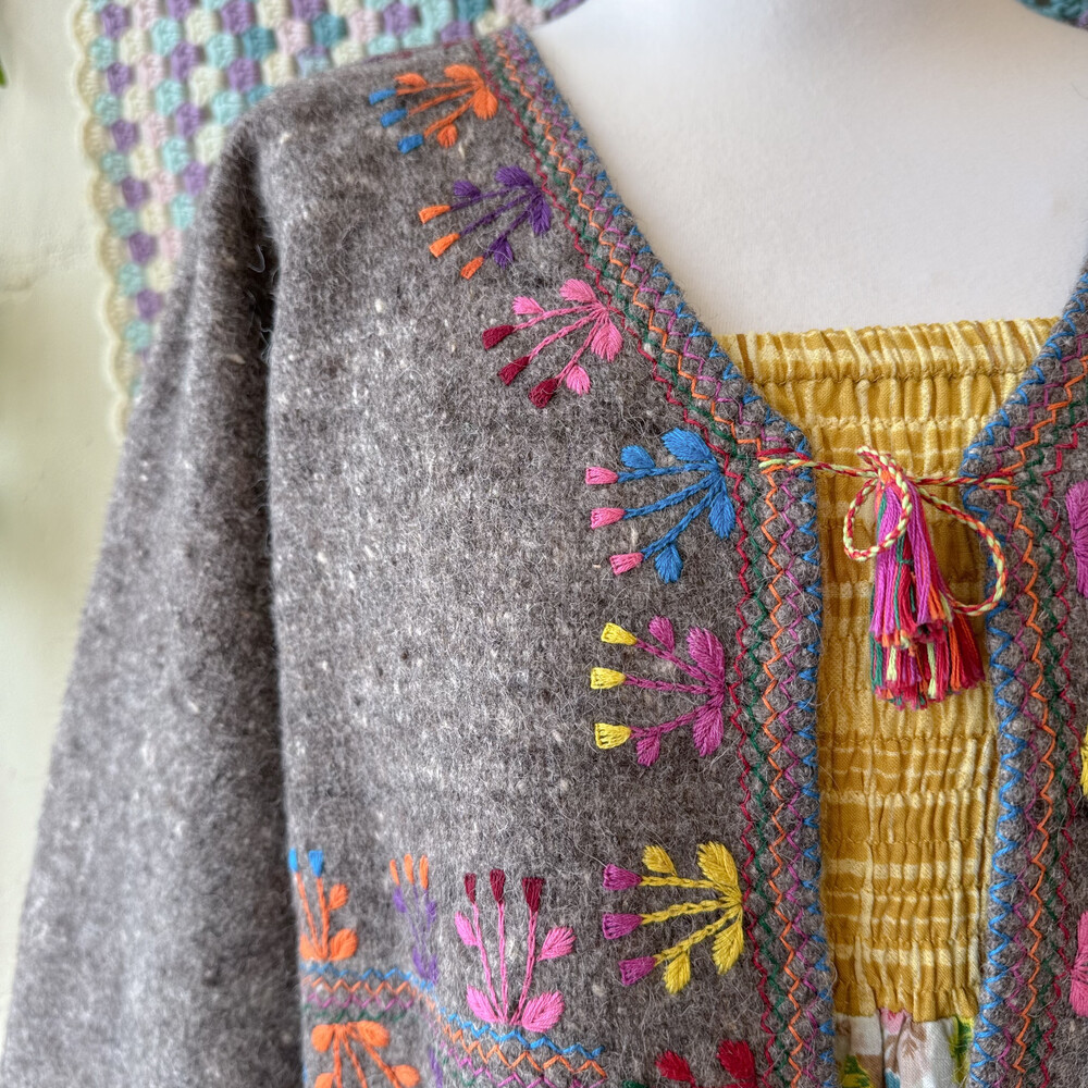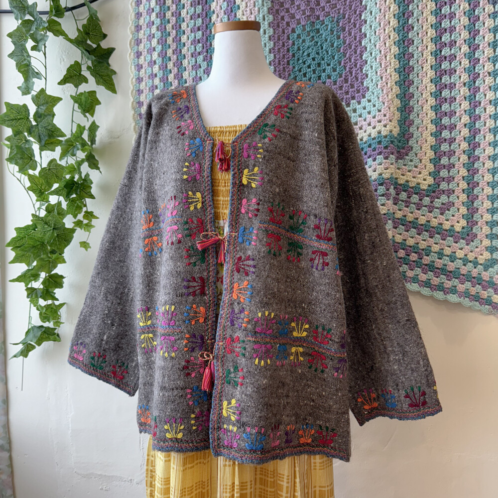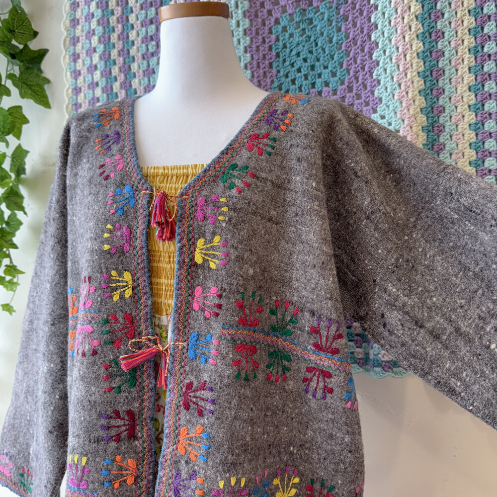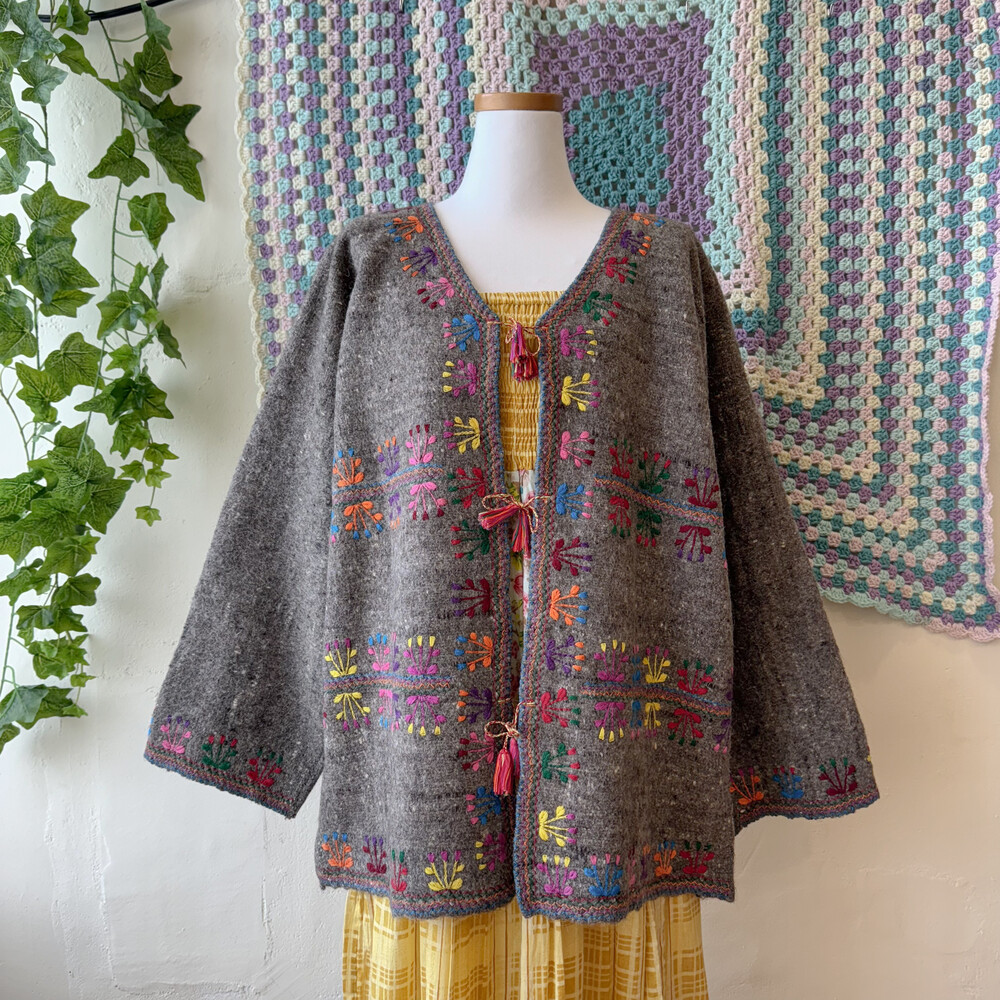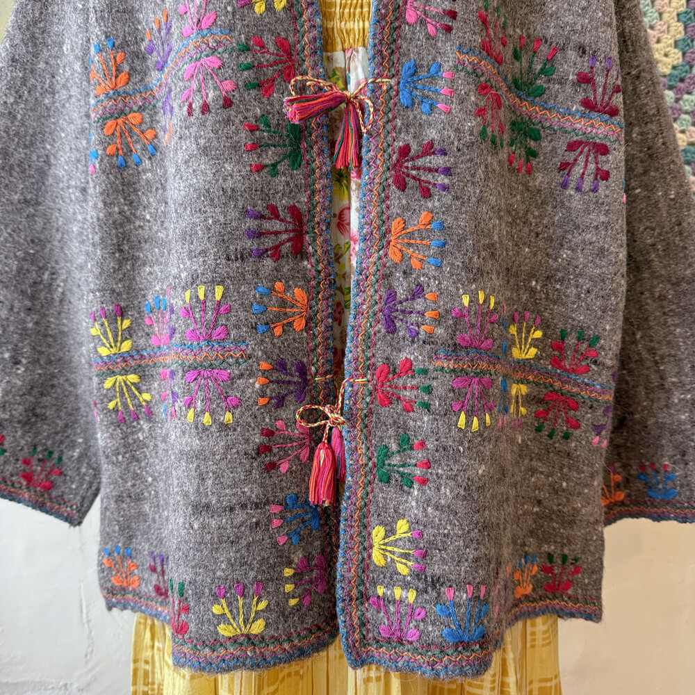 히피한 분위기의 자수 가디건이에요