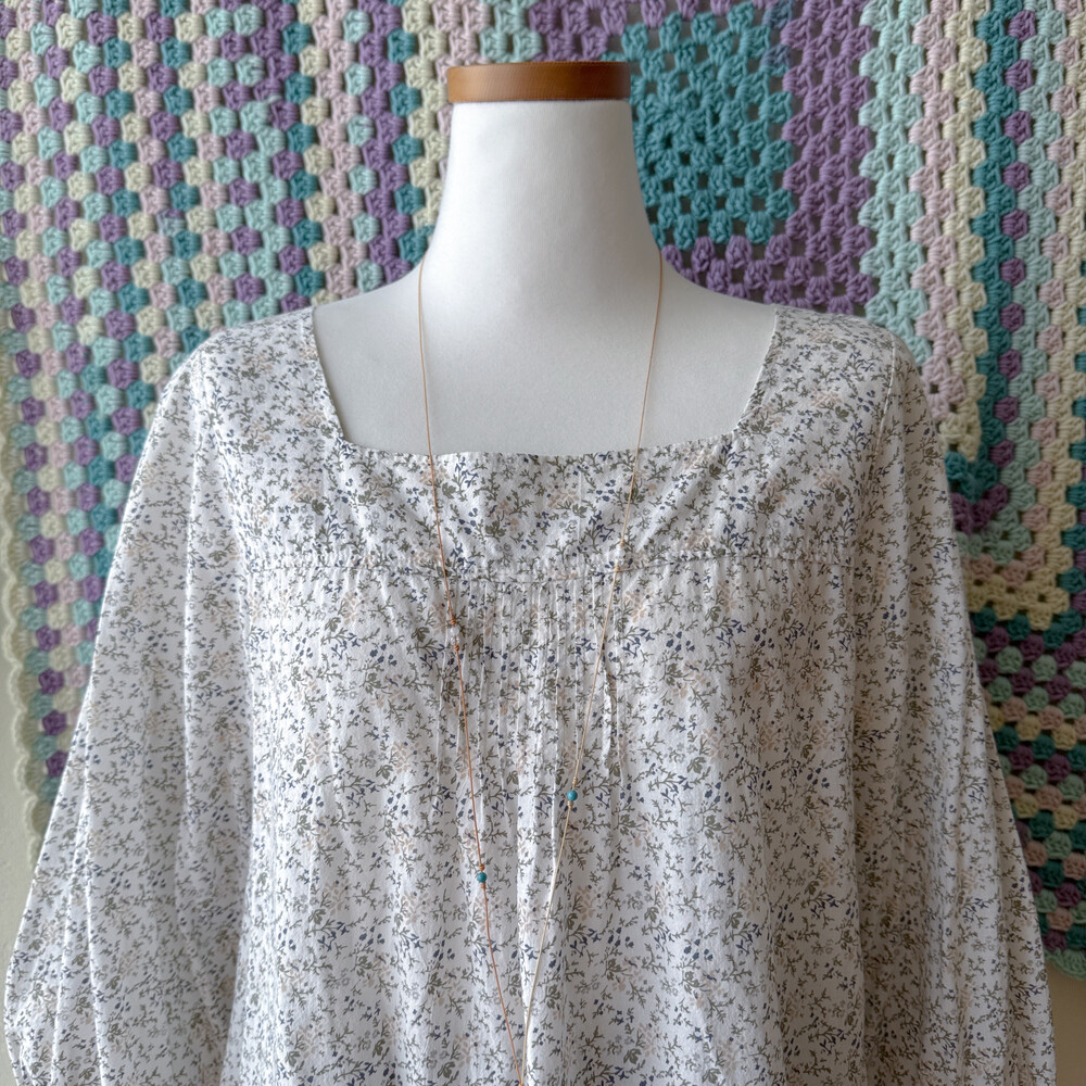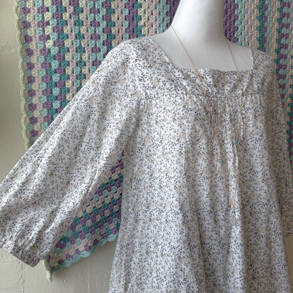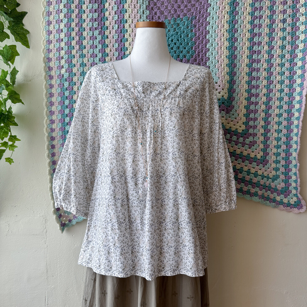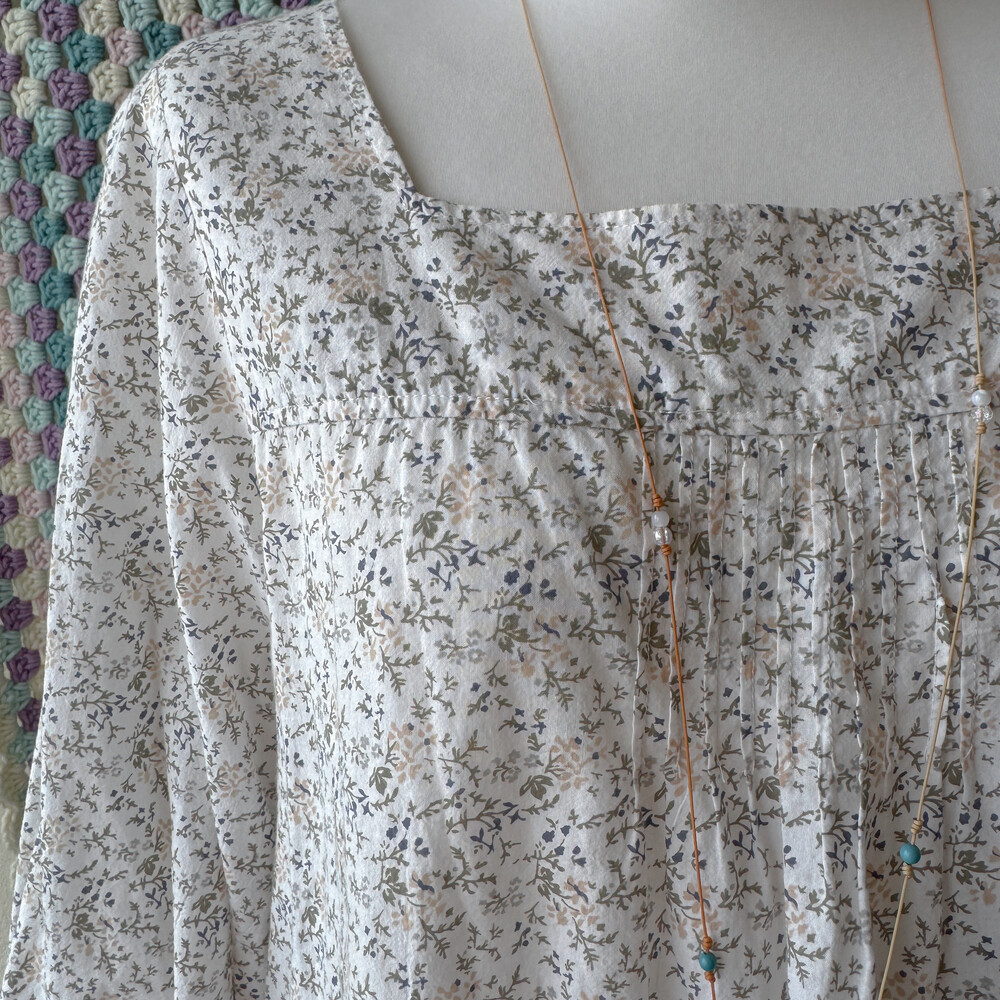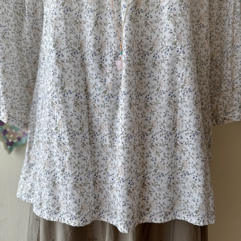 shuca의 화이트 색감 잔꽃무늬 블라우스예요