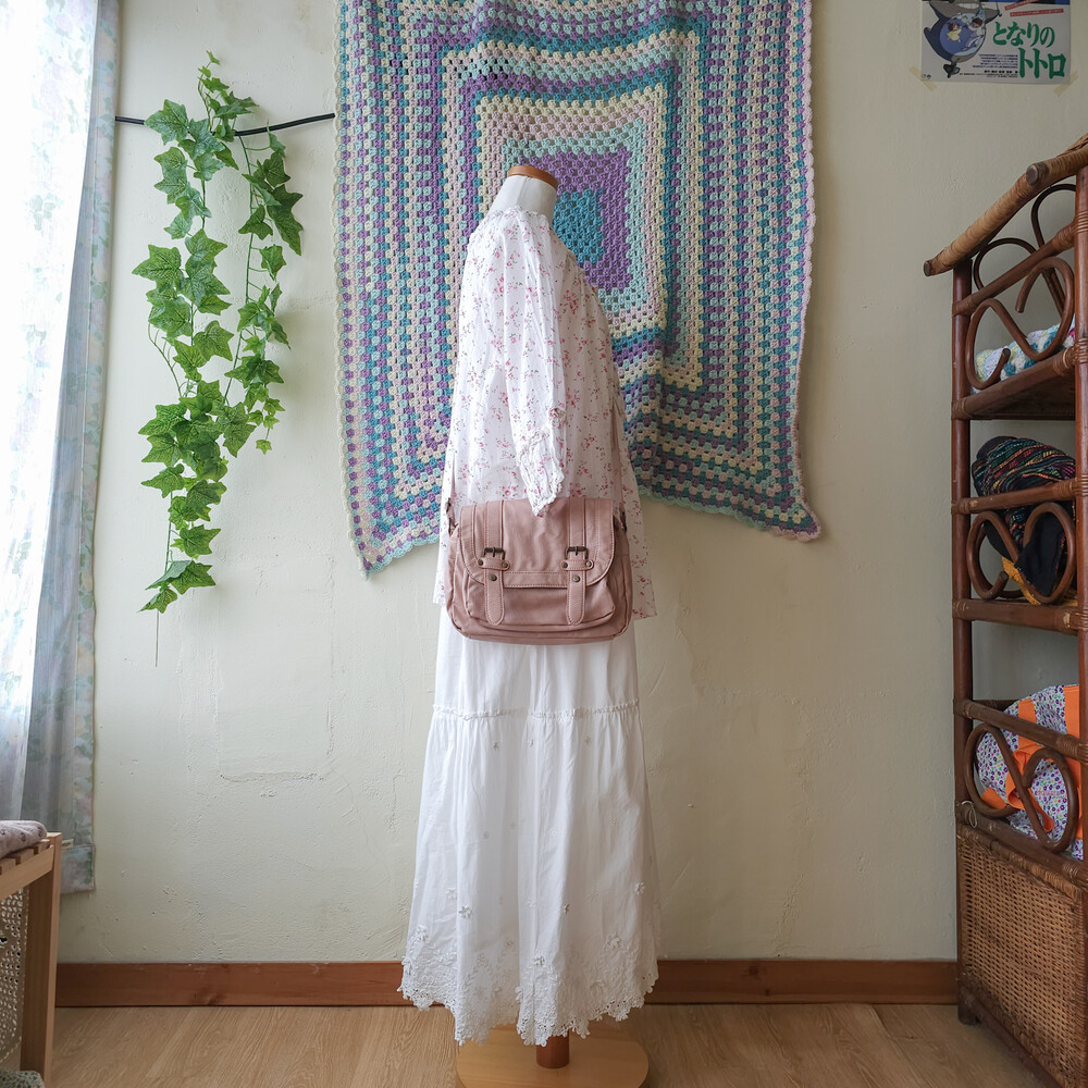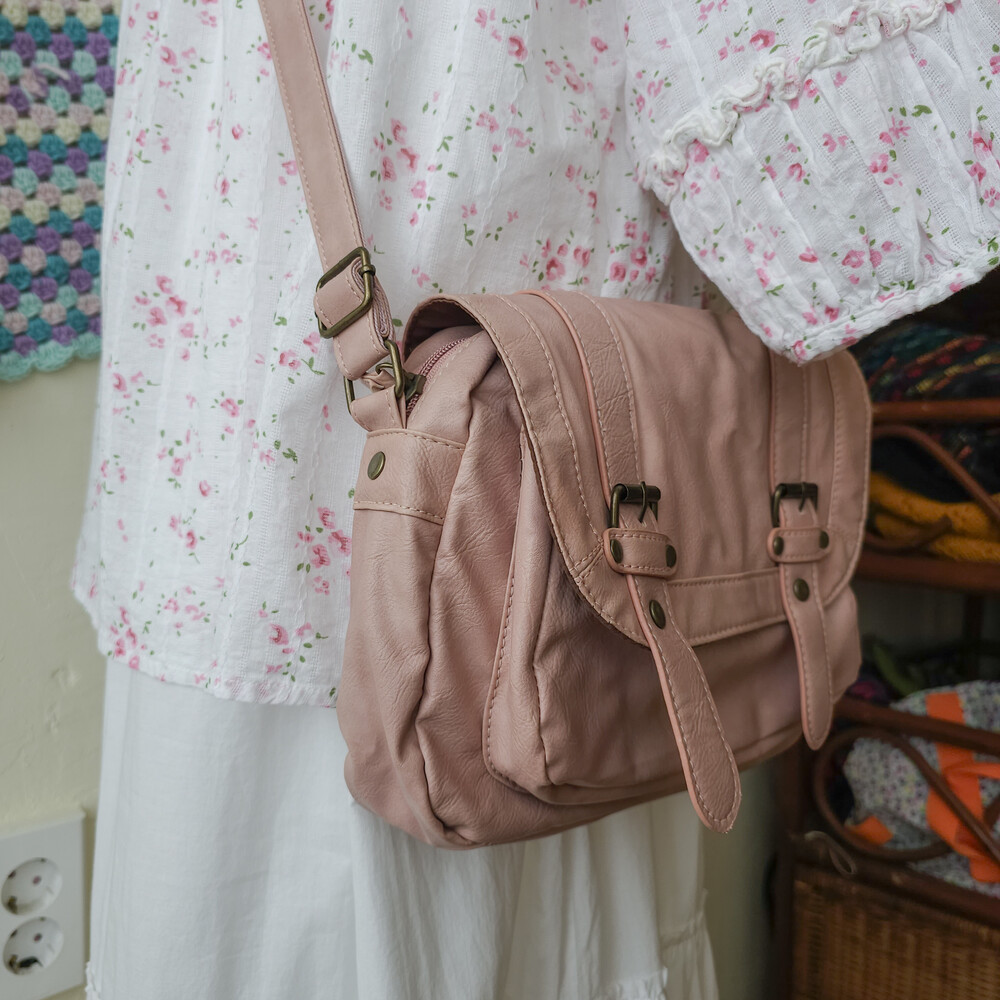 뮤트 핑크 색감의 크로스백이에요
