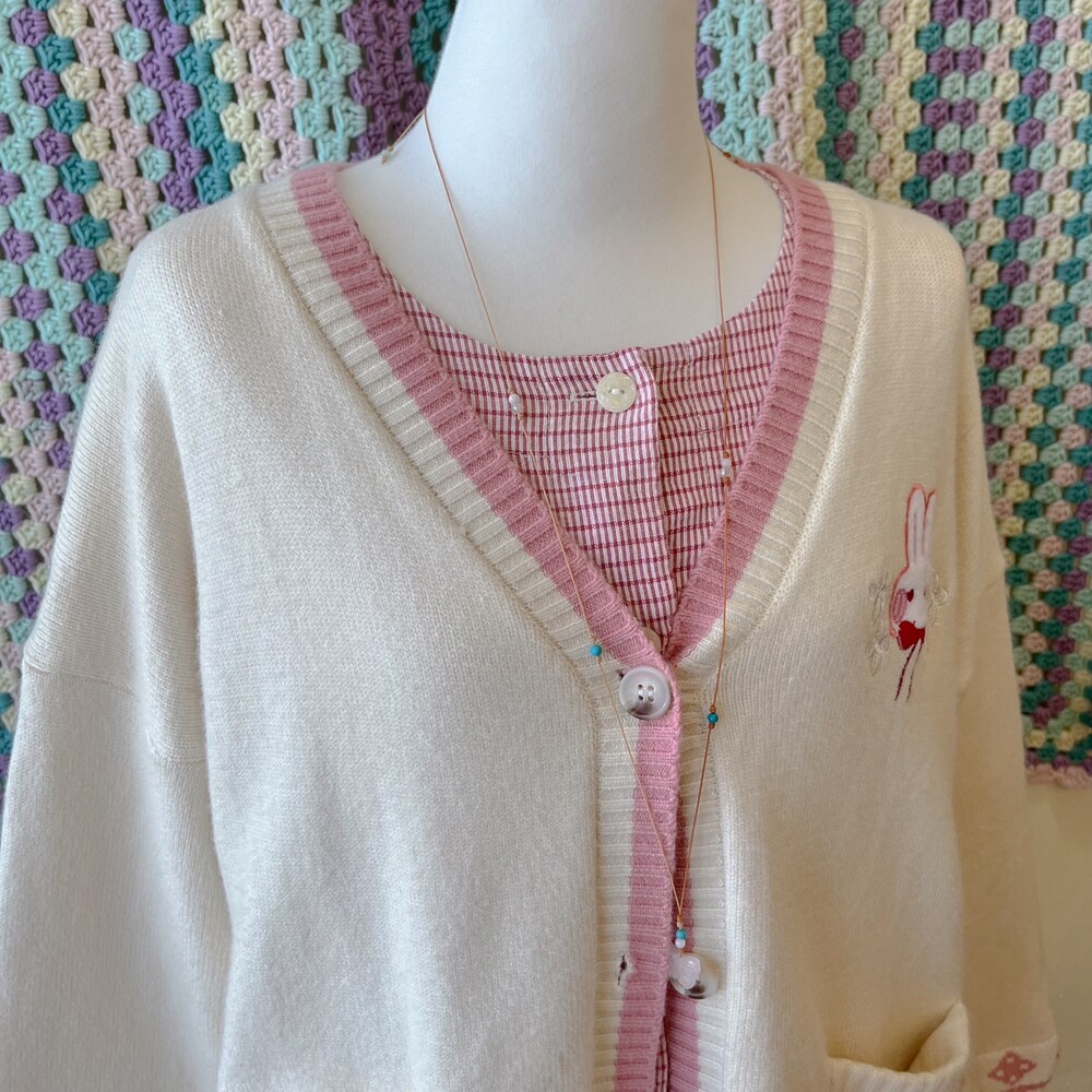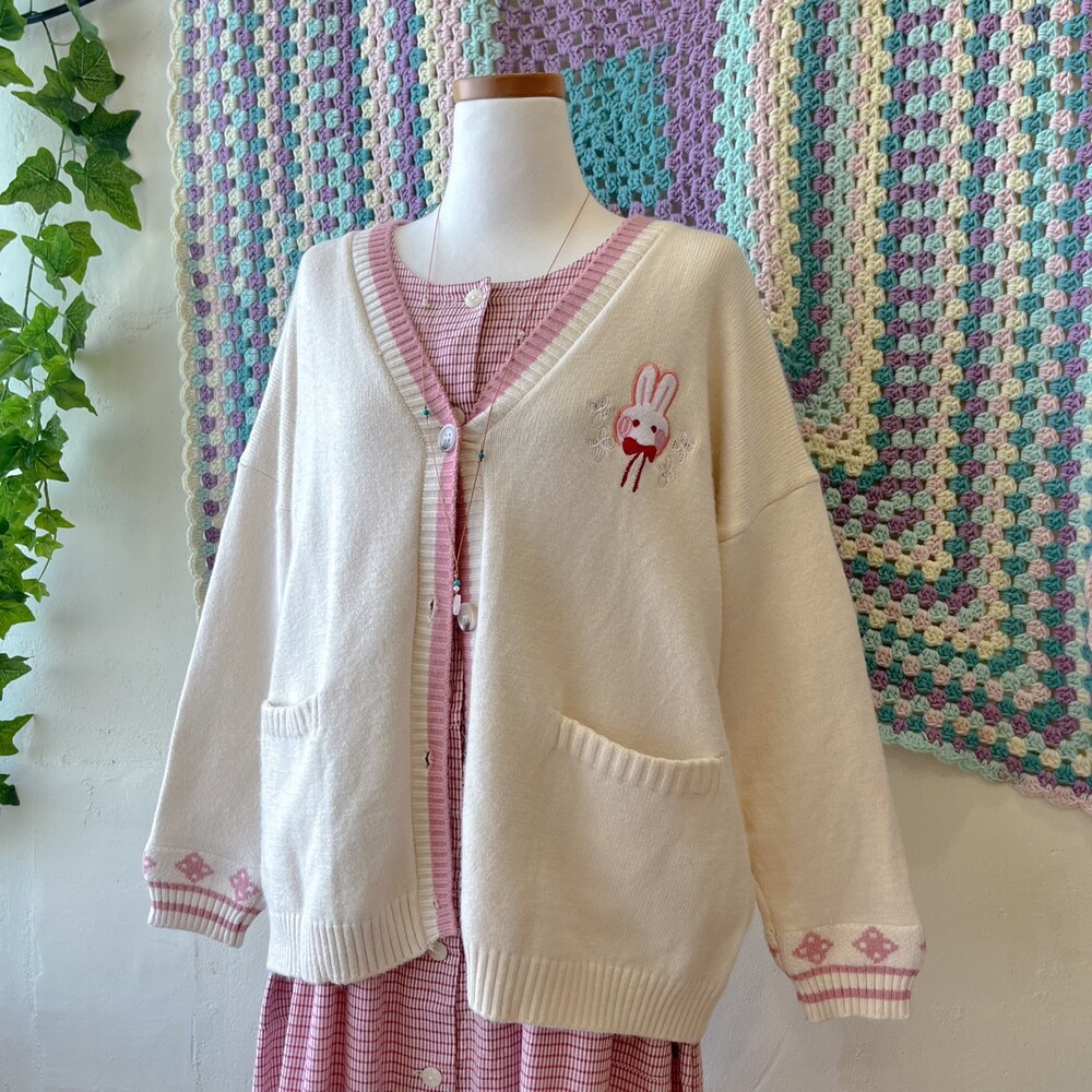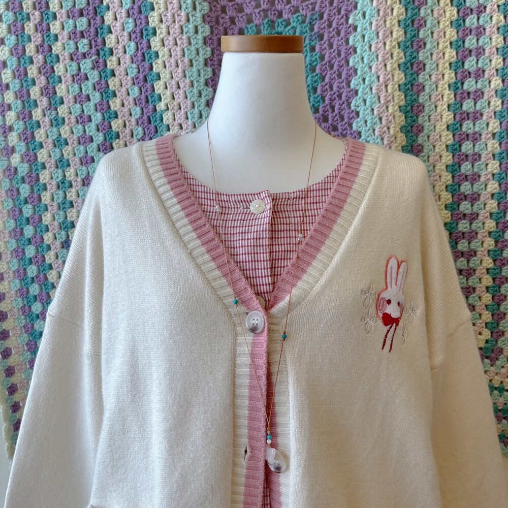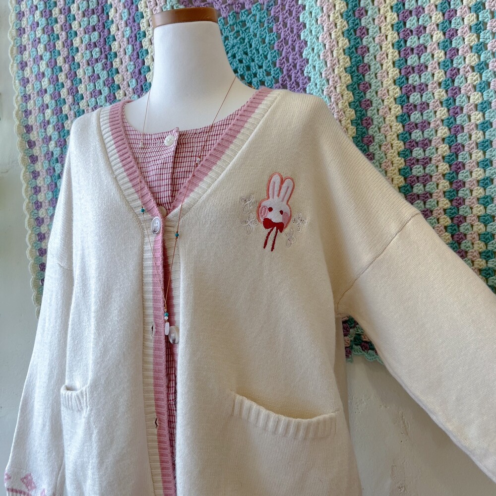 토끼 포인트의 아이보리 브이넥 가디건이에요