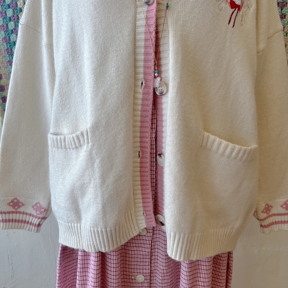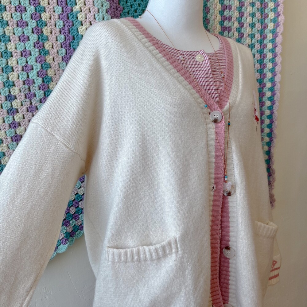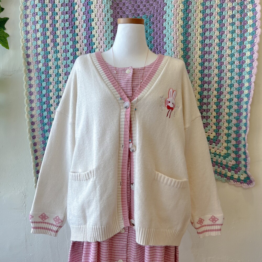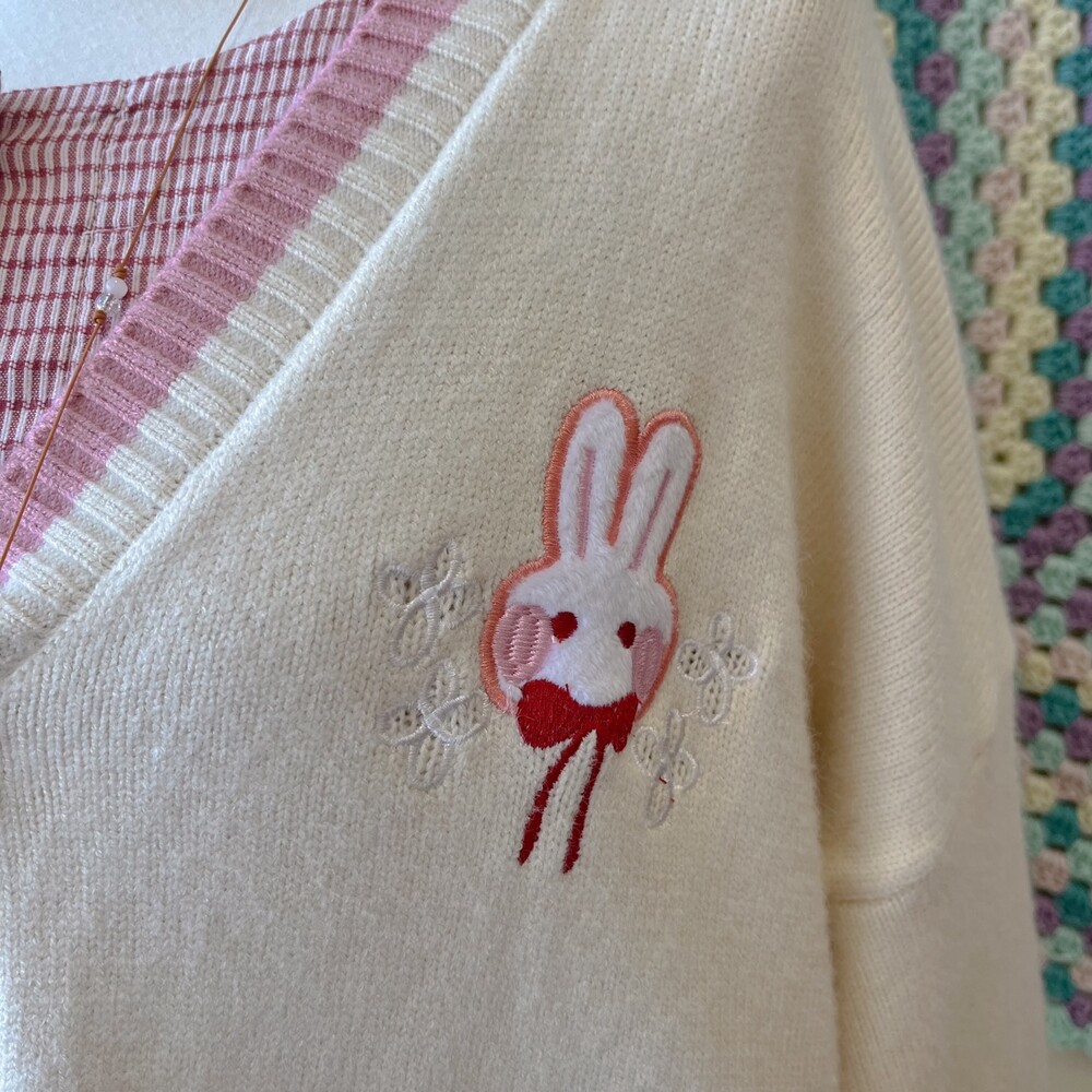 토끼 포인트의 아이보리 브이넥 가디건이에요