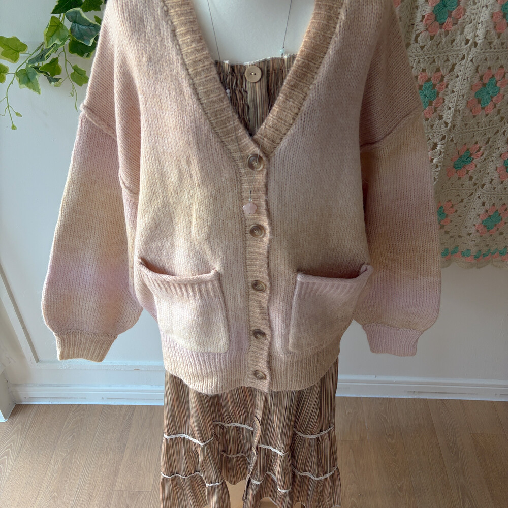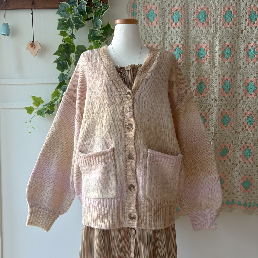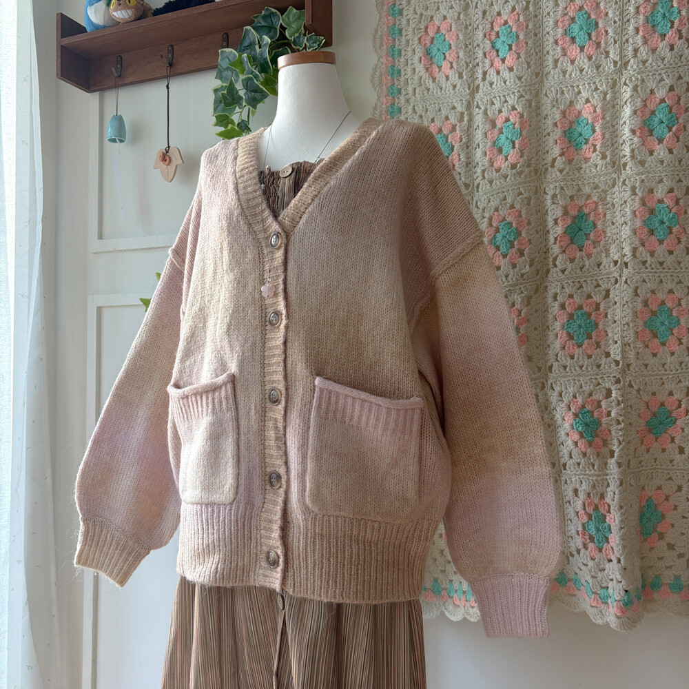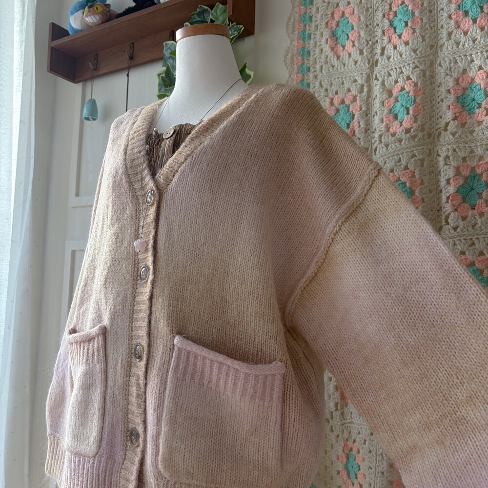핑크, 브라운 색감 조합의 그라데이션 가디건이에요