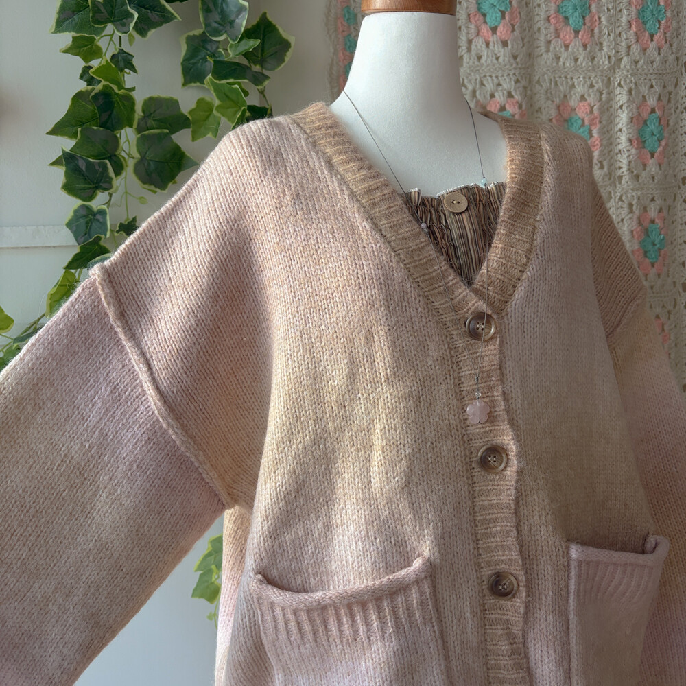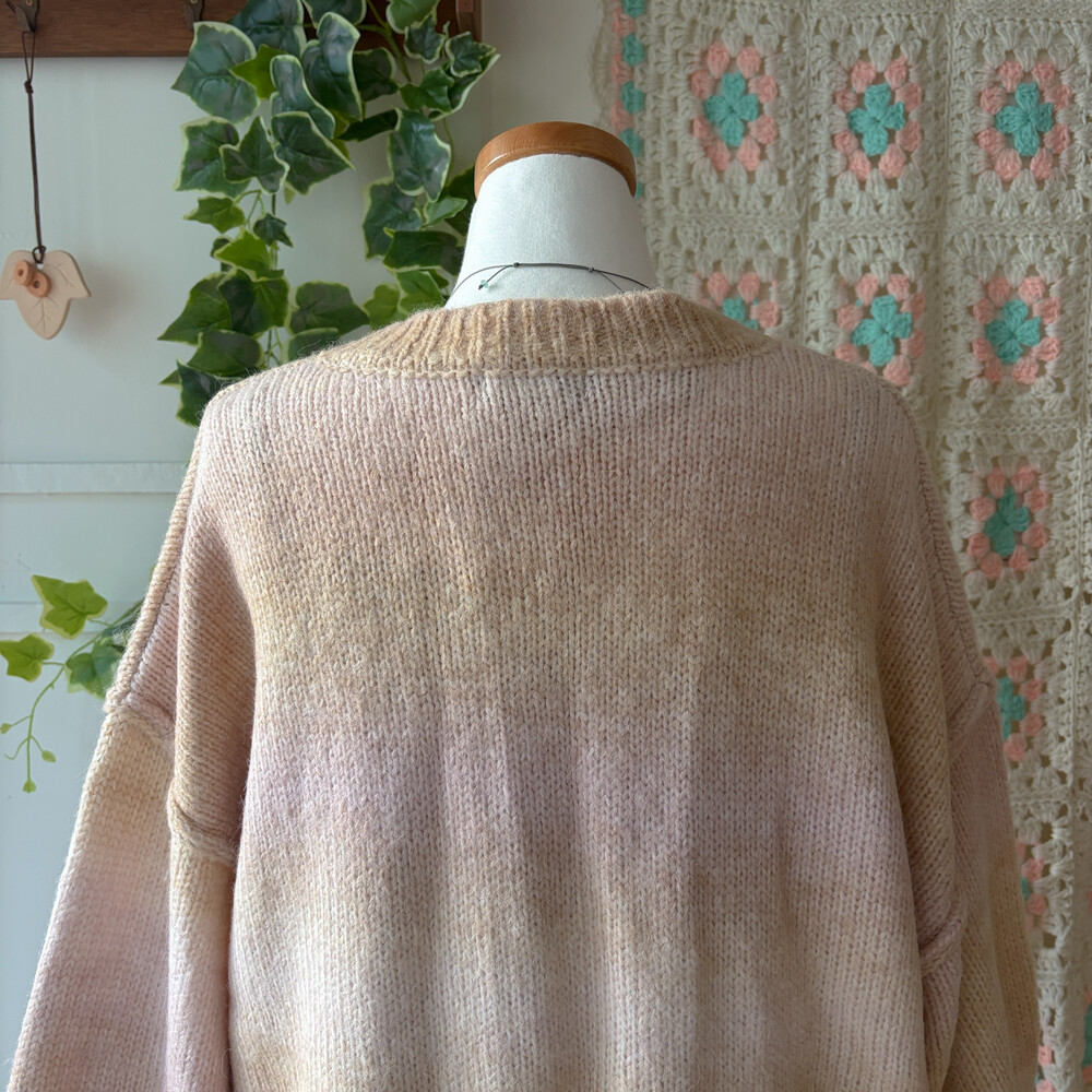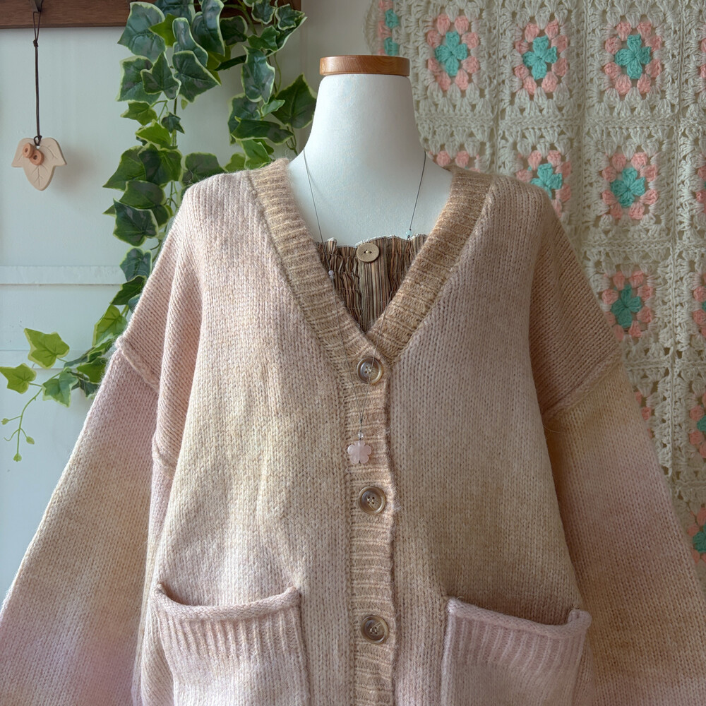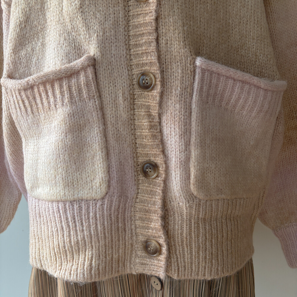 핑크, 브라운 색감 조합의 그라데이션 가디건이에요