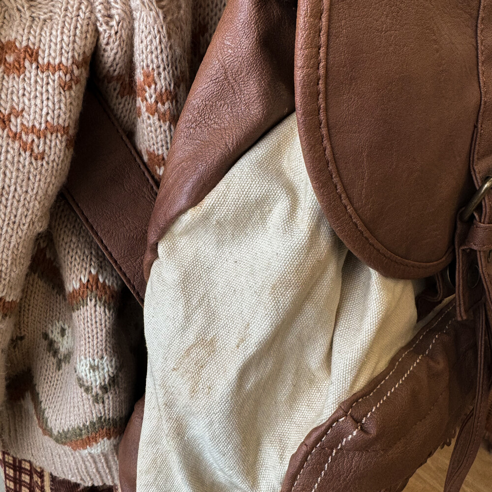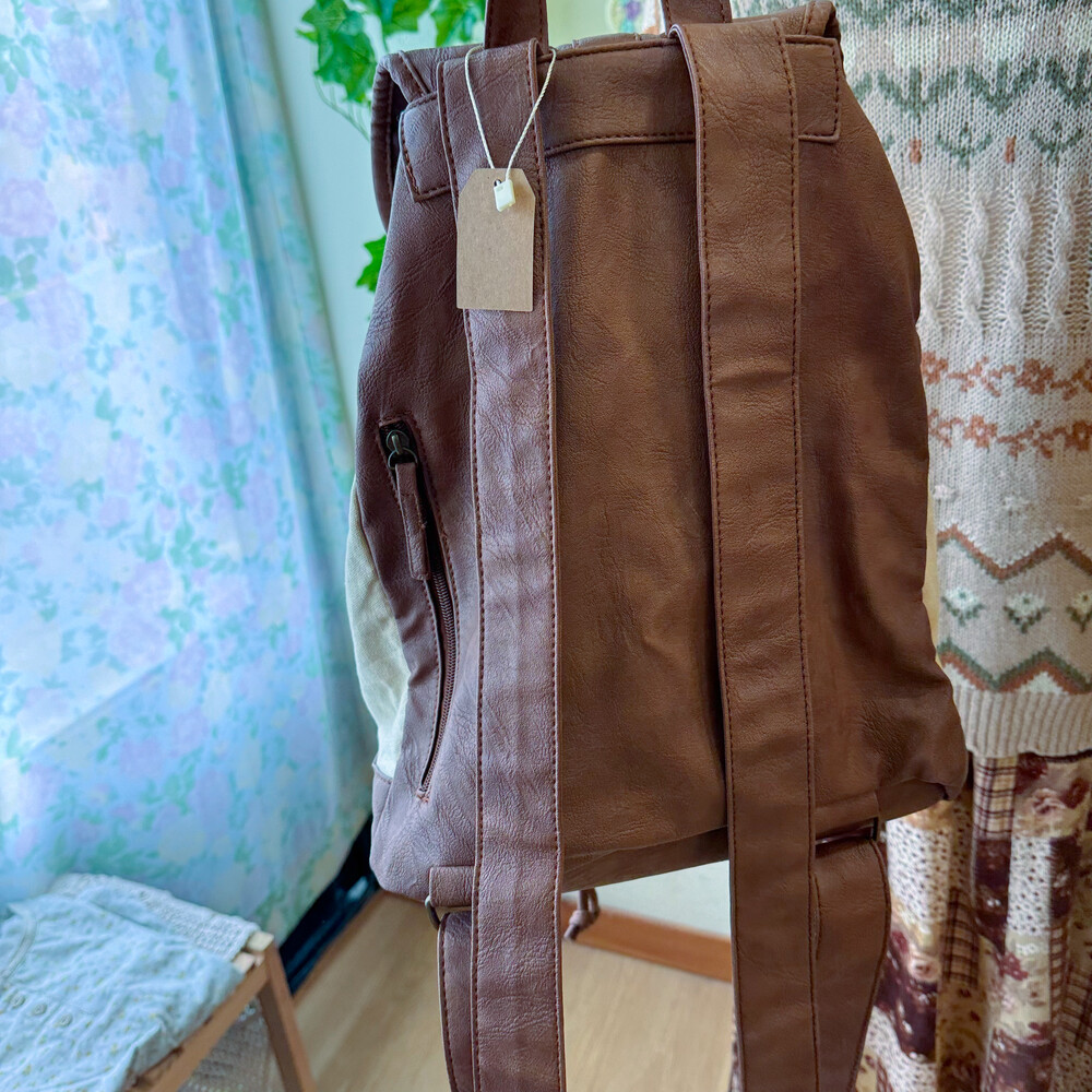 가방 쪽은 캔버스 소재고 나머지 부분은 가벼운 인조가죽이에요!