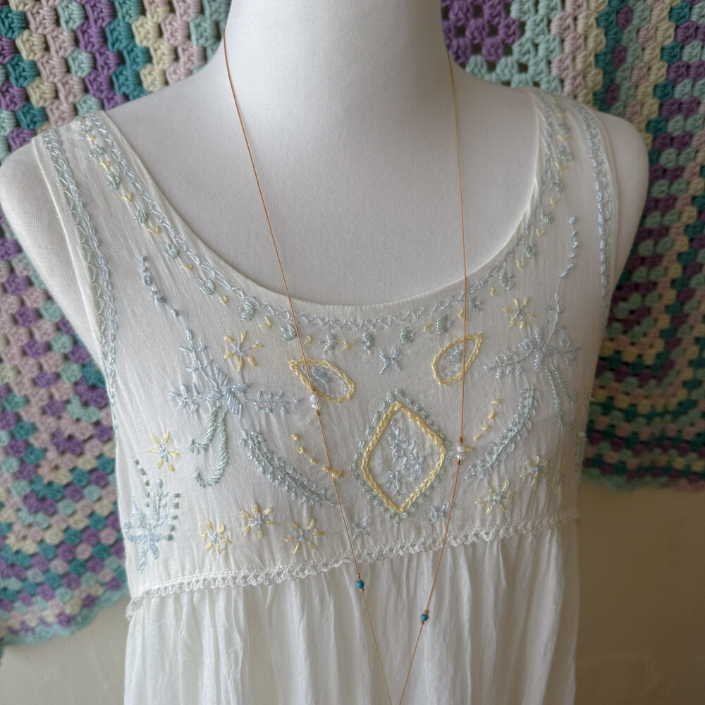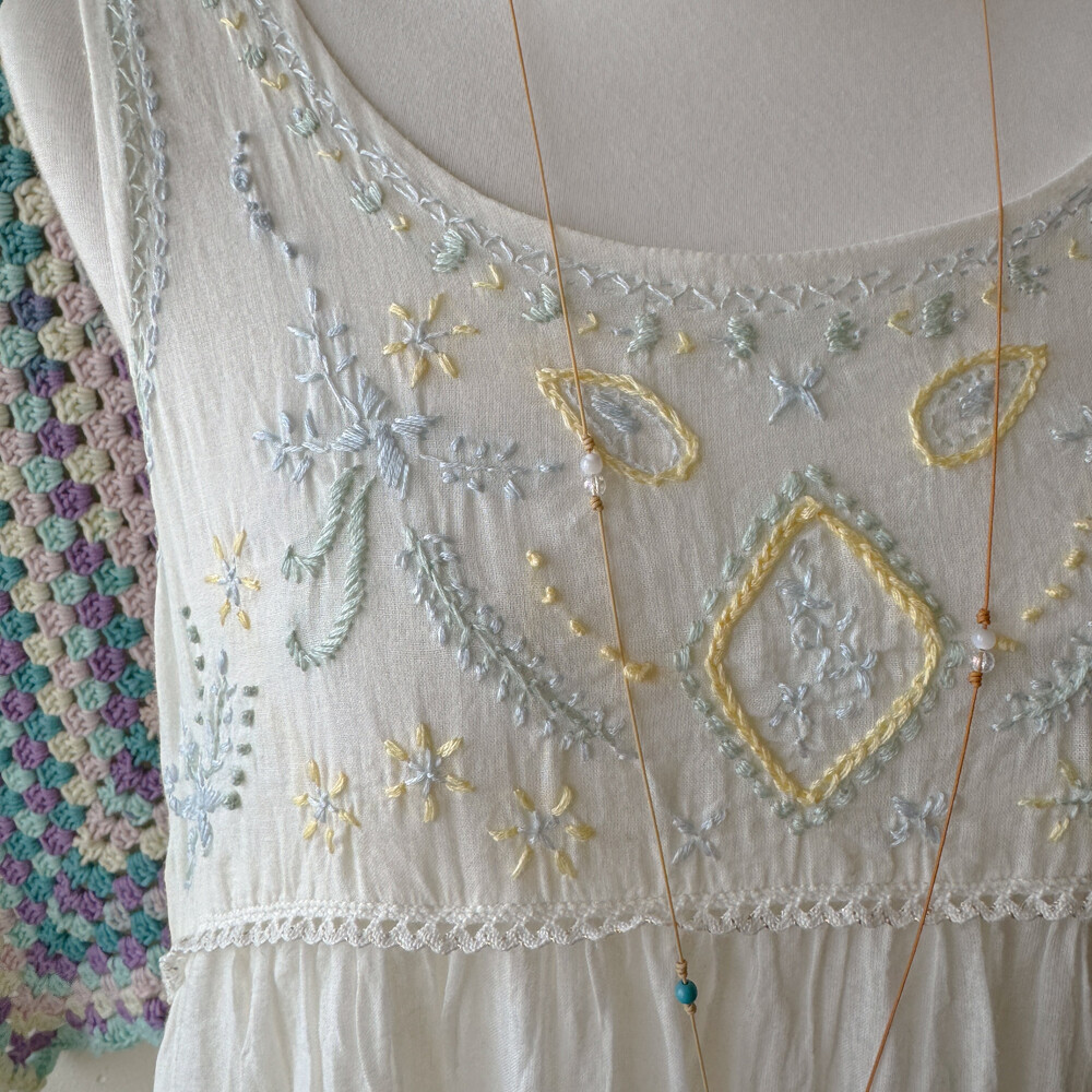 가슴에 파스텔톤의 자수 포인트들이 들어가 있어요