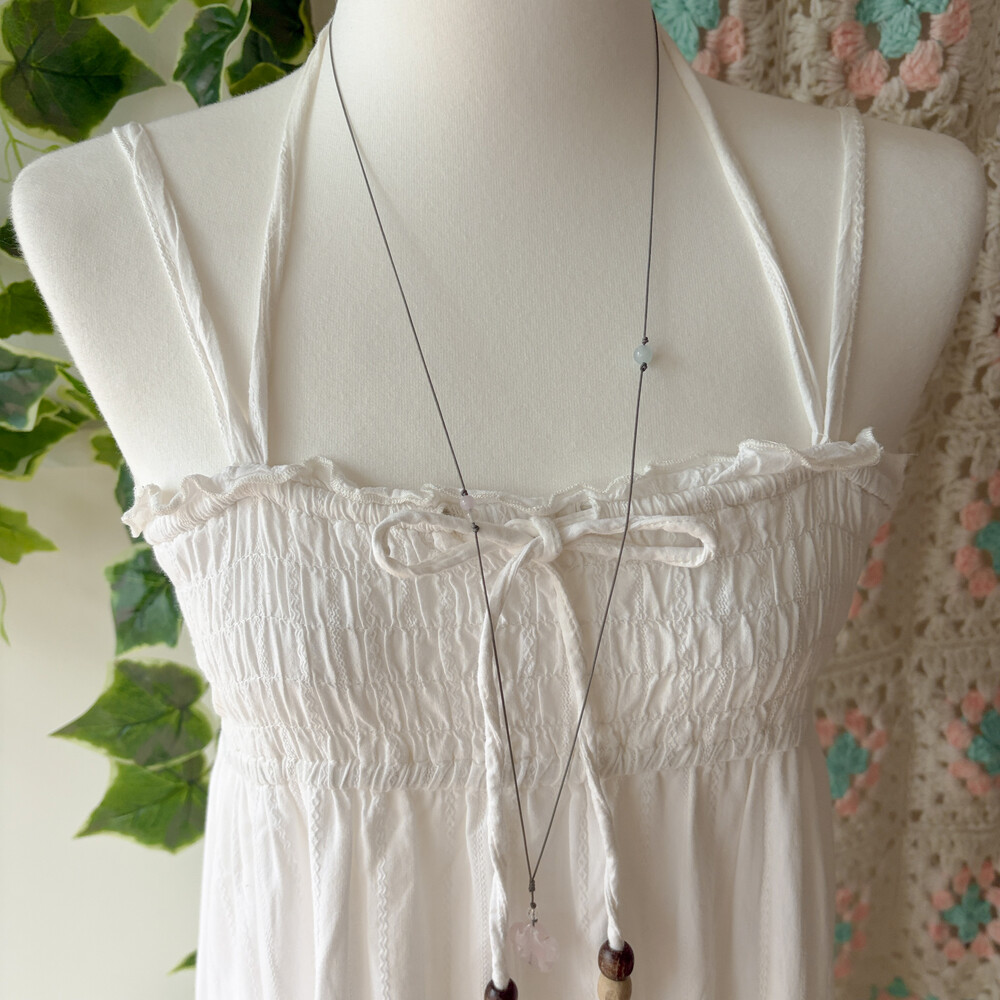 홀터넥을 함께 할 수 있어요! 다만, 홀터넥 끈 부분 뒷쪽으로