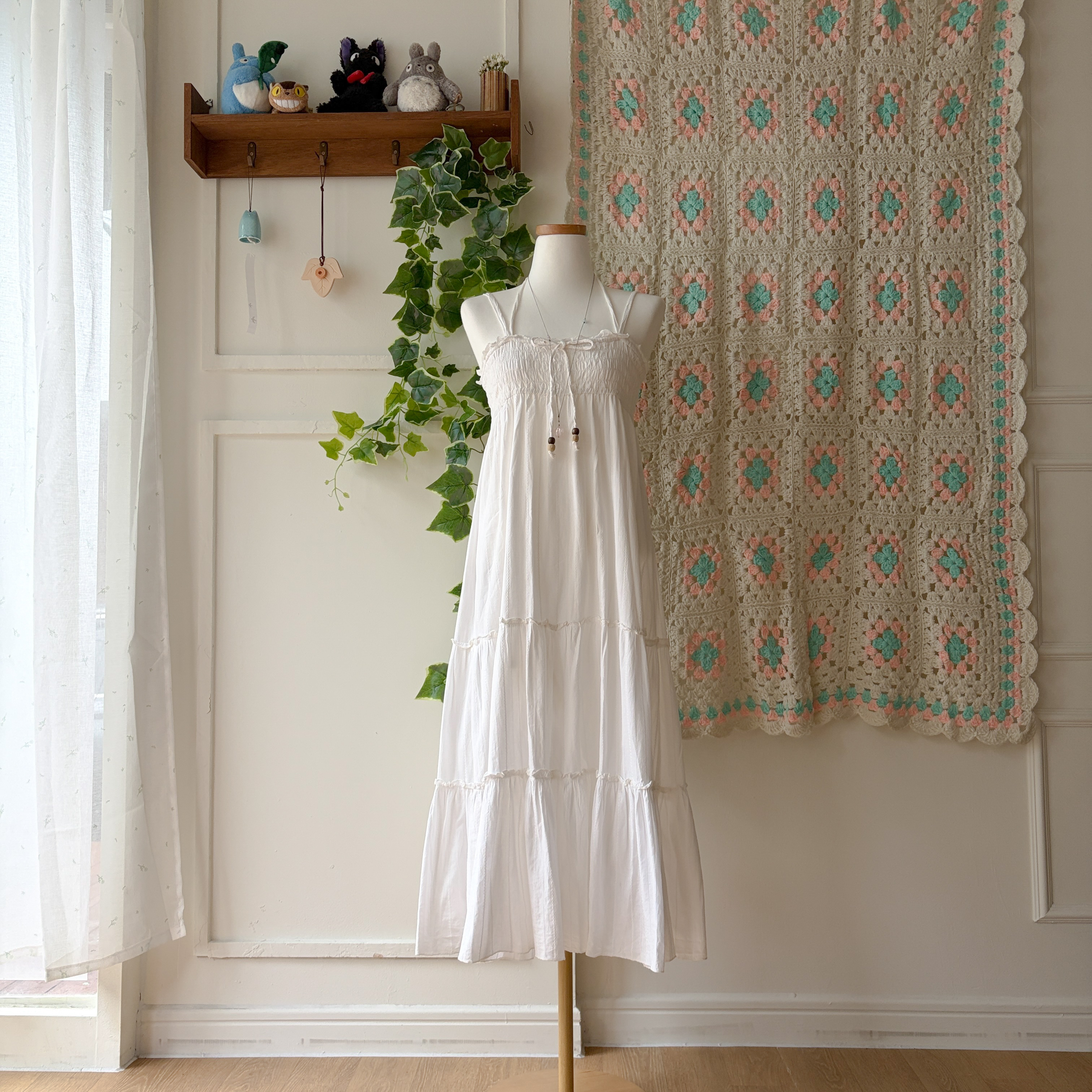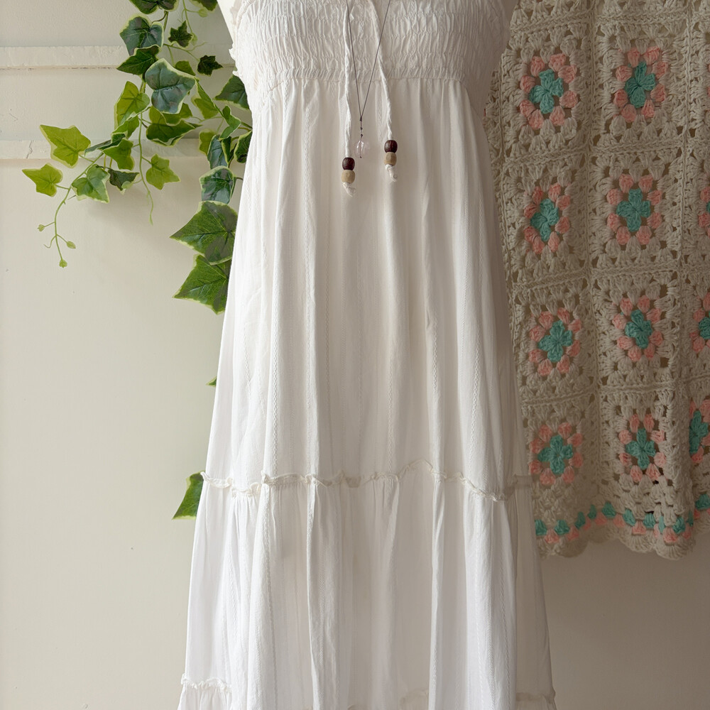 화이트 색감의 캉캉 끈원피스예요
