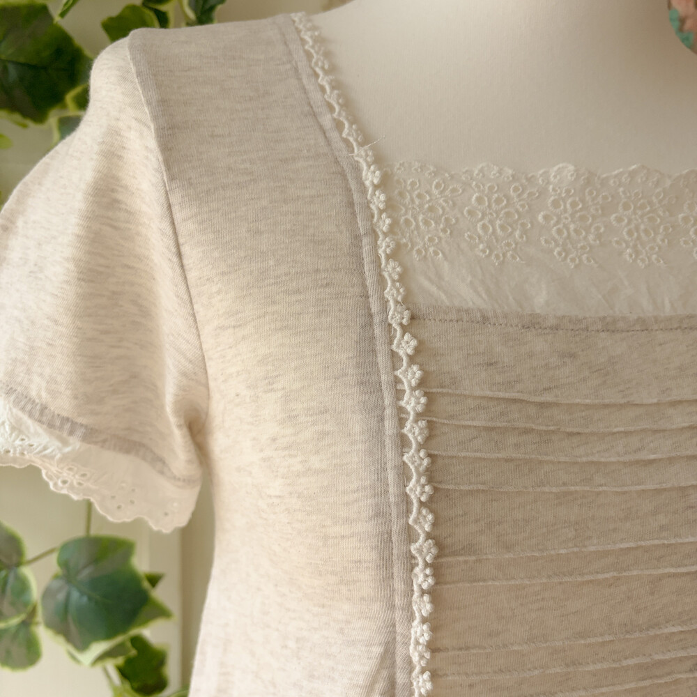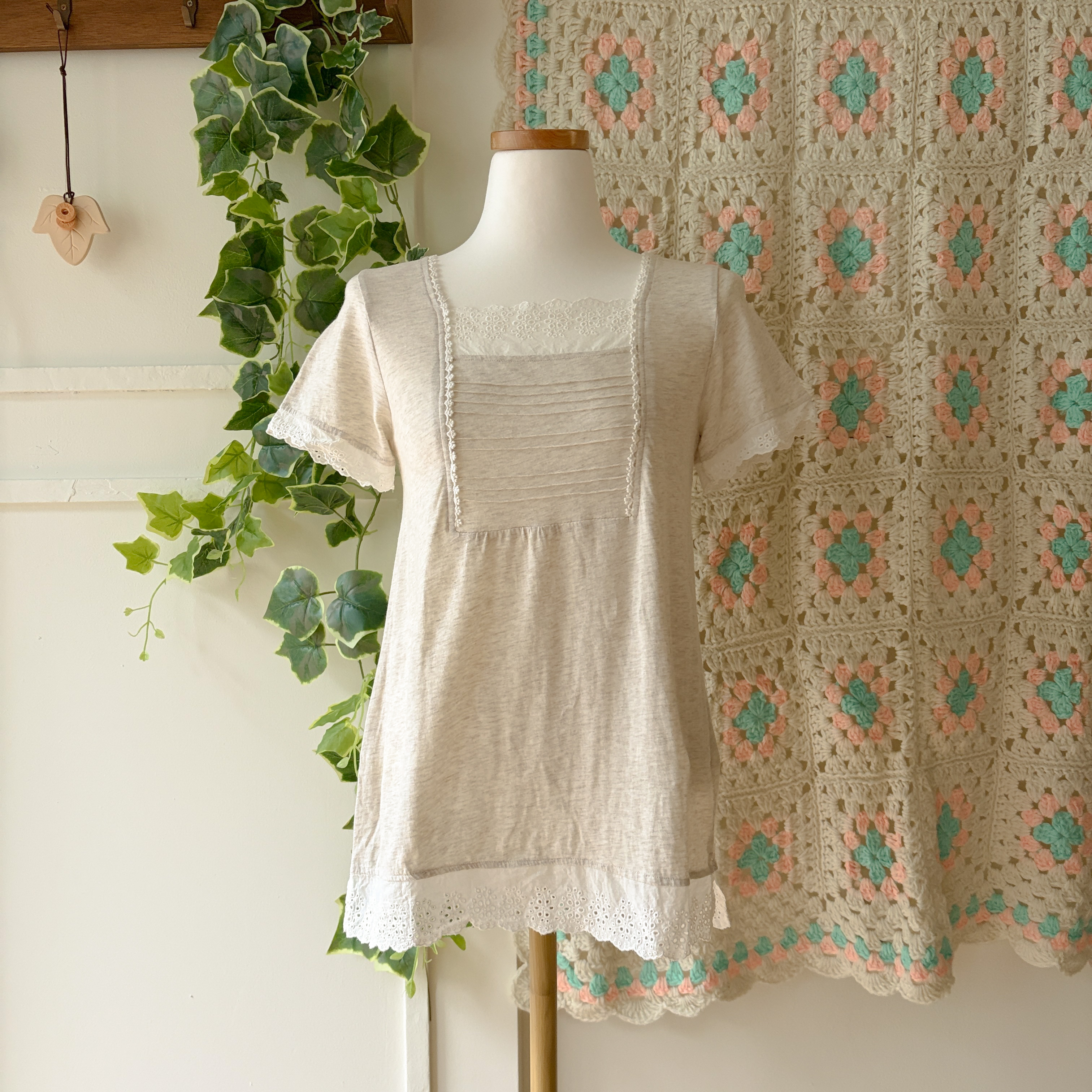 sm2의 오트밀 스퀘어넥 반소매 티셔츠예요