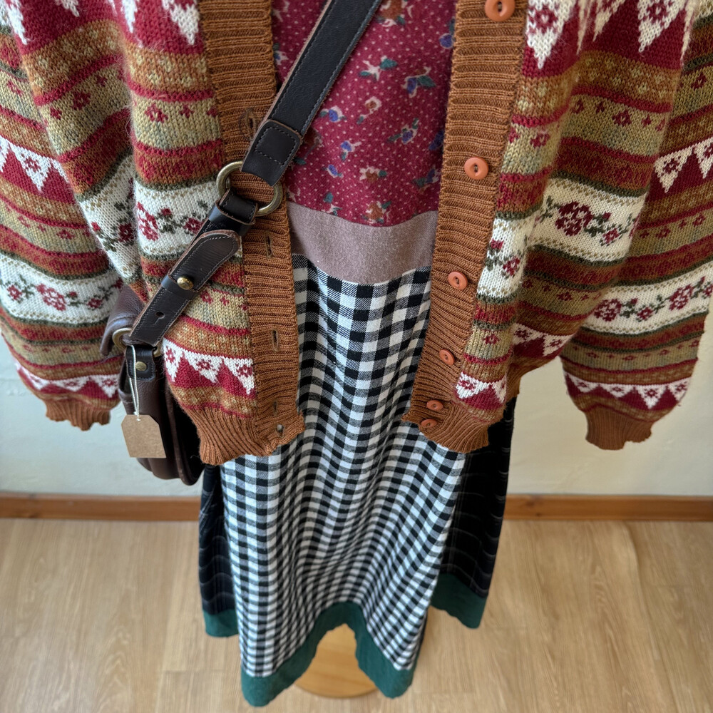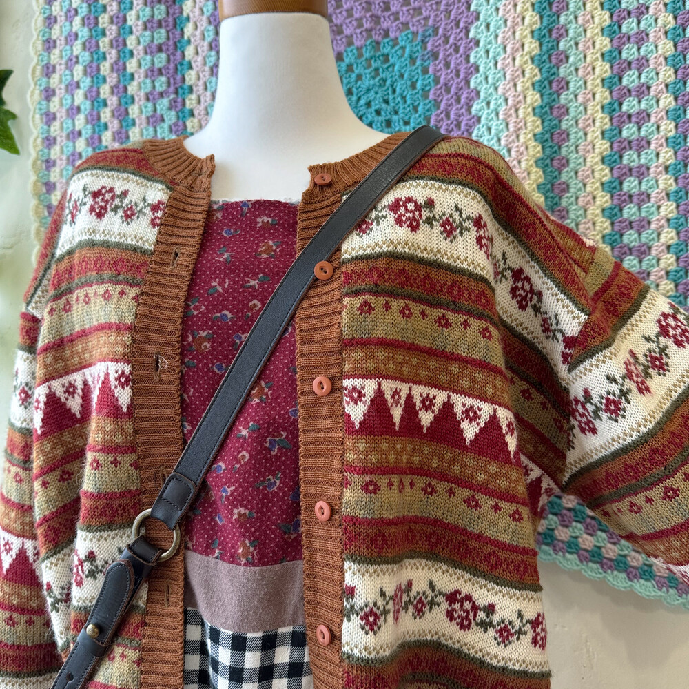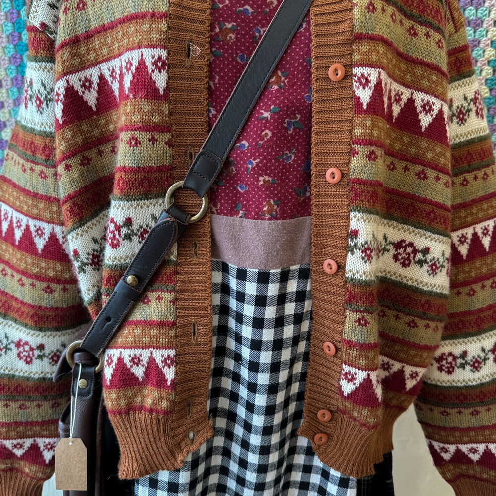 브라운 색감 베이스의 패턴 가디건이에요