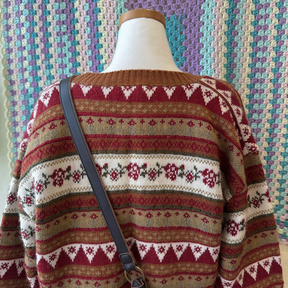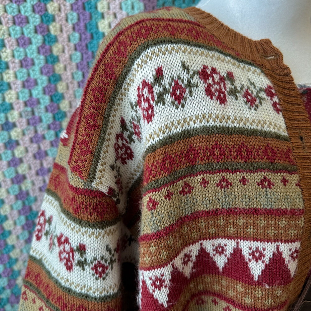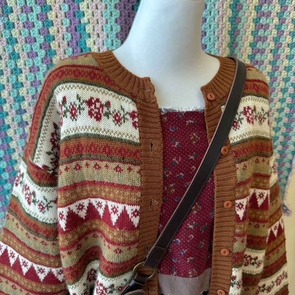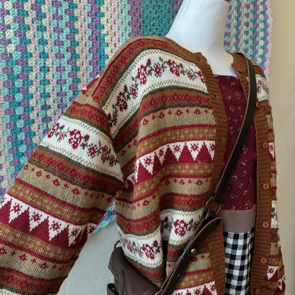 브라운 색감 베이스의 패턴 가디건이에요