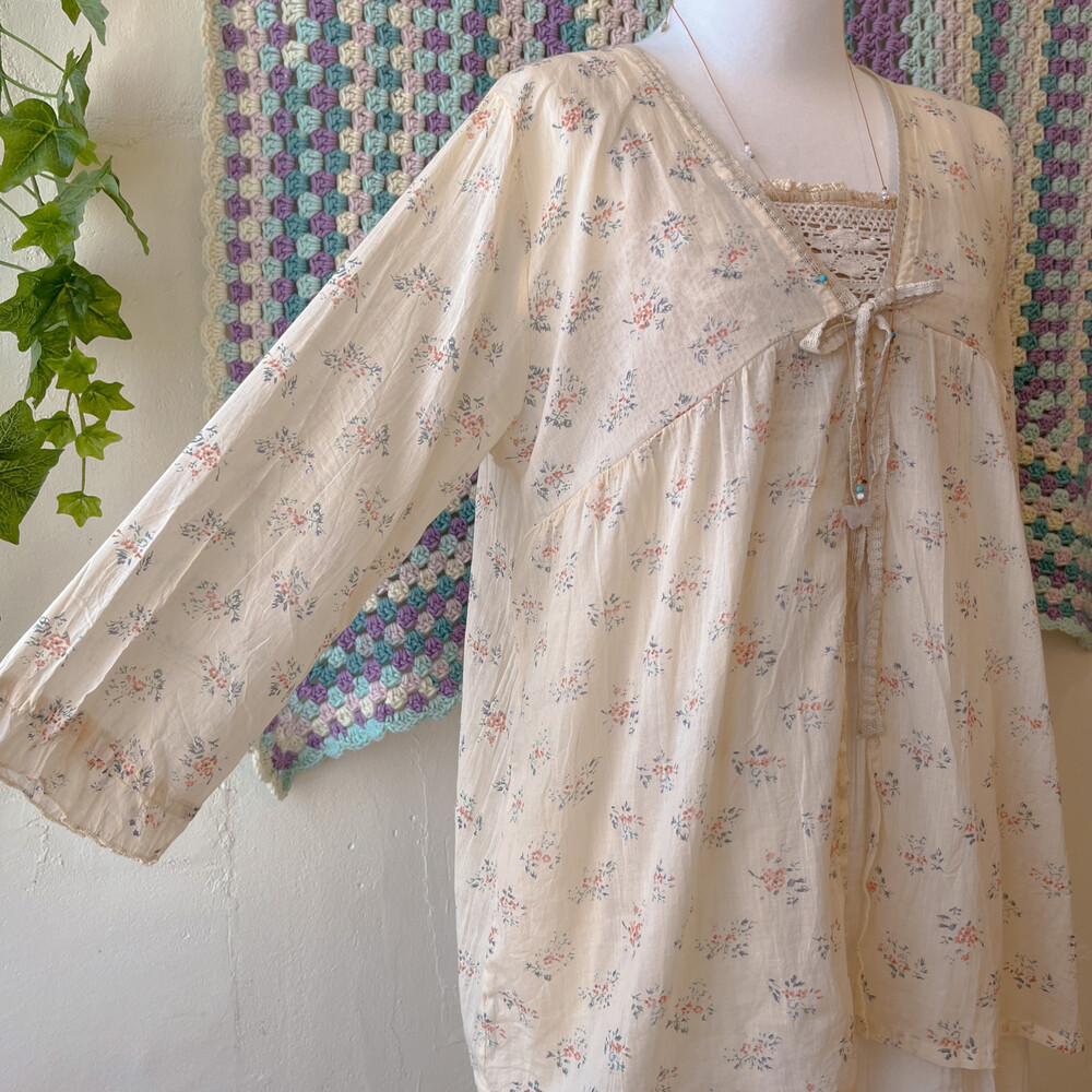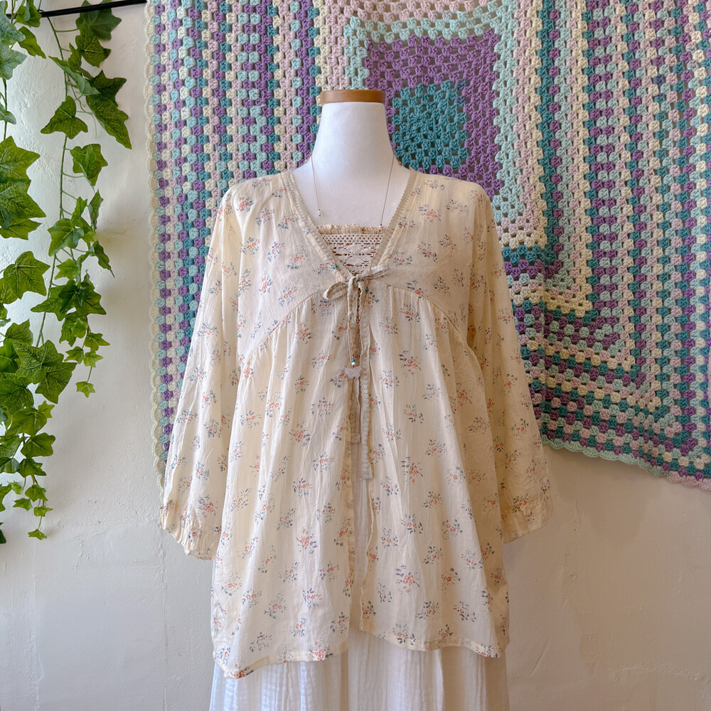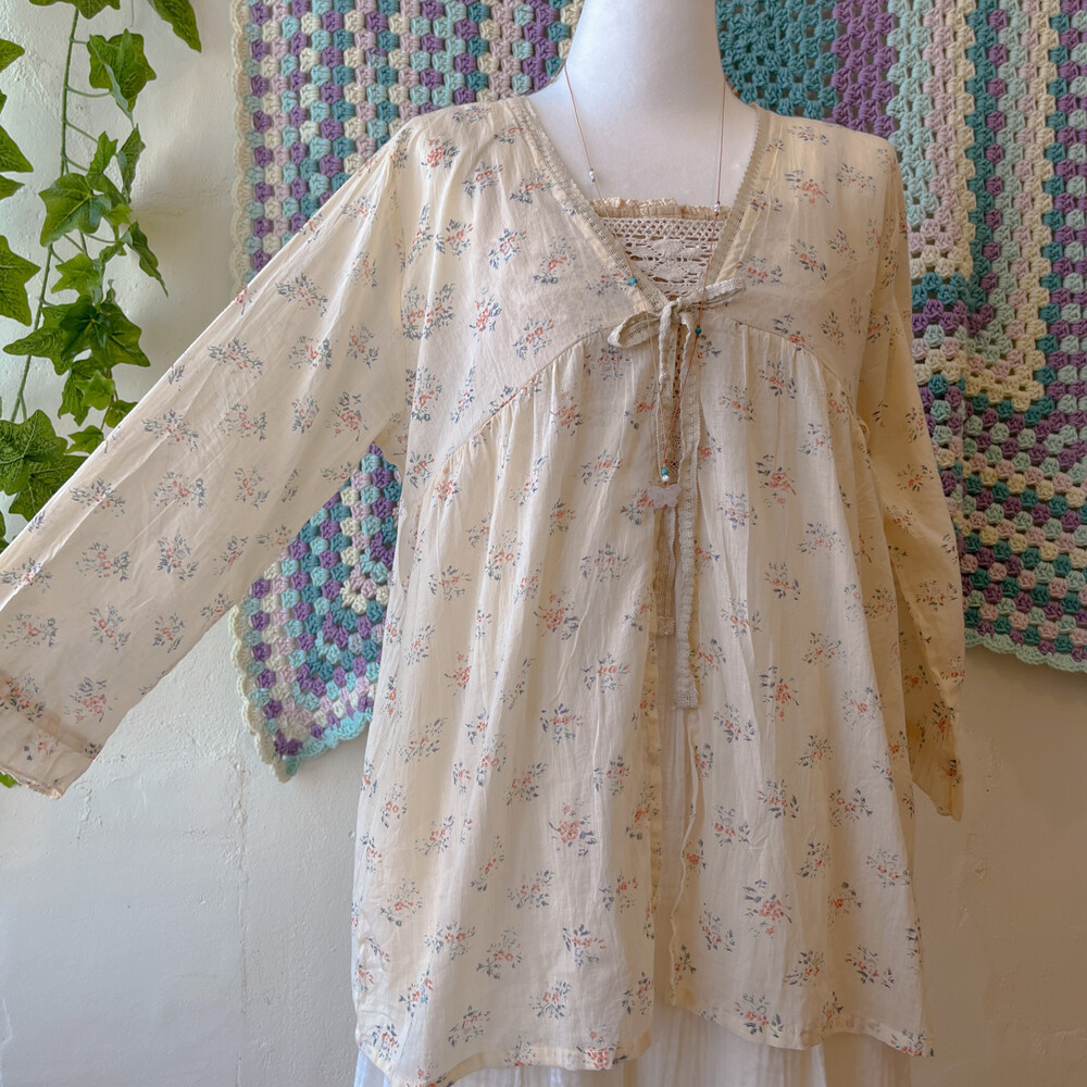 연한 살구색감이 도는 긴소매 코튼 가디건이에요