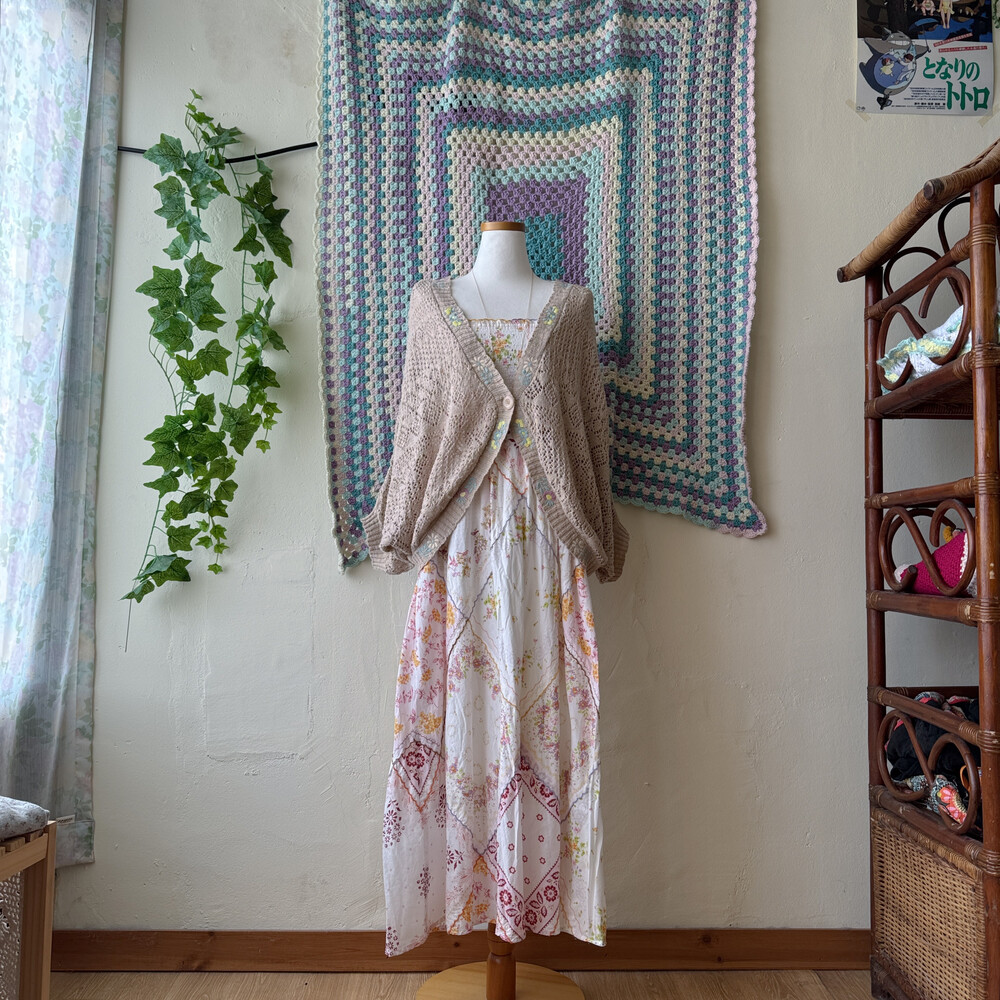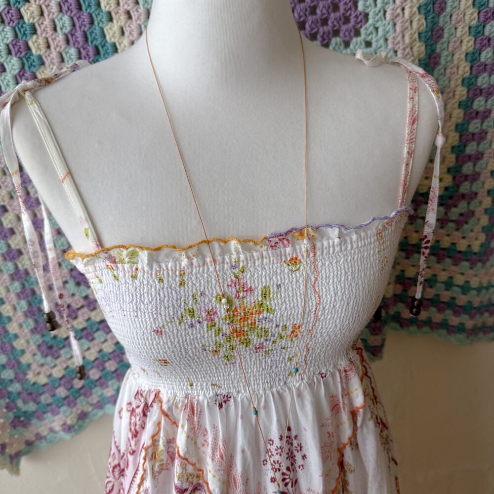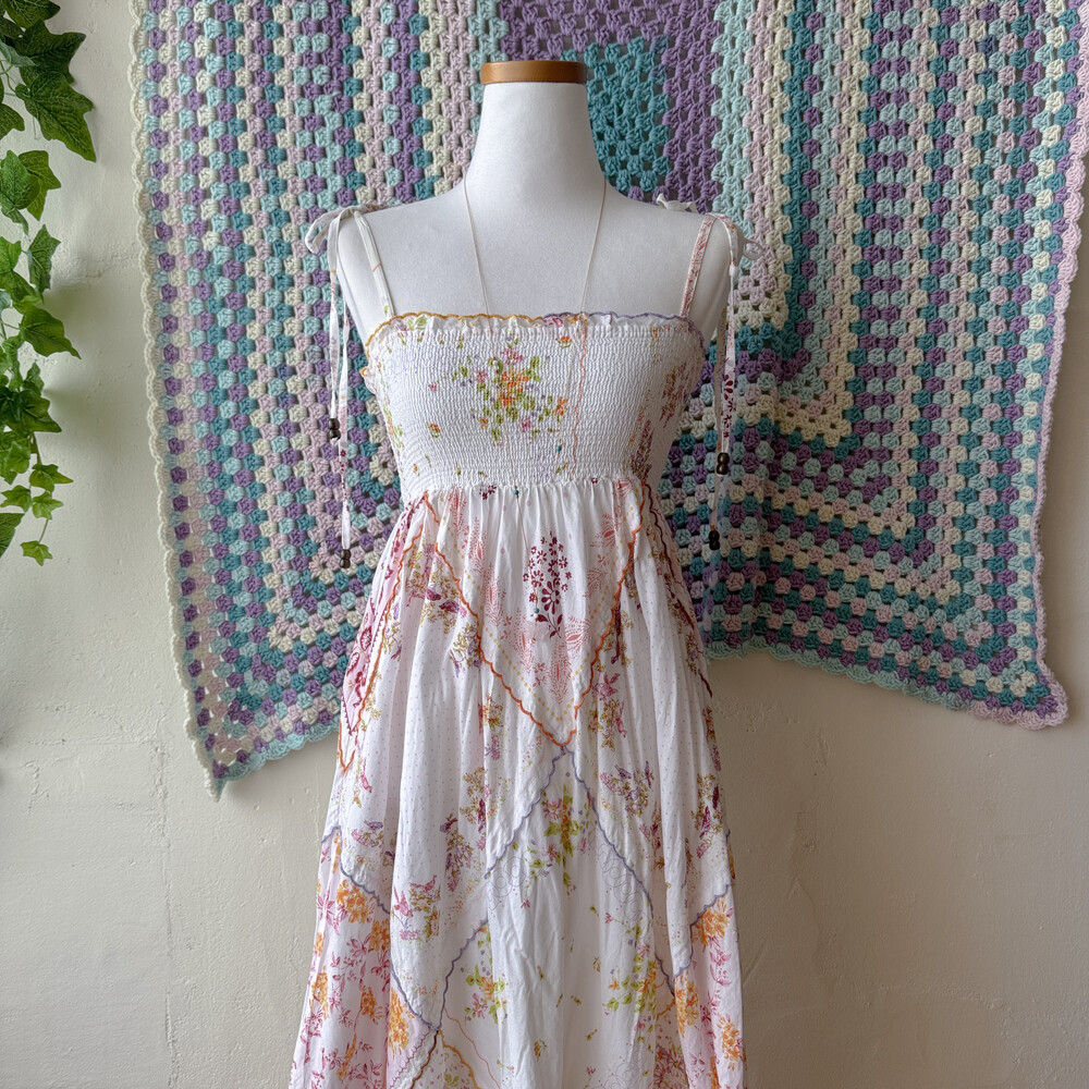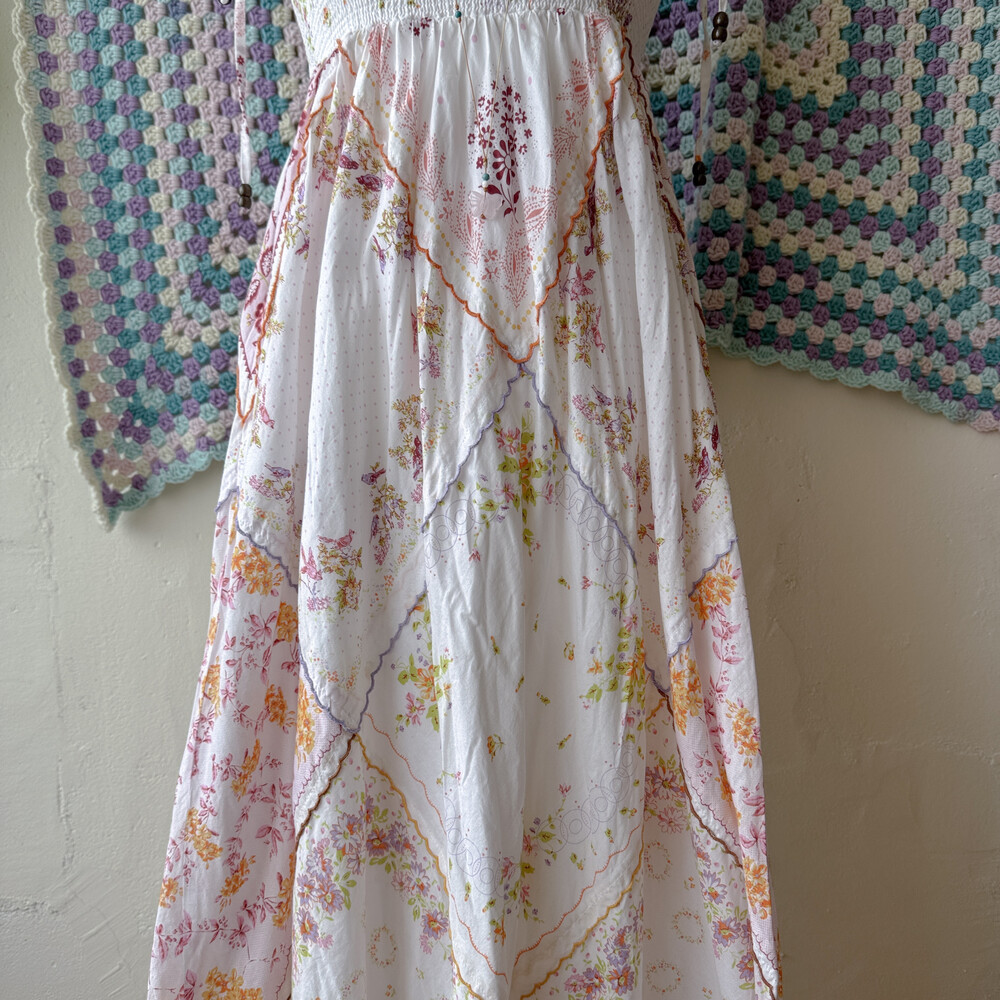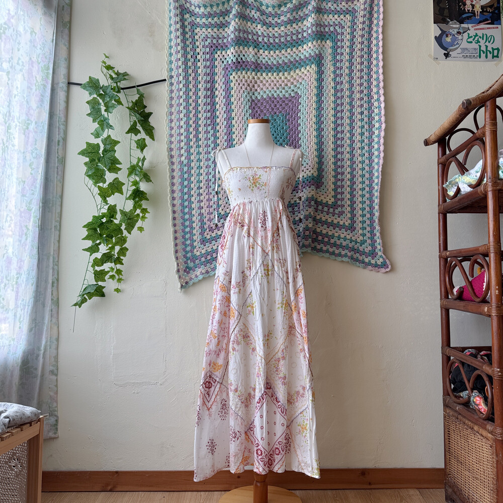 꽃무늬 패치워크 코튼 끈원피스예요