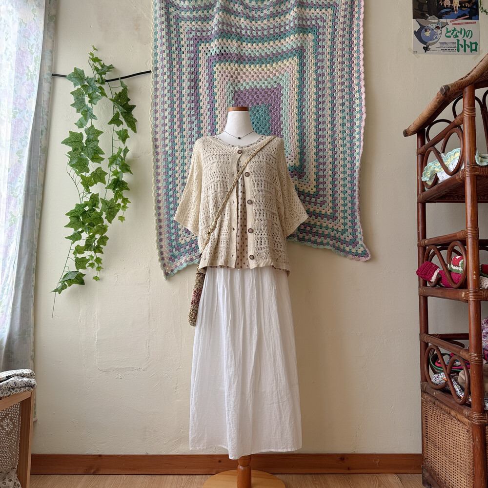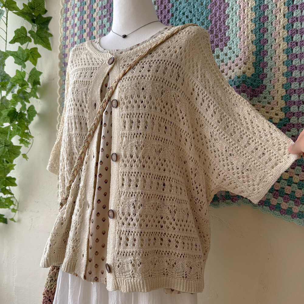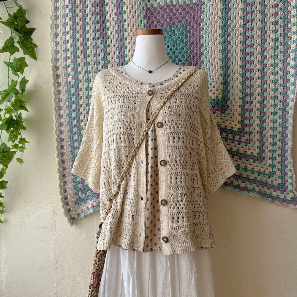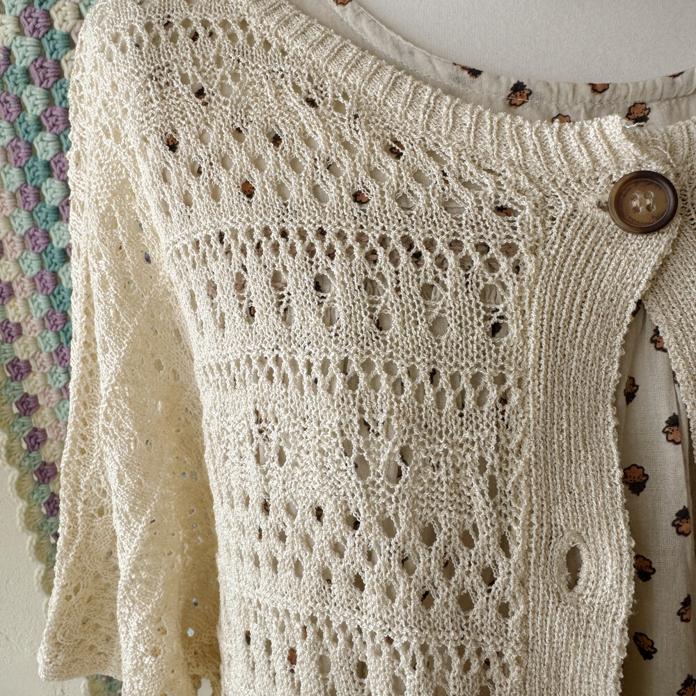 베이지 색감의 펀칭 크로셰 가디건이에요
