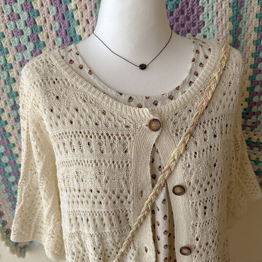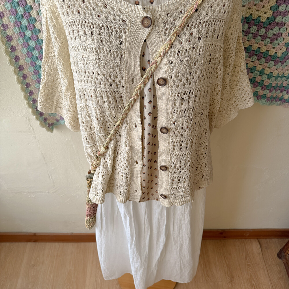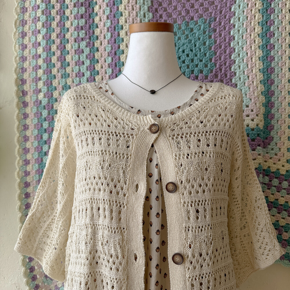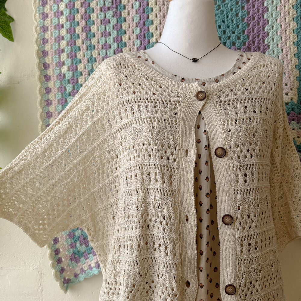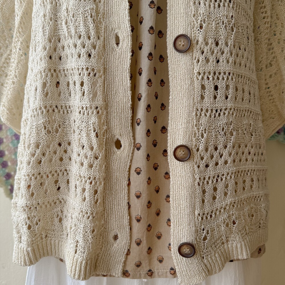 베이지 색감의 펀칭 크로셰 가디건이에요