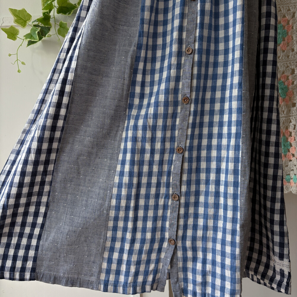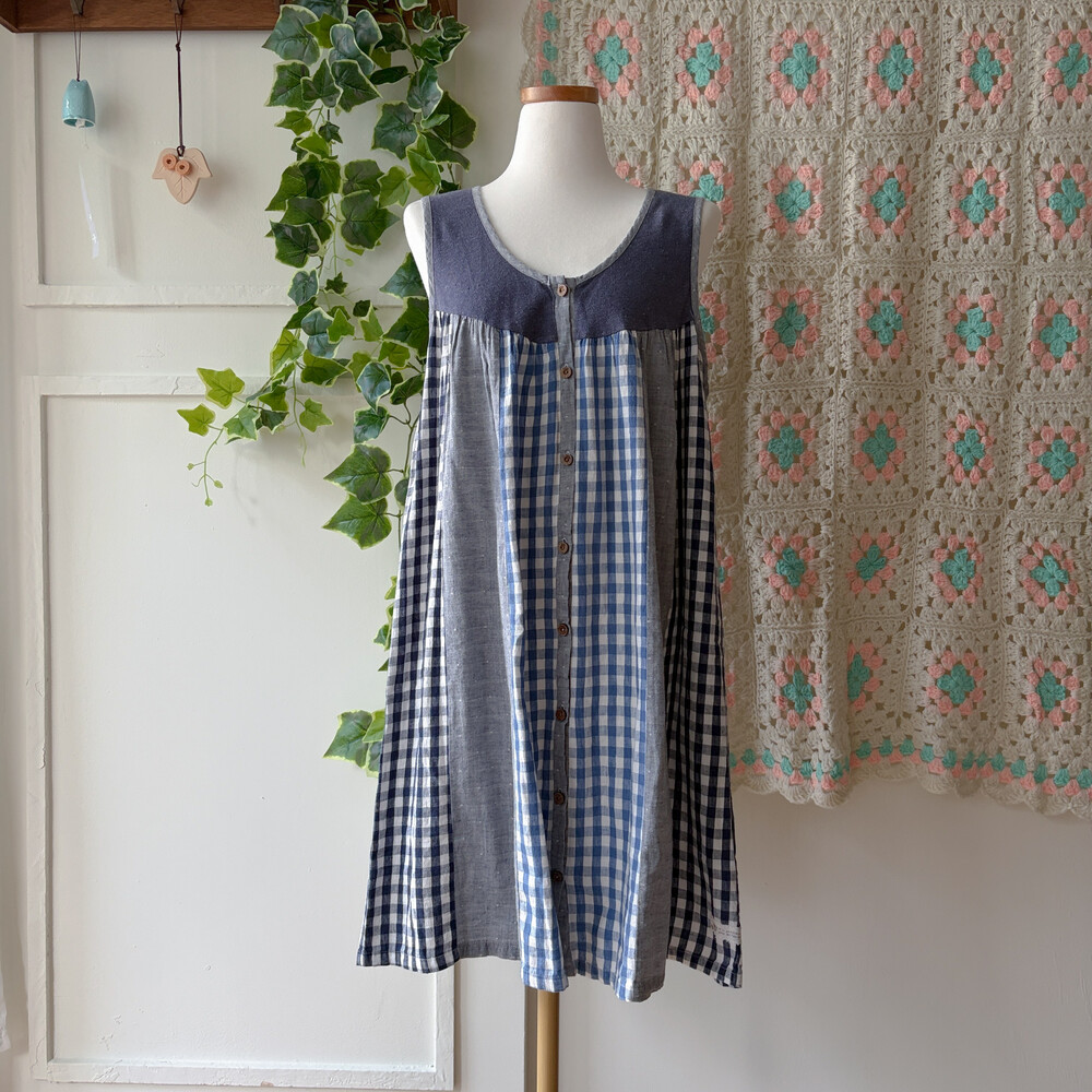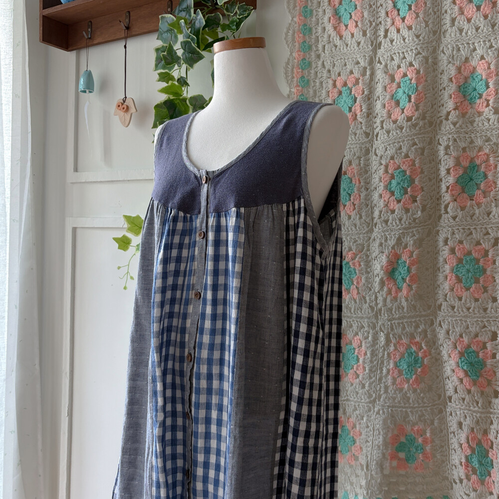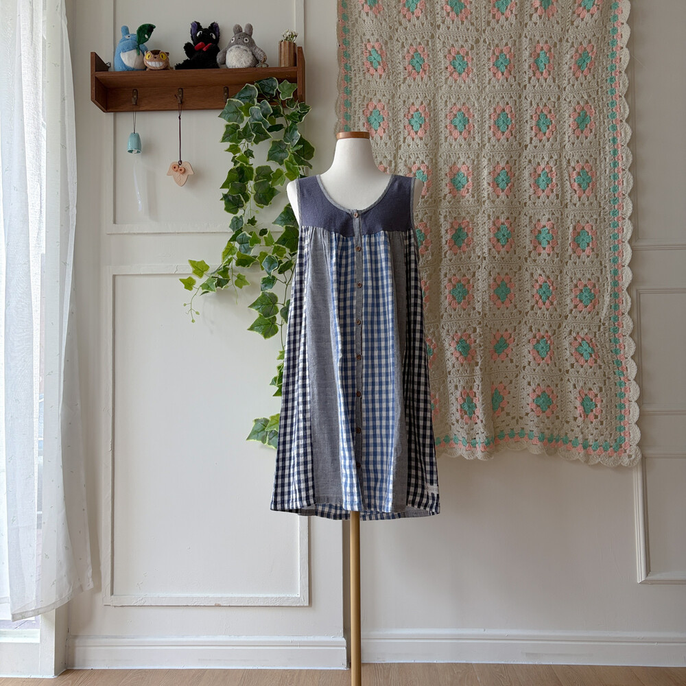세로 패치워크 디자인의 민소매 원피스예요
