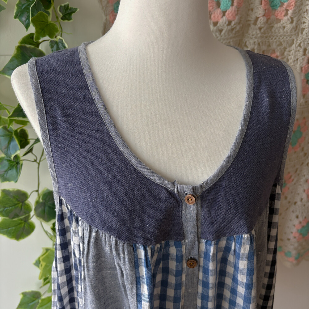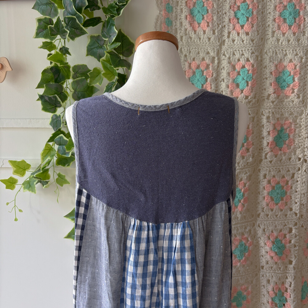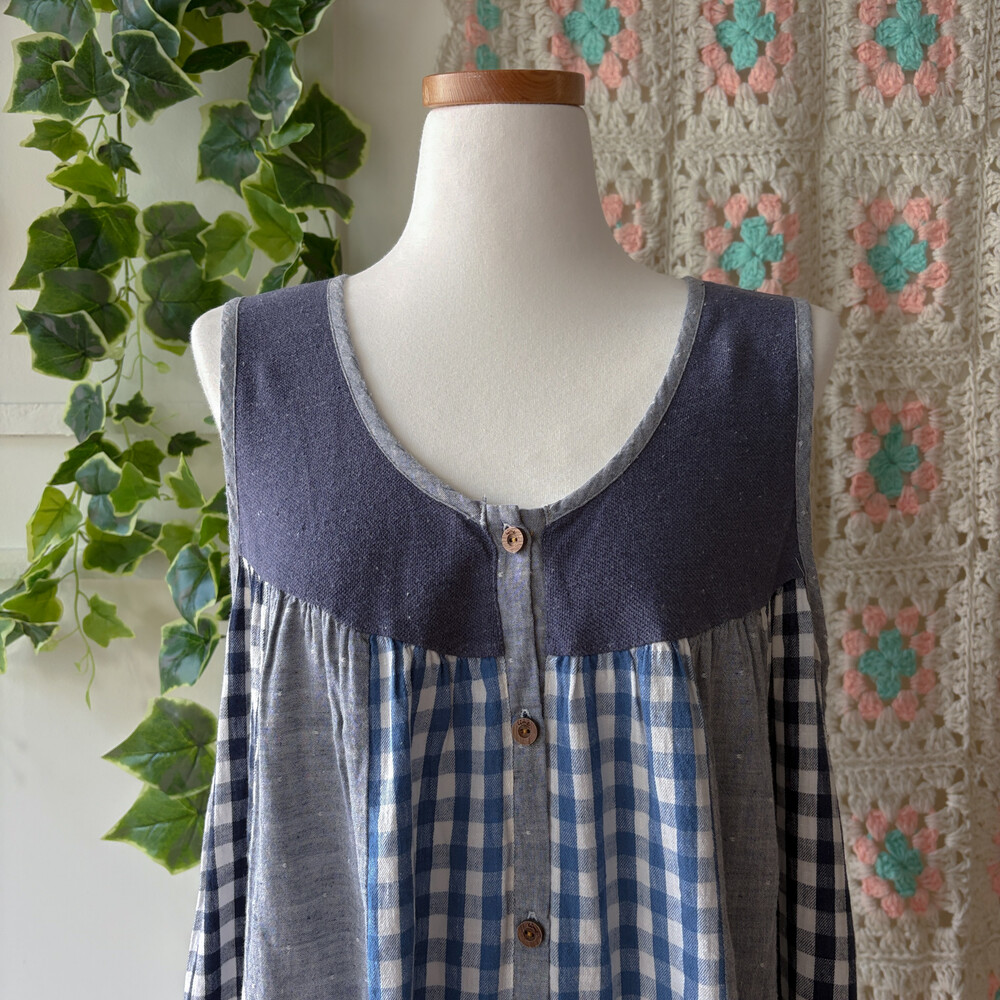 check vertical patch sleeveless ops