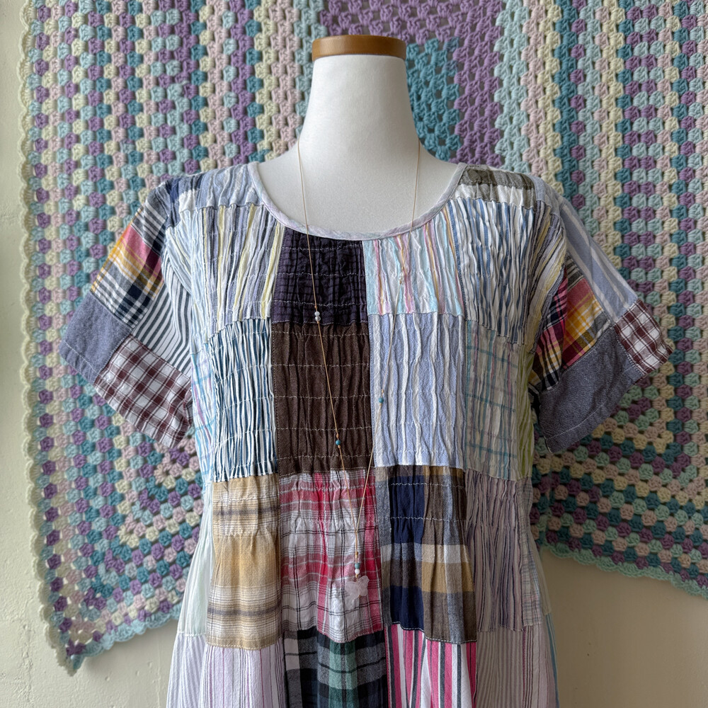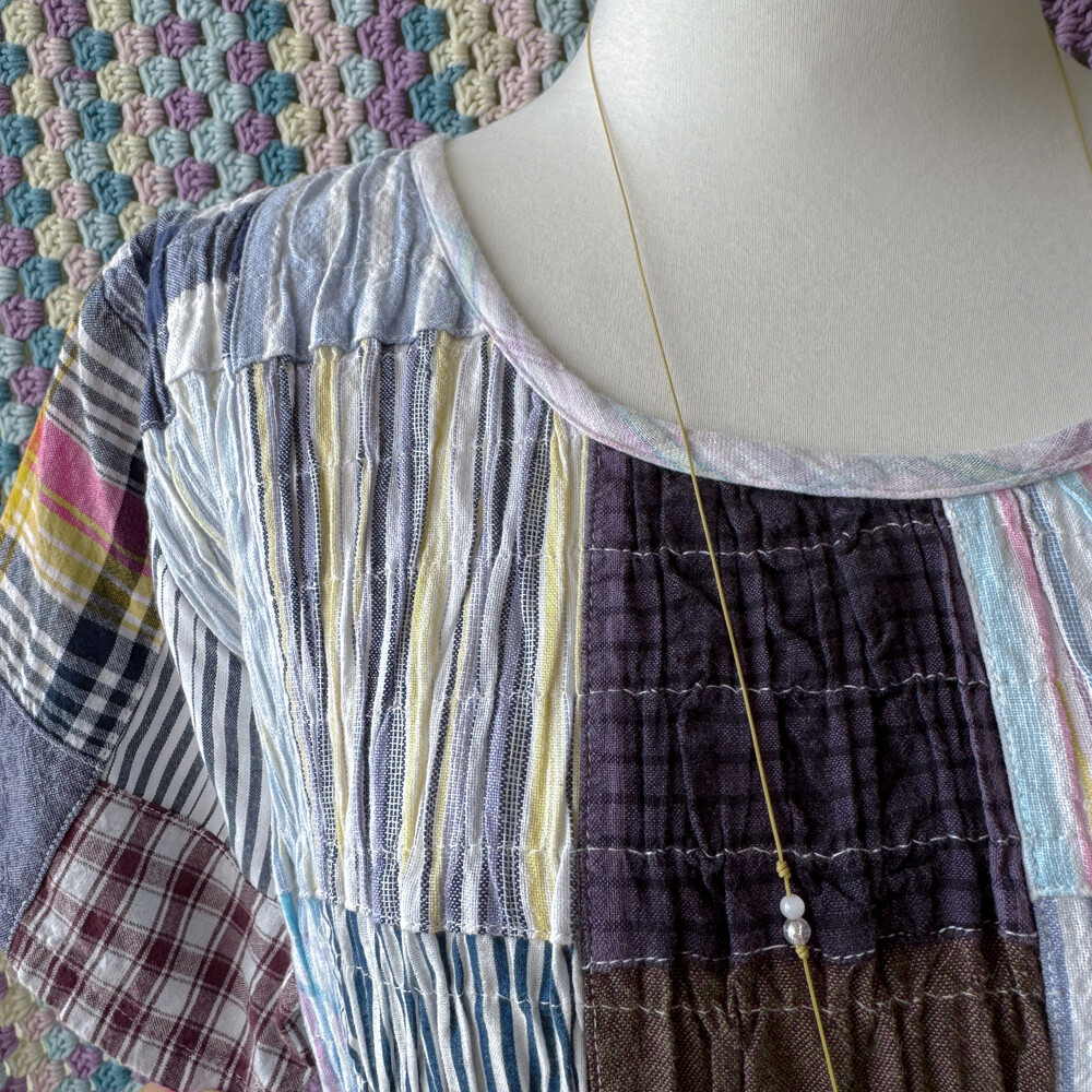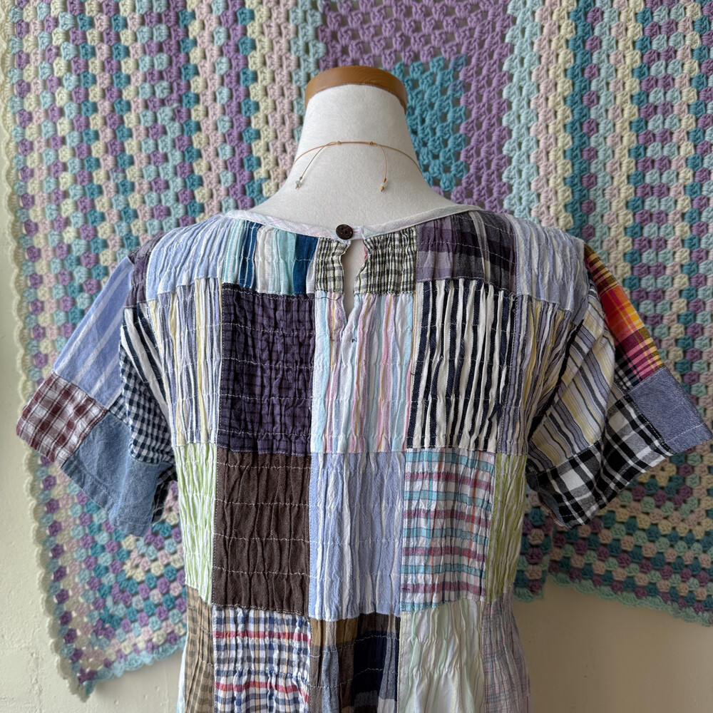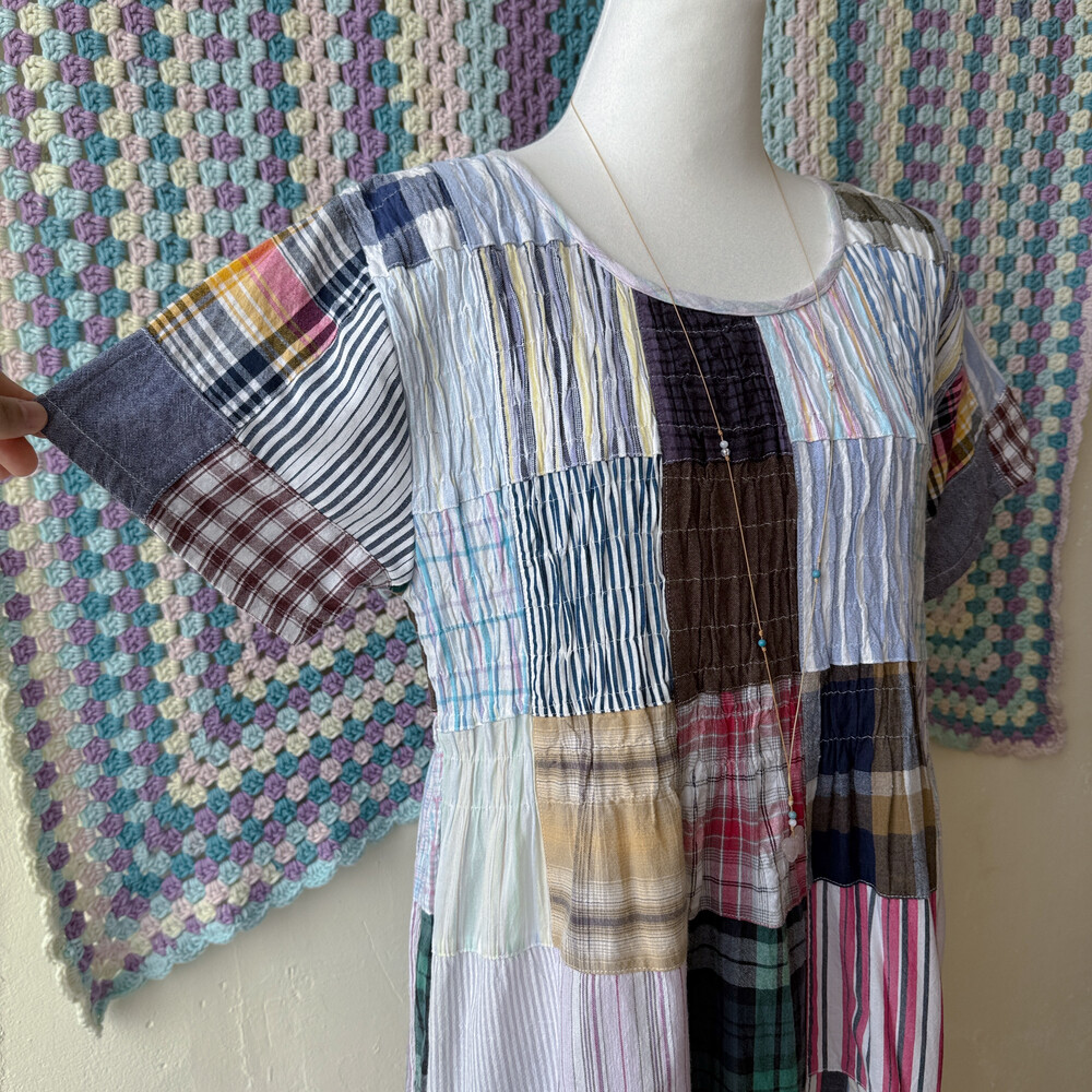다양한 색감과 디자인의 체크 패치들로 조합되어 있는