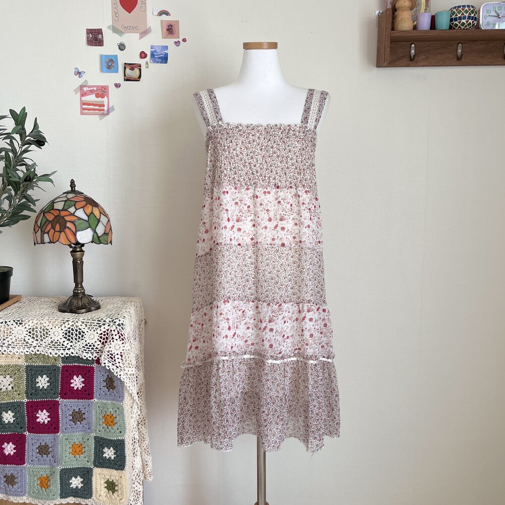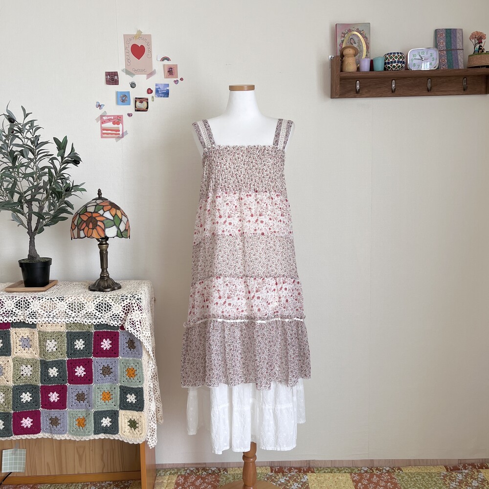 잔꽃 패턴의 쉬폰 패치 원피스예요