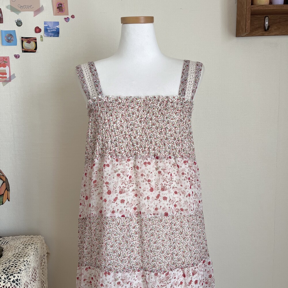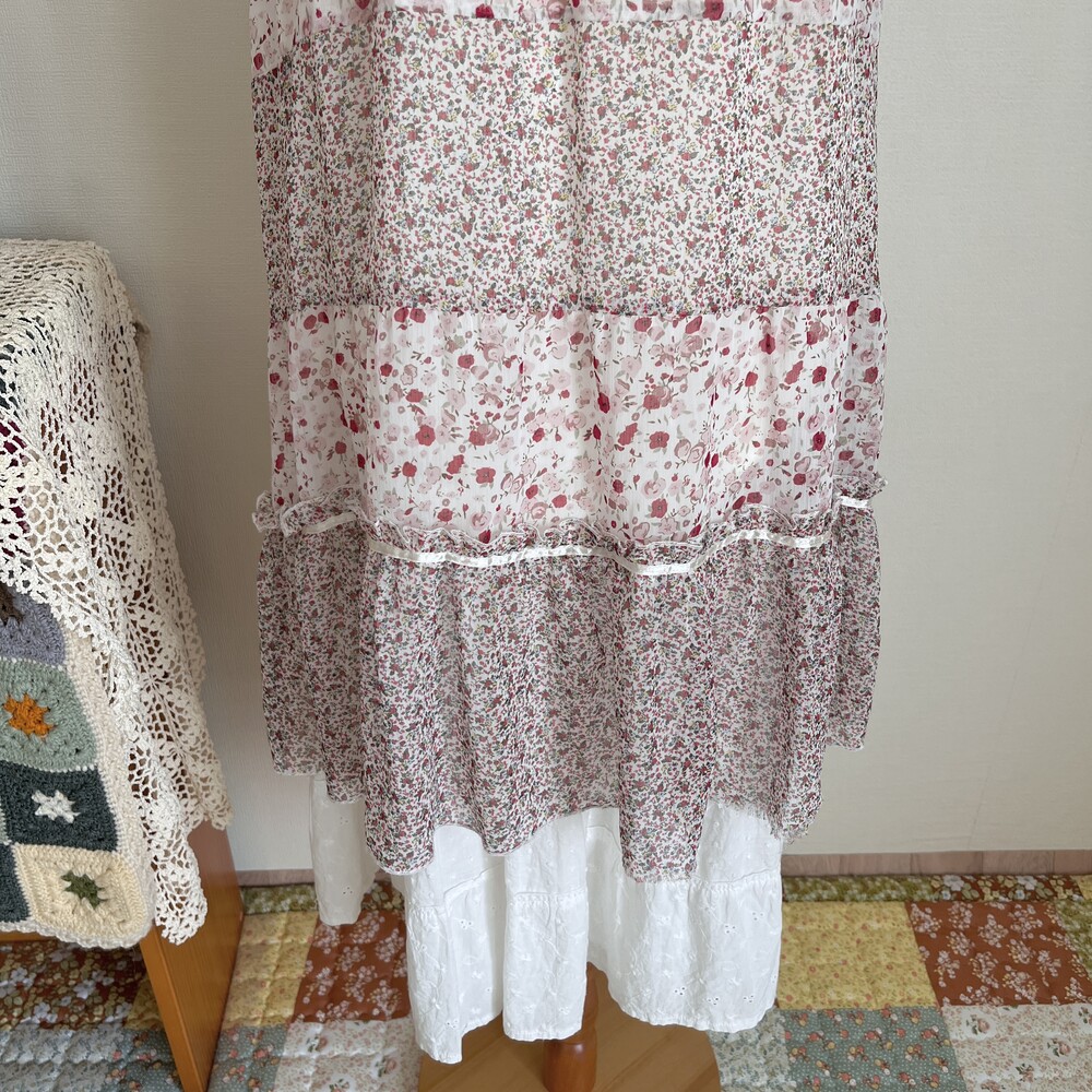 pink mini flower chiffon patch tiered ops