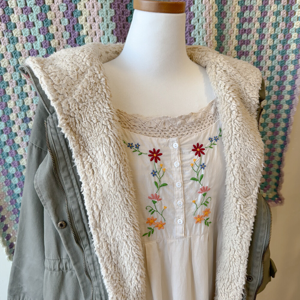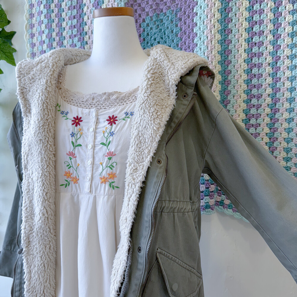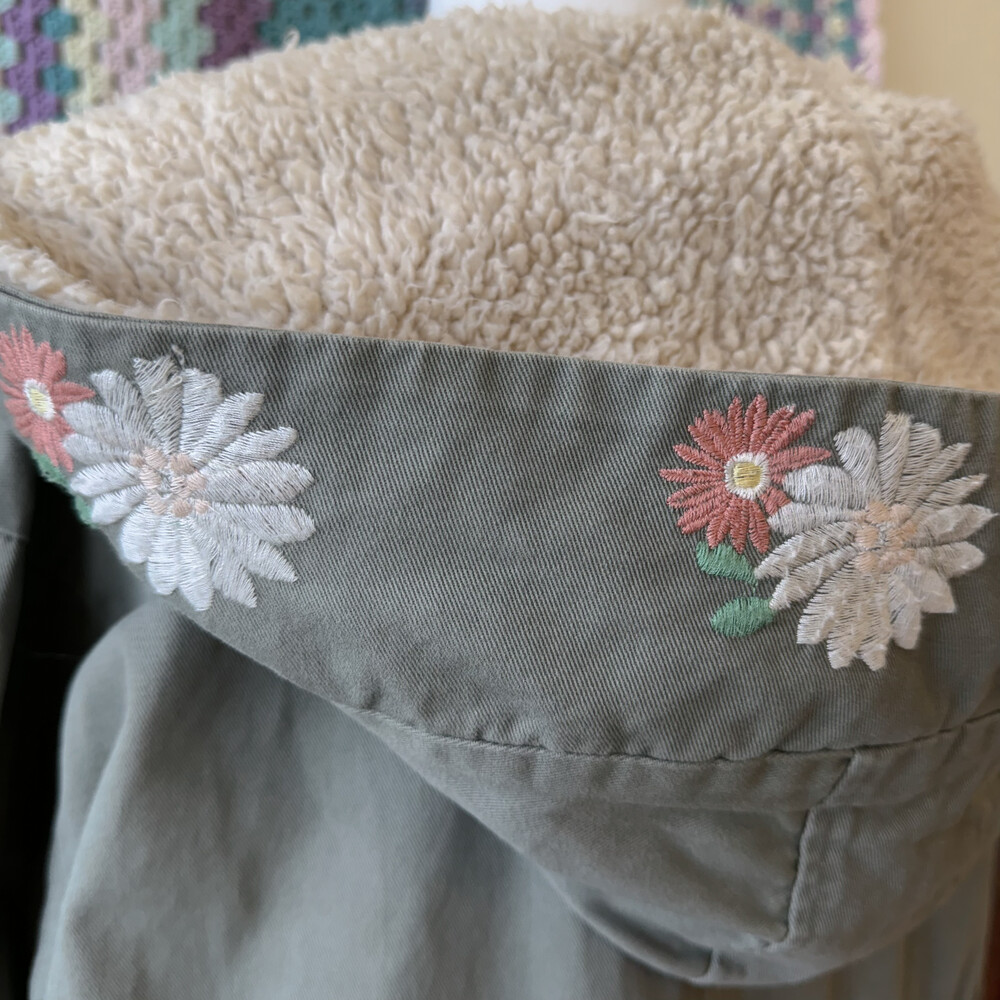 후드 부분에는 꽃자수가 들어가 있어서 유니크한 디자인이랍니다