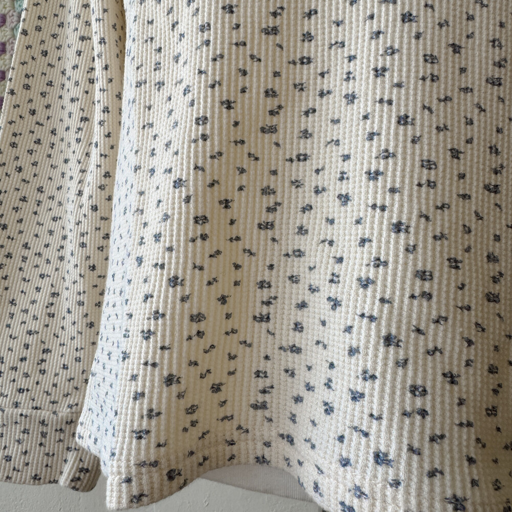 코튼 소재구요, 아이보리 바탕에 네이비 잔꽃 패턴이 가득 들어가 있어요