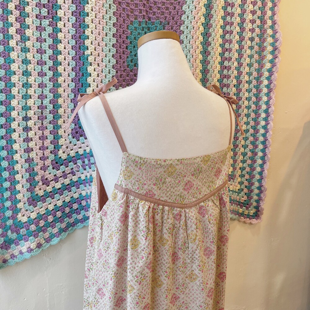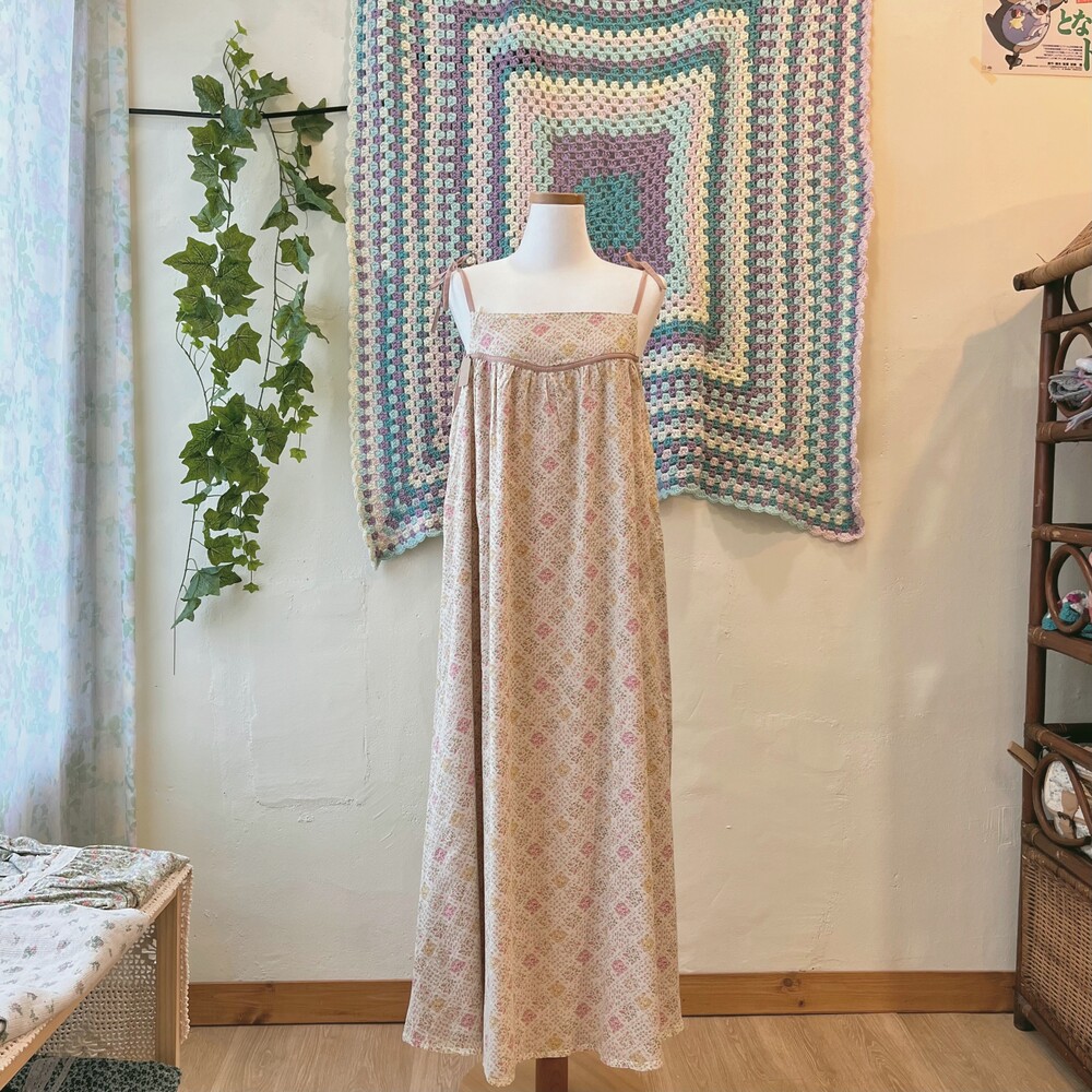 인디핑크와 그린 색감 조합의 끈원피스예요