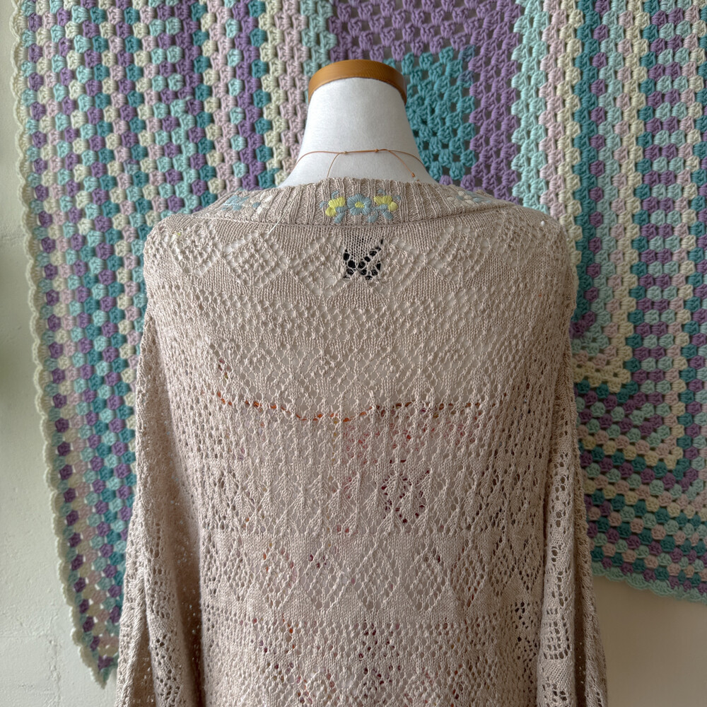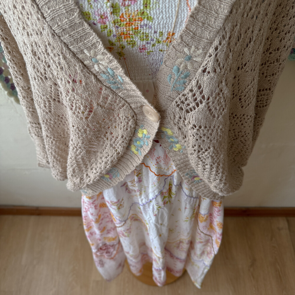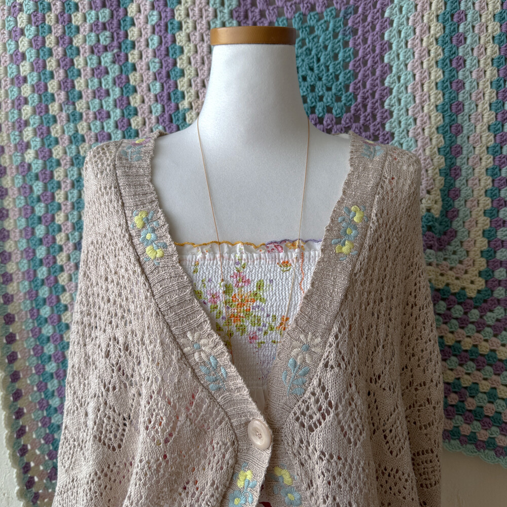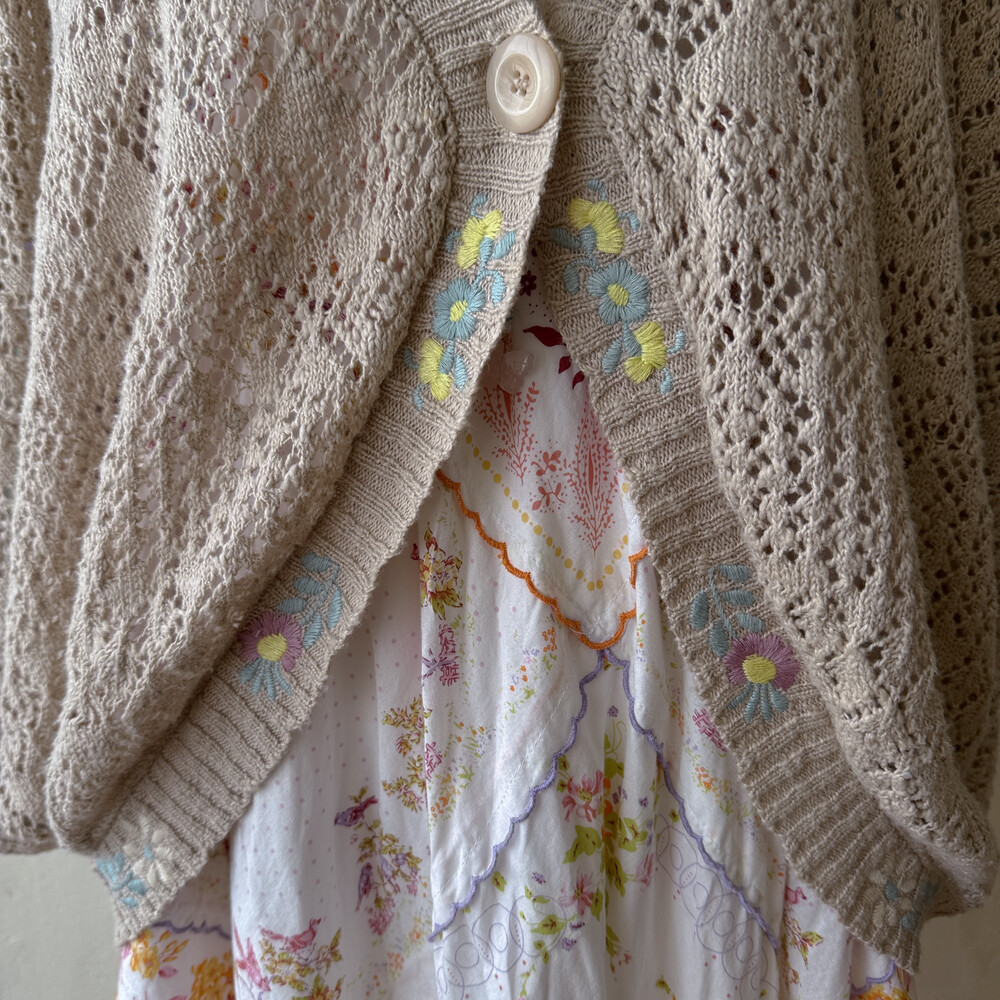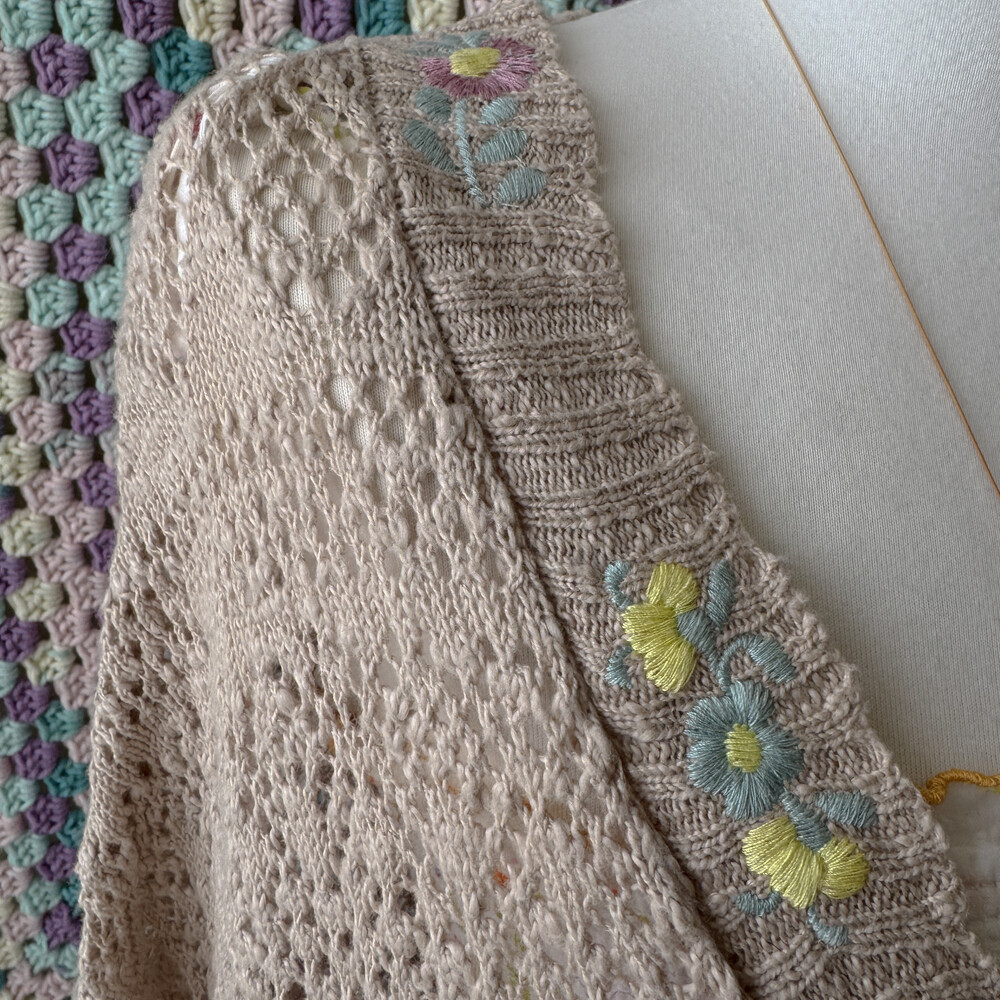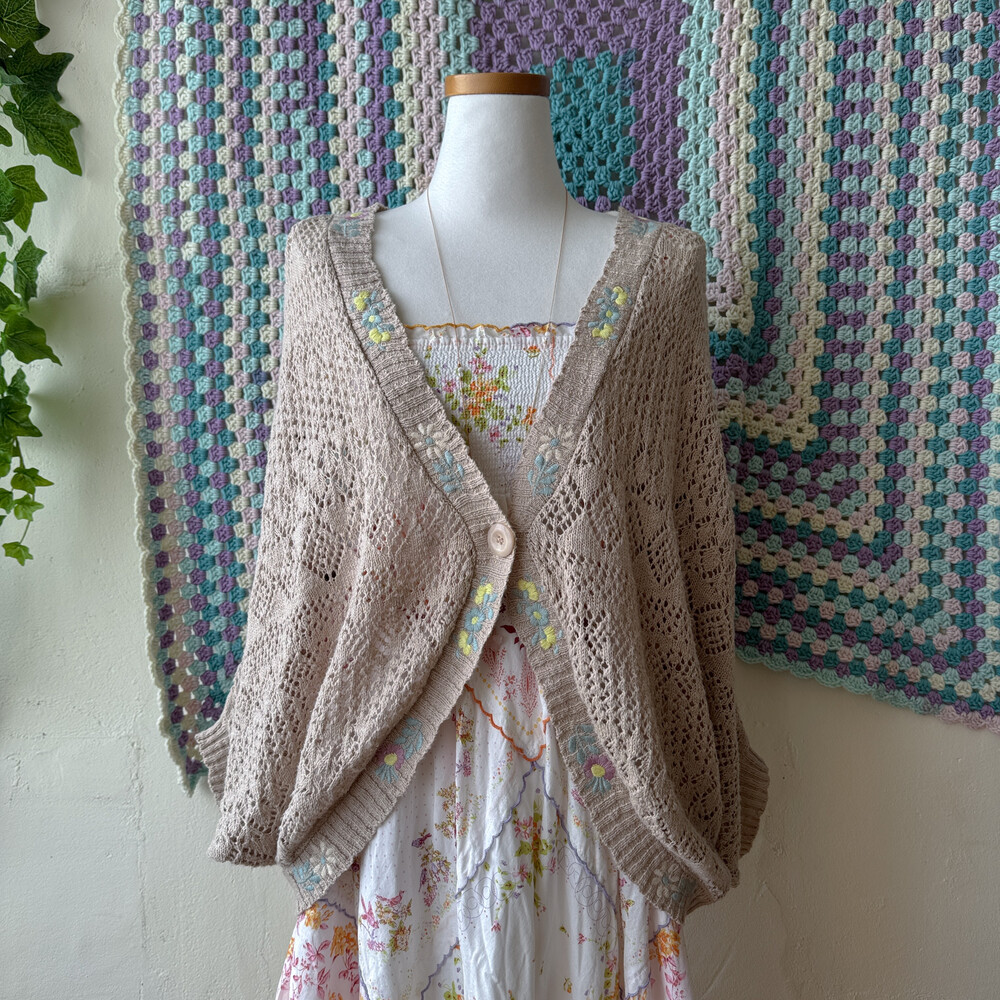 자수 포인트의 가오리핏 크로셰 가디건이에요