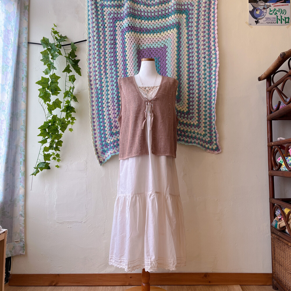 pink brown punching 1 ribbon vest