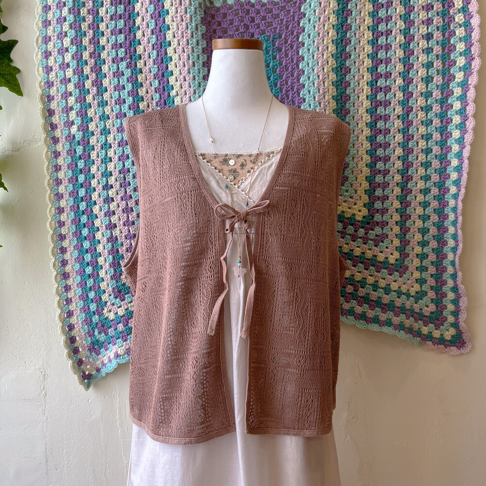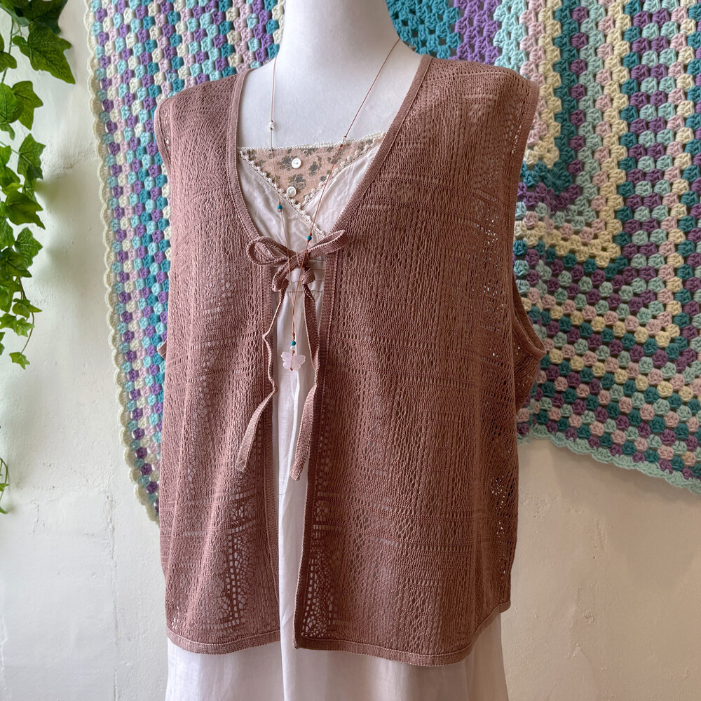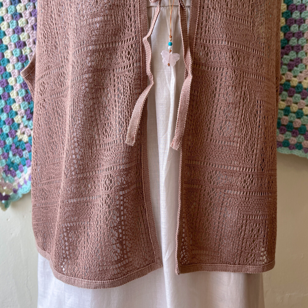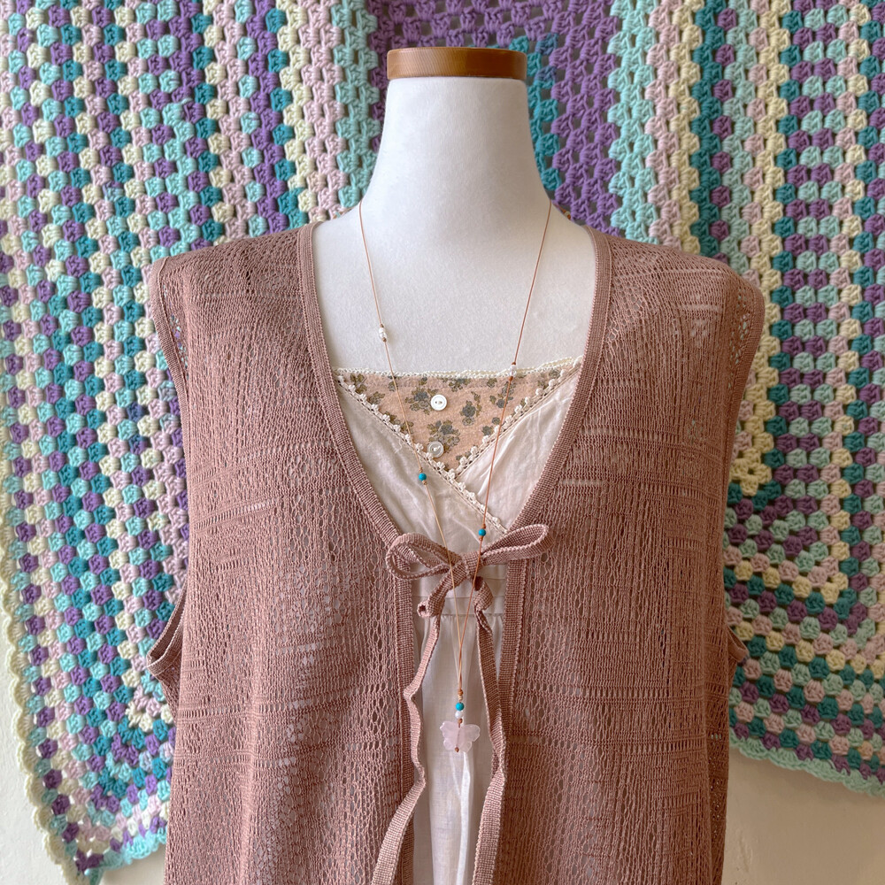 핑크 브라운 색감의 얇은 펀칭 베스트예요