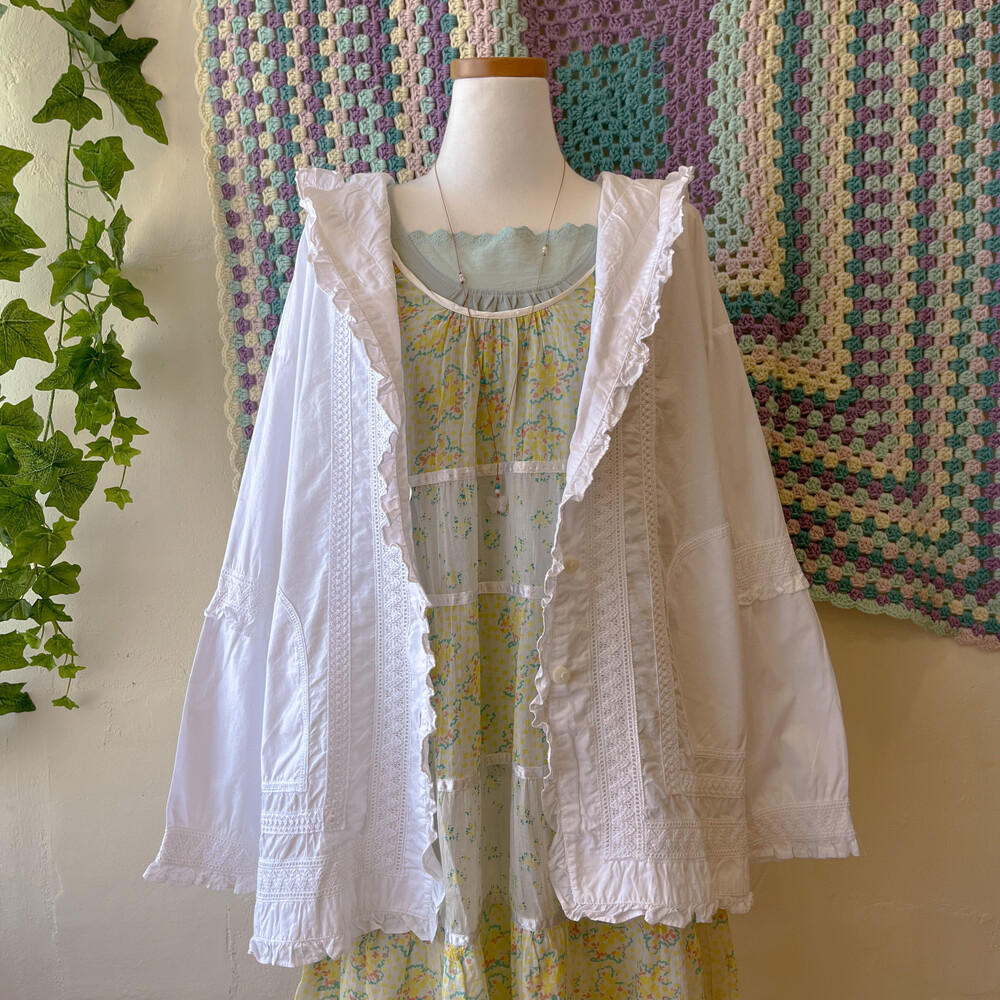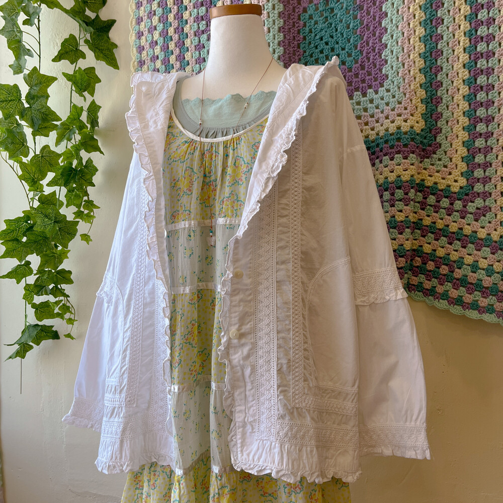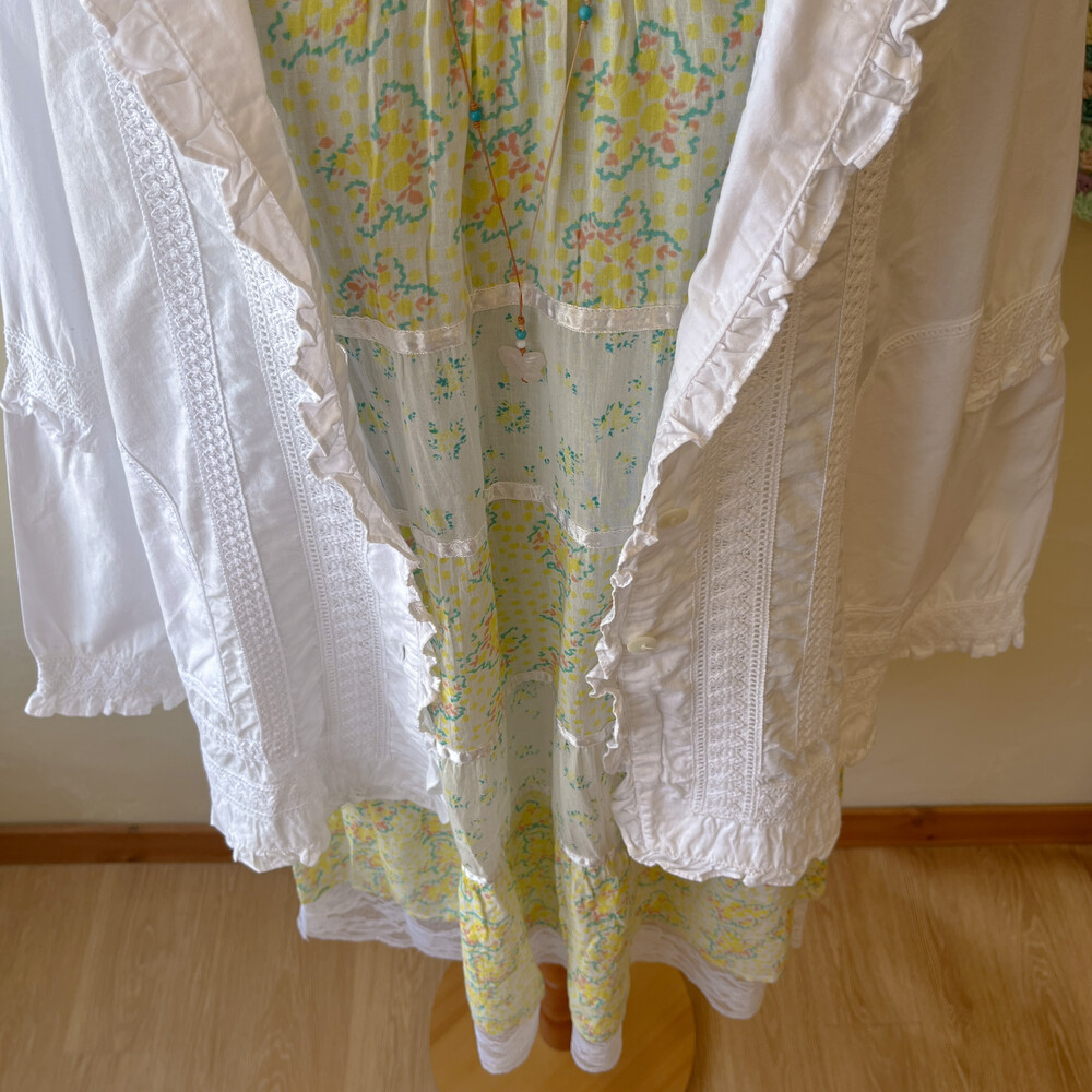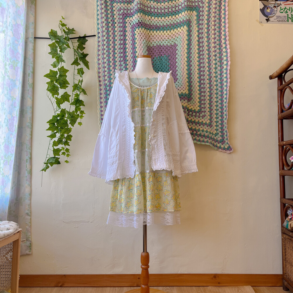그리너리한 분위기에 밑단 레이스 포인트가 들어가서 요정 같은 분위기가 나요