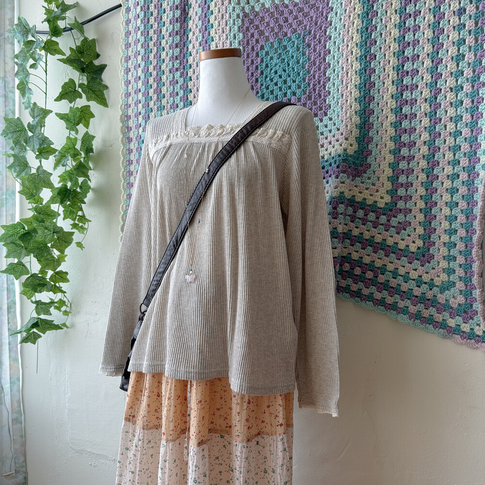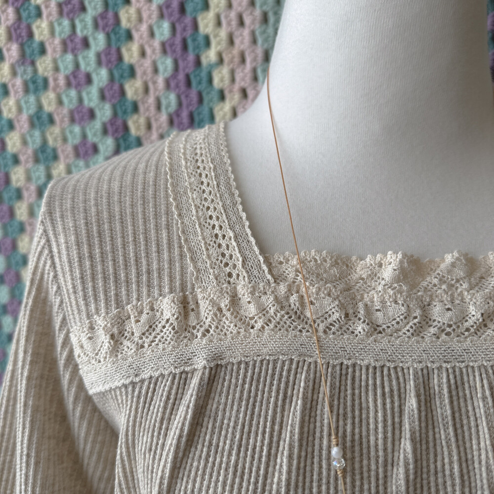 스퀘어넥에 레이스 디테일이 들어가 있고