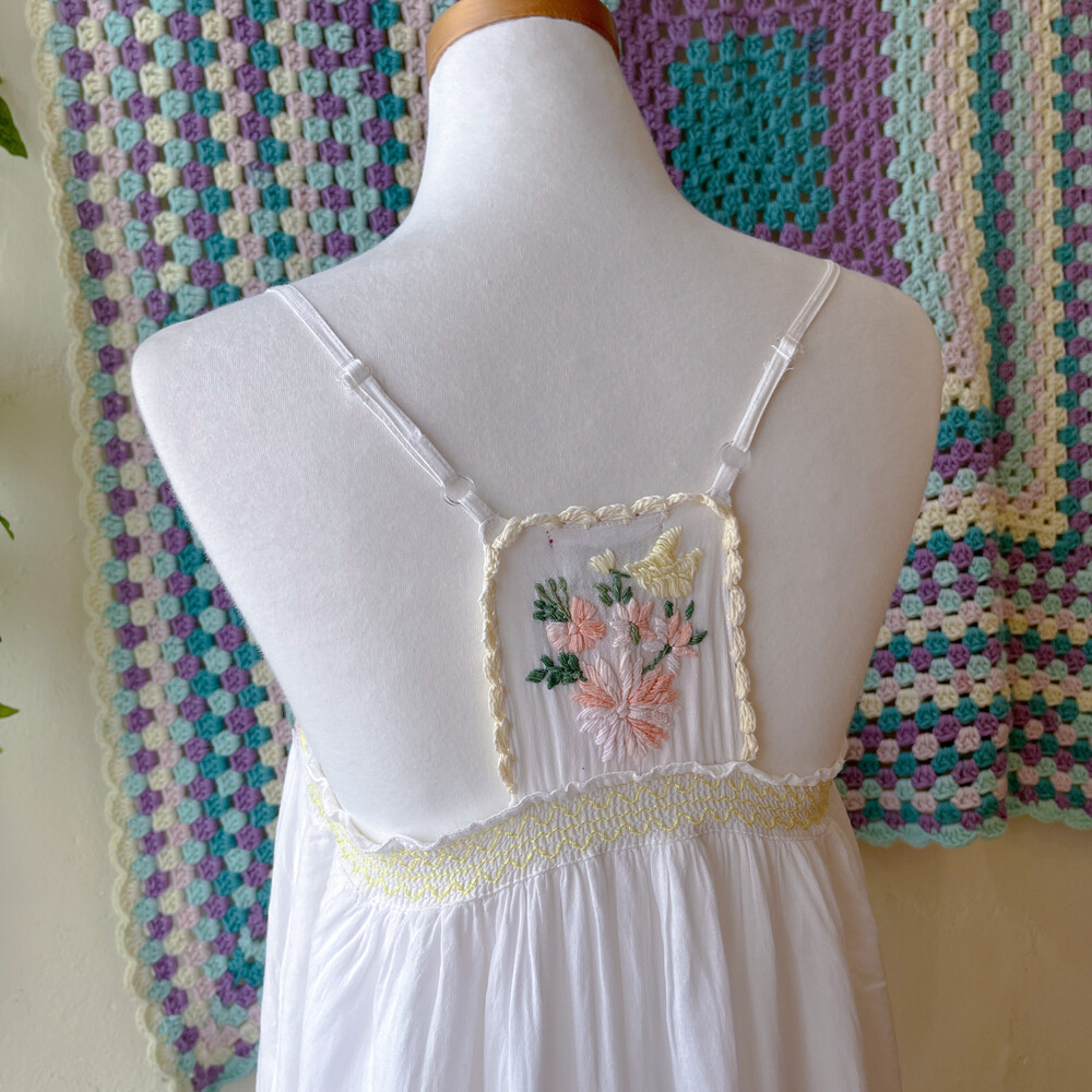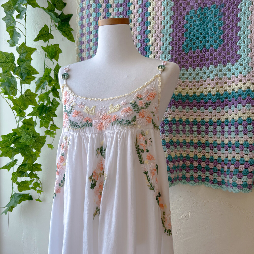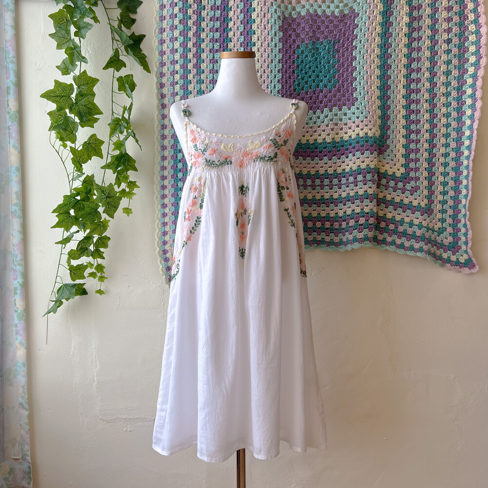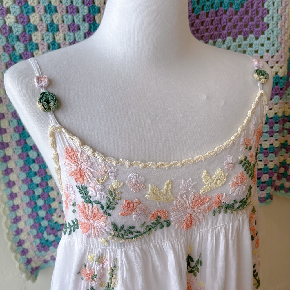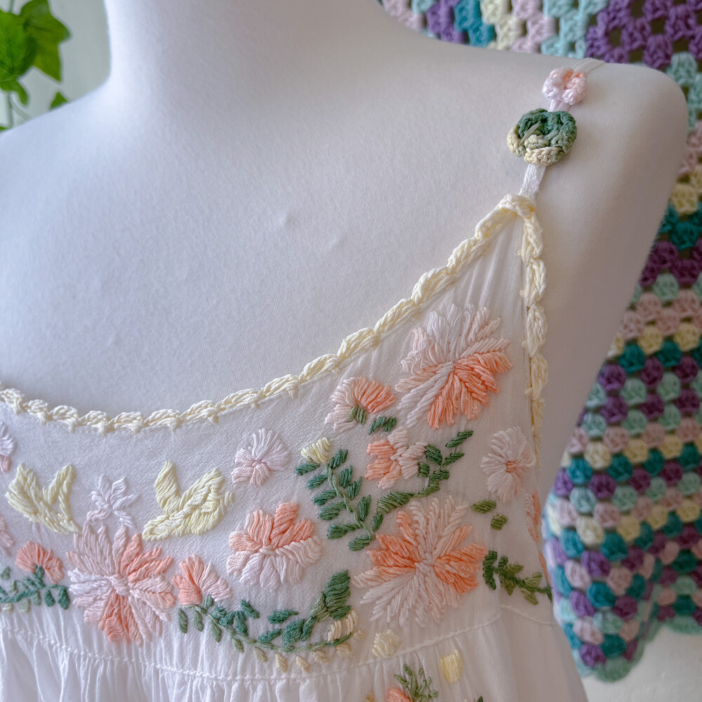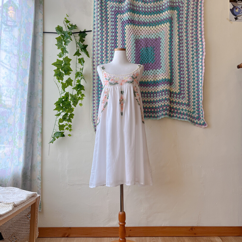 살구색감 꽃자수 포인트의 끈원피스예요