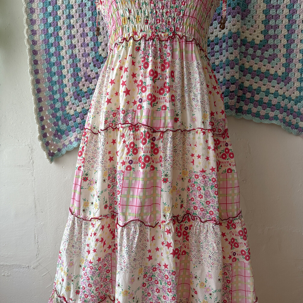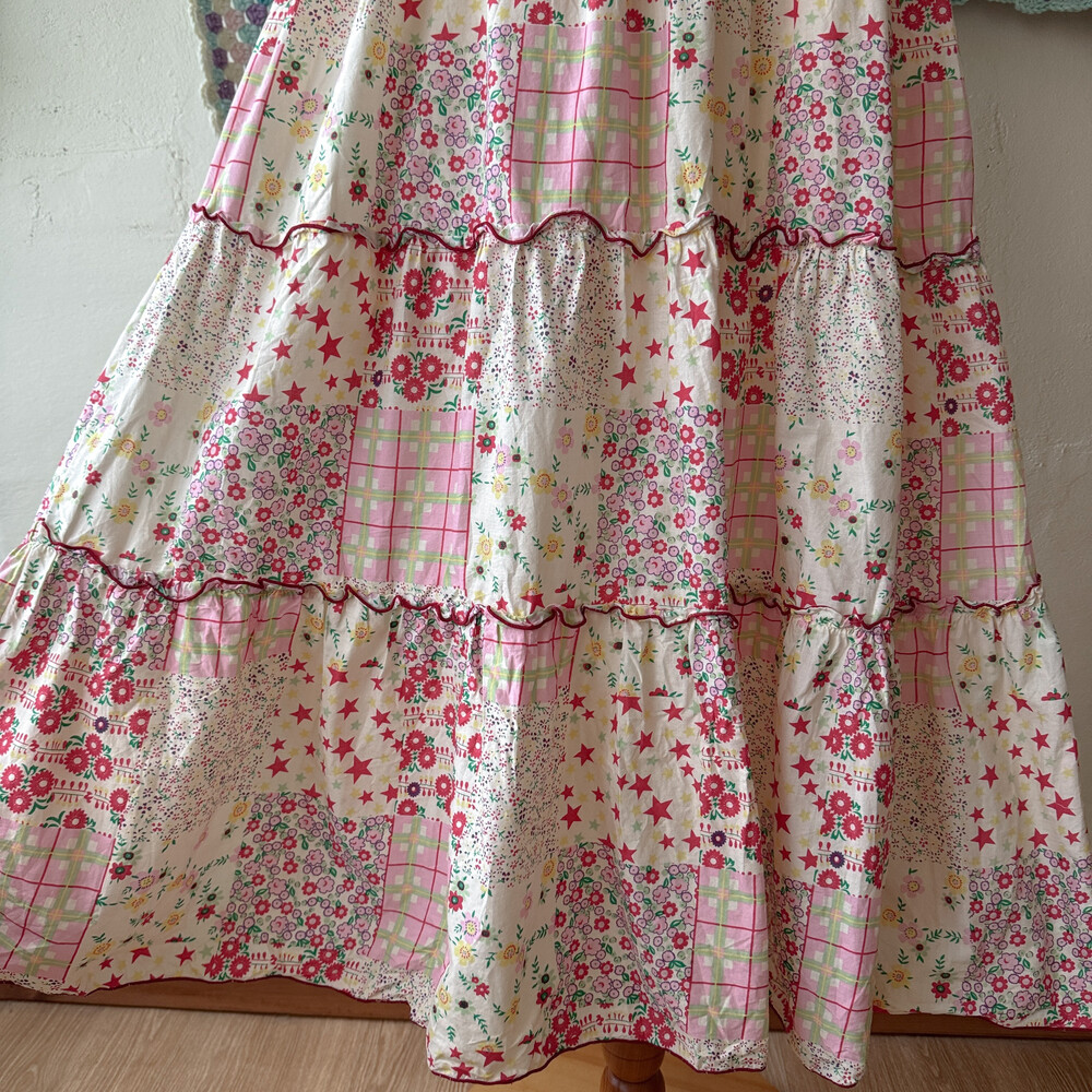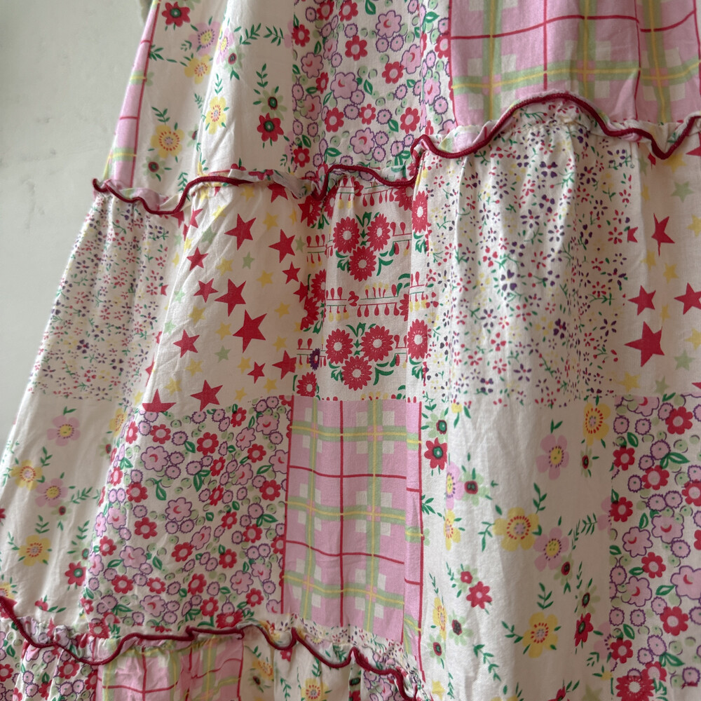 핑크색의 꽃무늬, 별 패턴의 프릴 캉캉 원피스예요