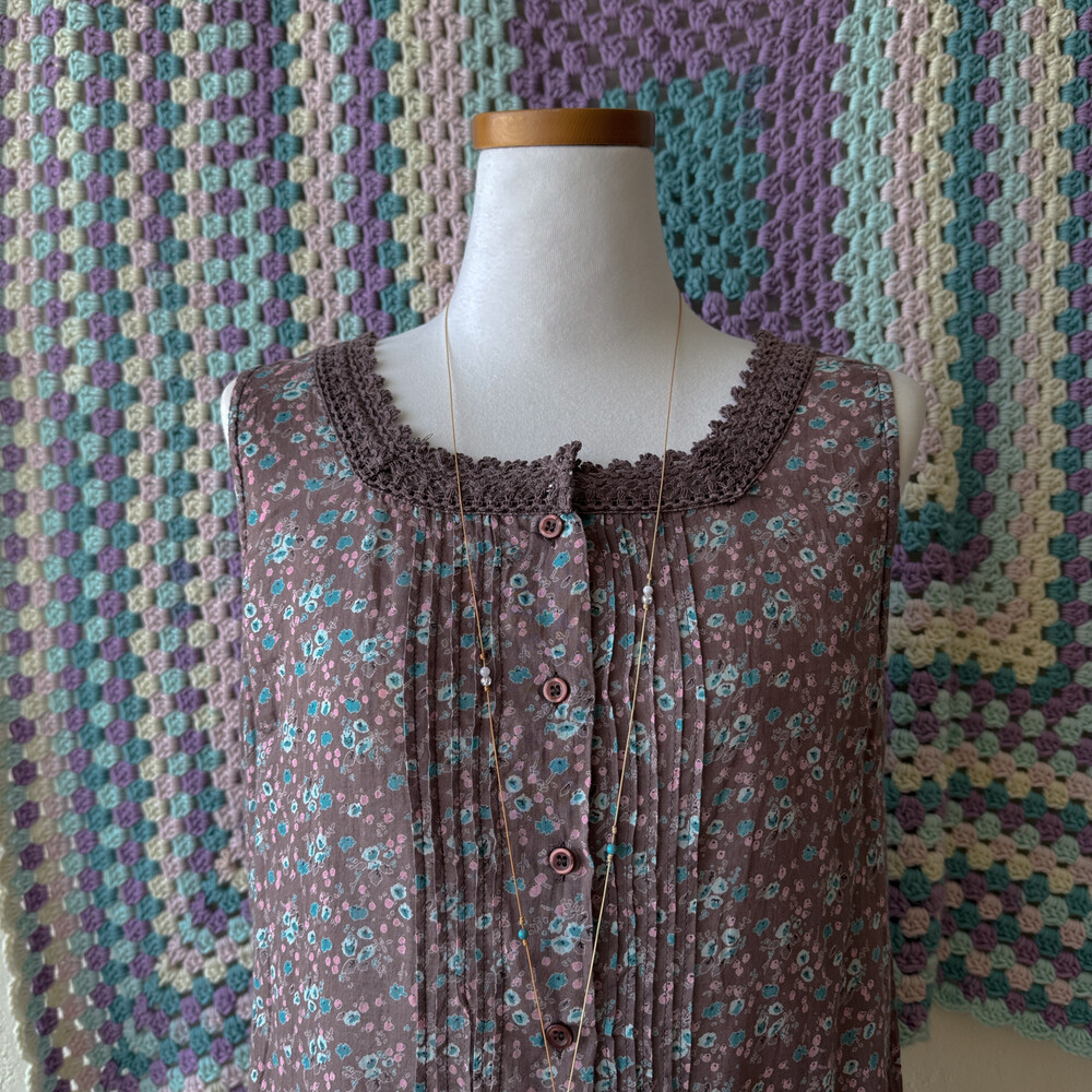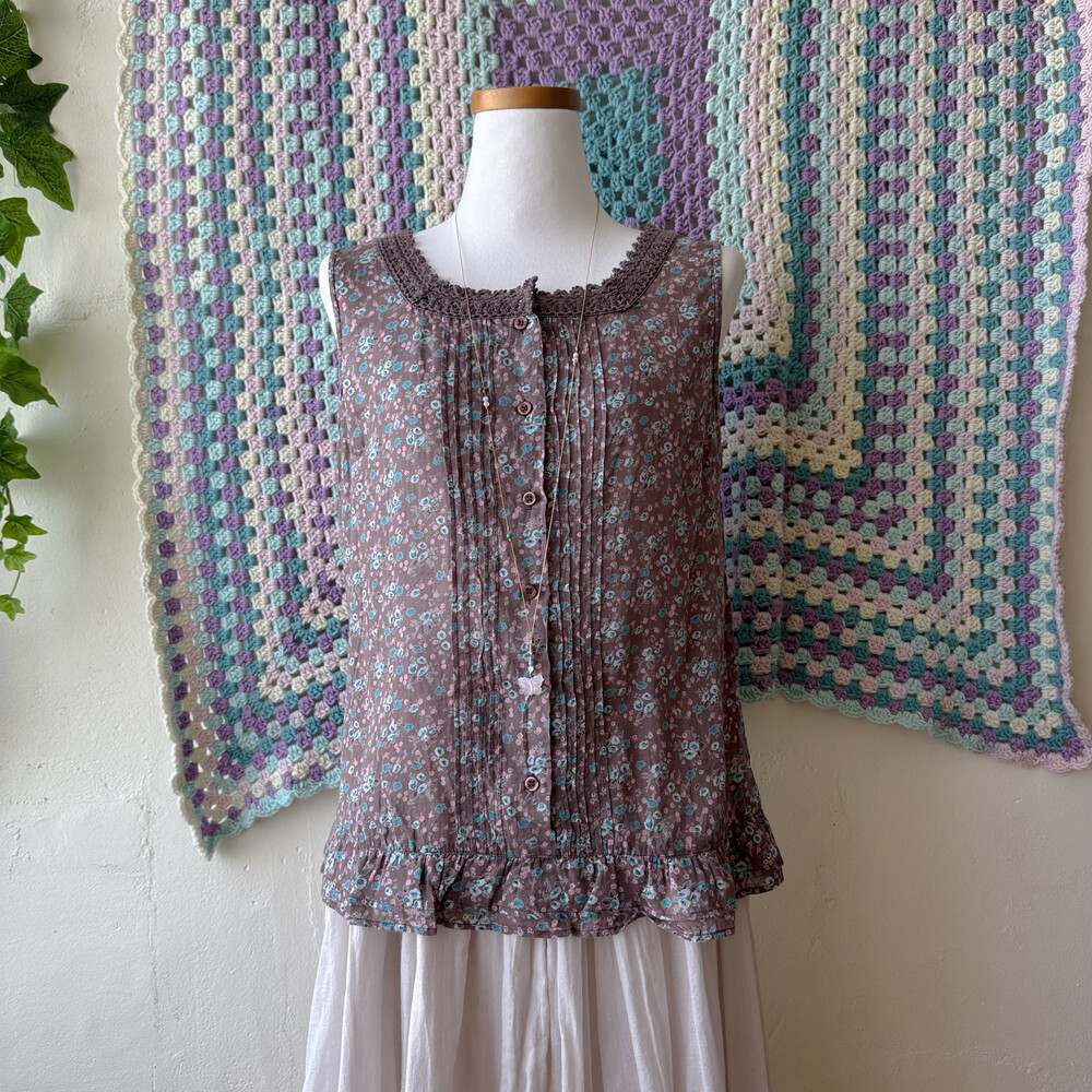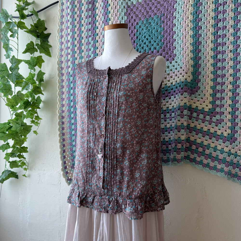 팥죽+브라운색의 민소매 코튼 블라우스예요