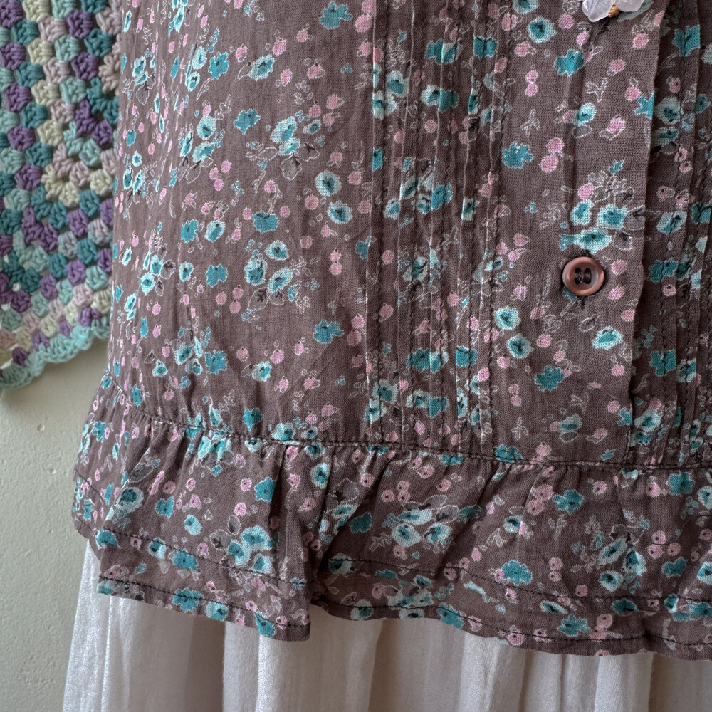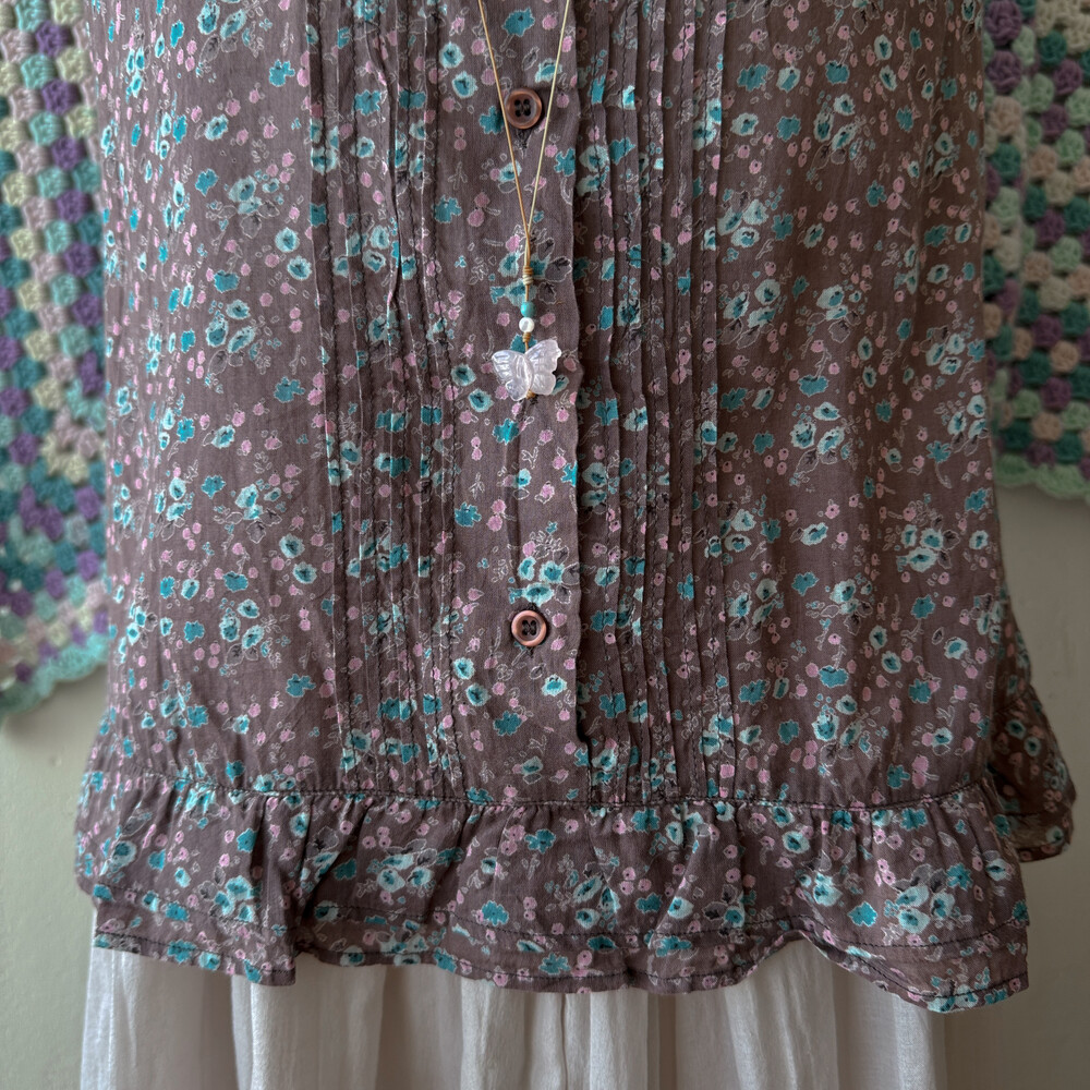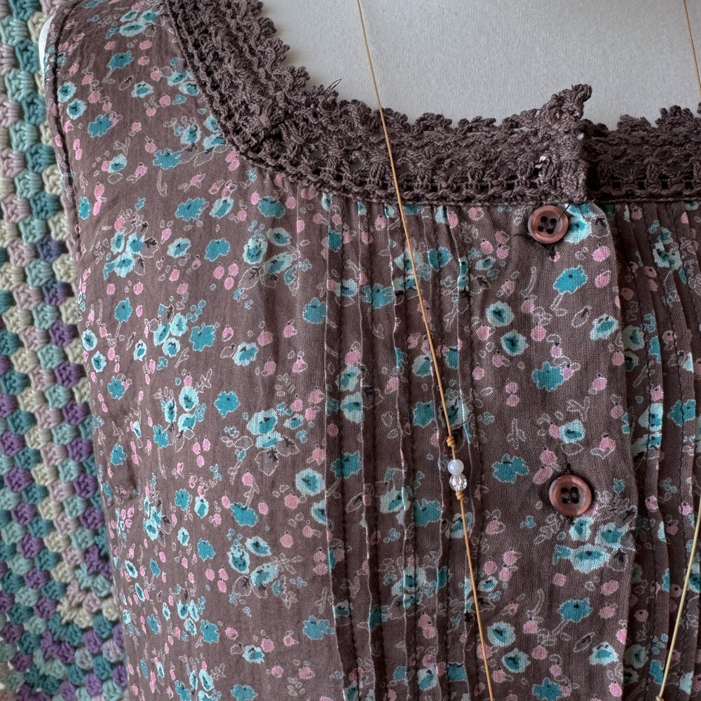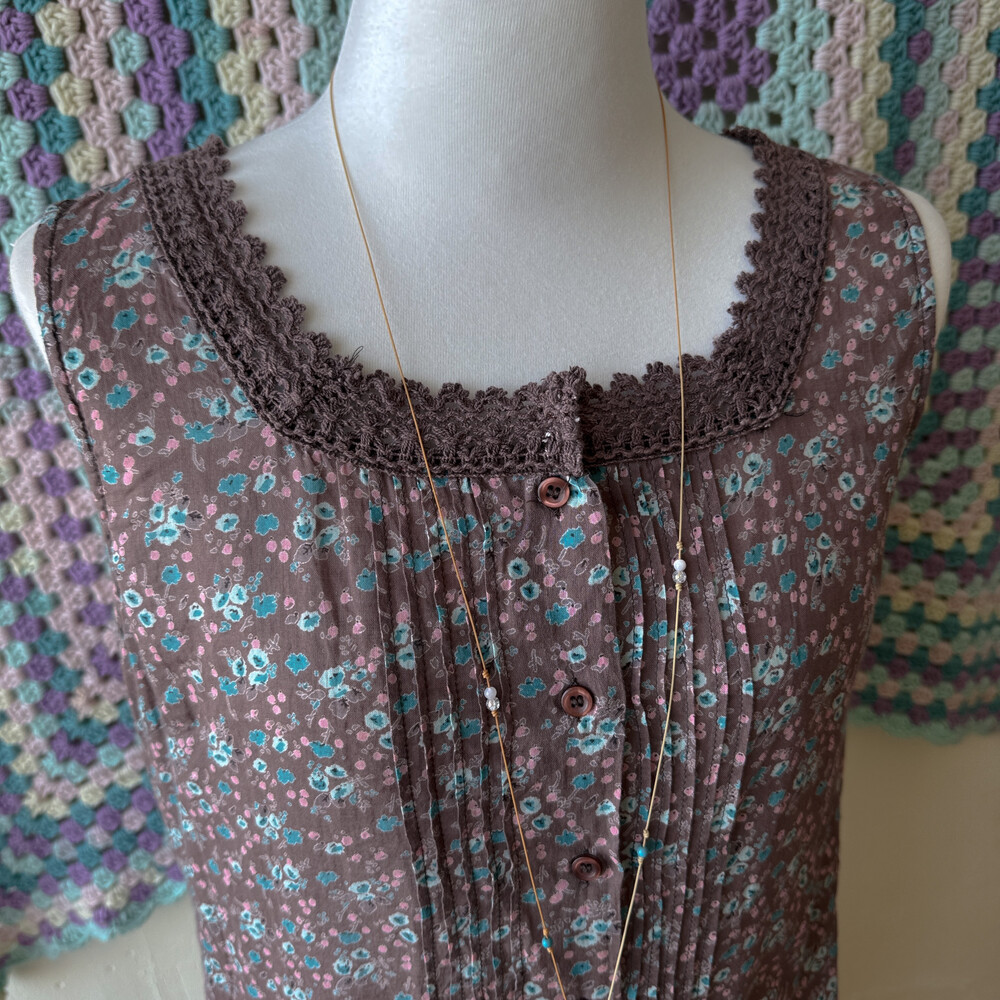 팥죽+브라운색의 민소매 코튼 블라우스예요