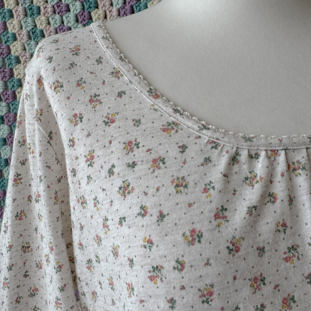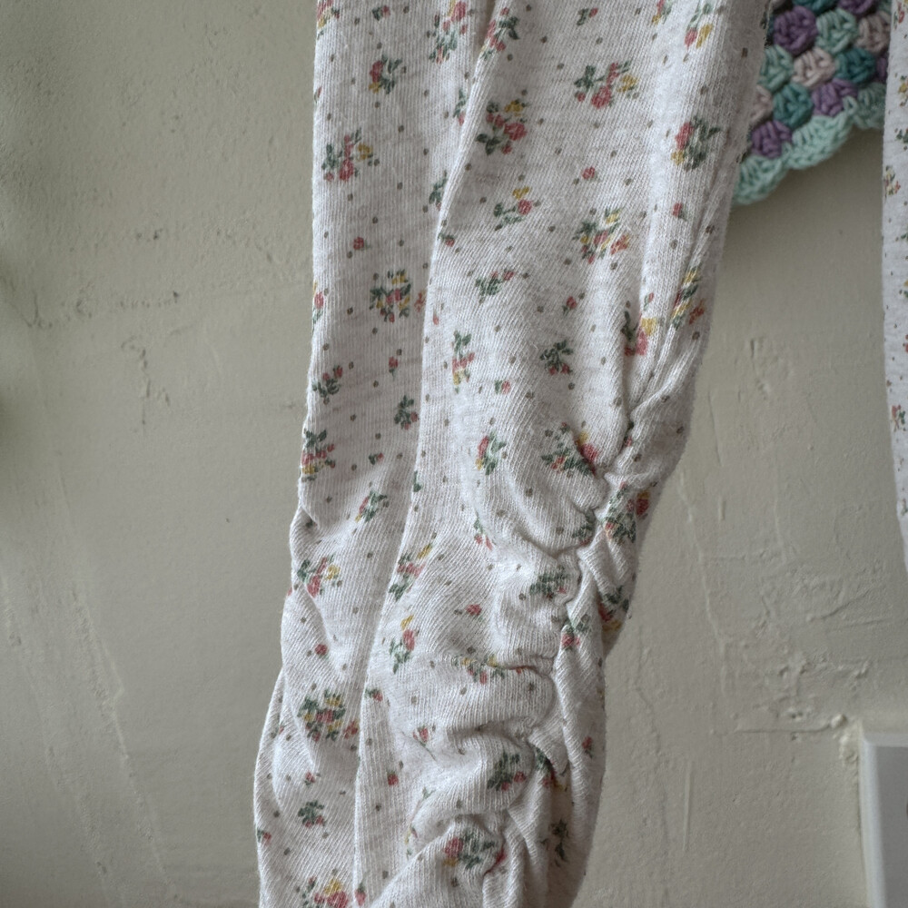 연한 오트밀 바탕에 그린과 웜핑크 꽃무늬가 가득 들어가 있어요!