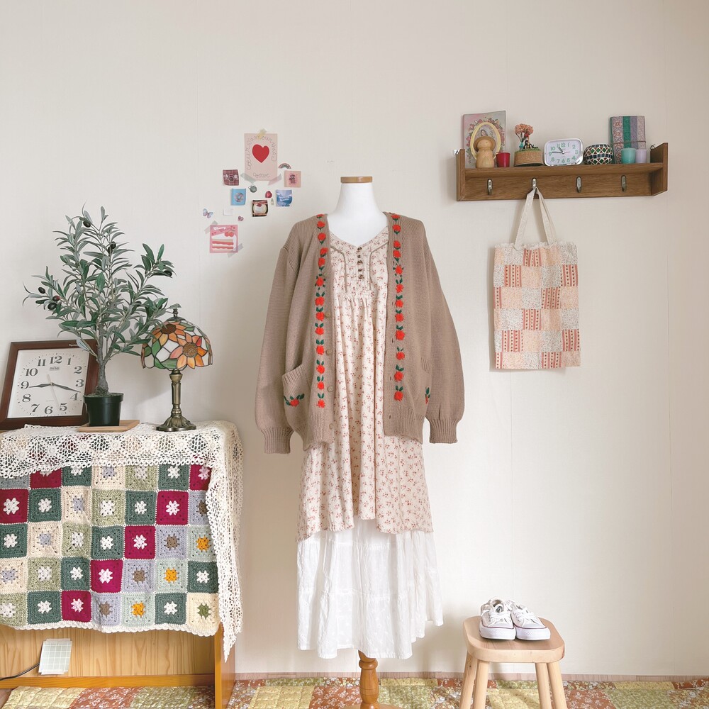 오렌지 색감의 자수 포인트들도 사랑스럽고