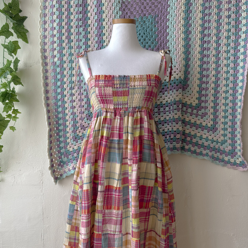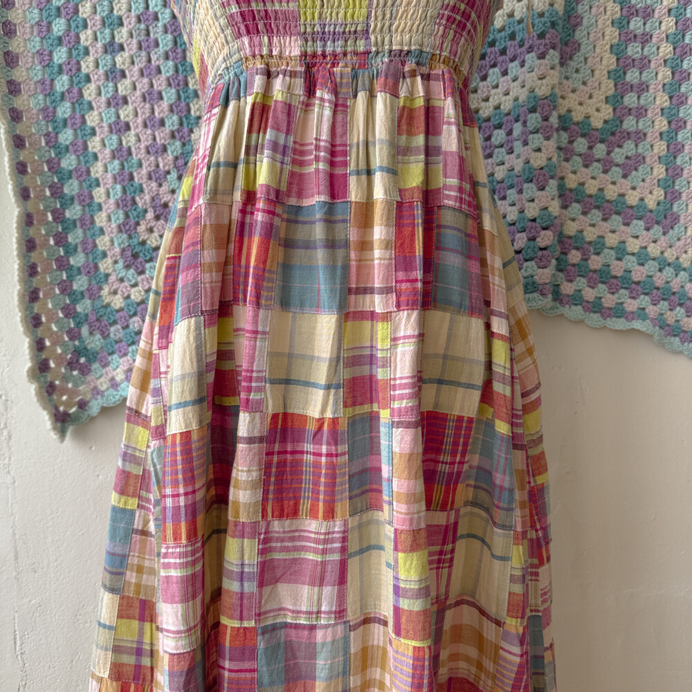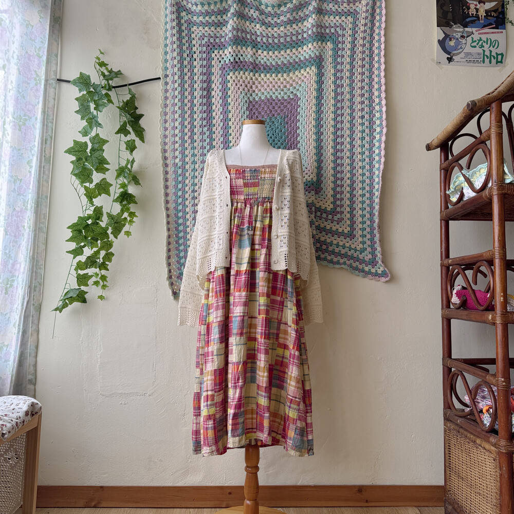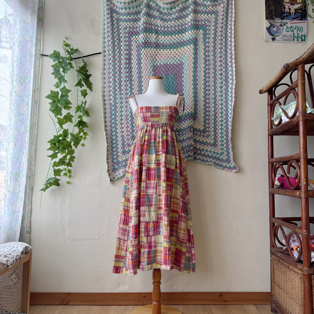 체크 패턴의 패치 끈원피스예요