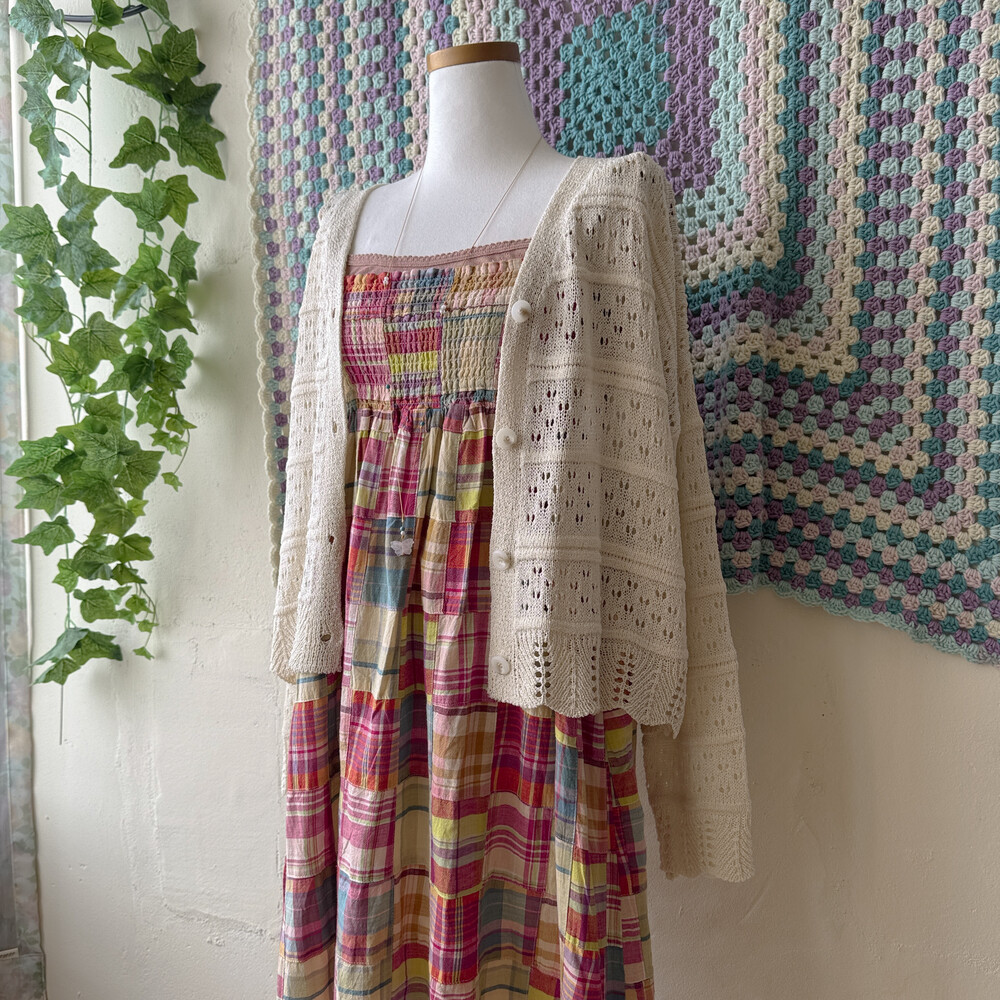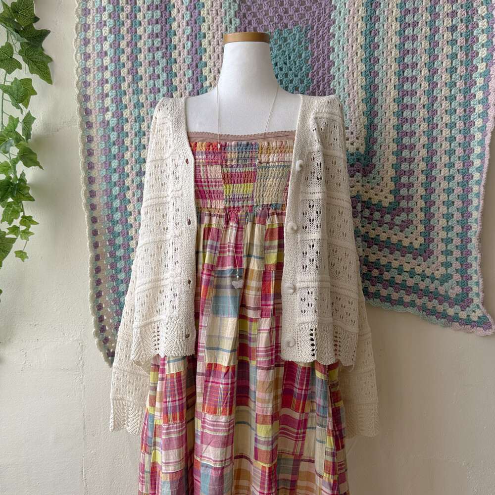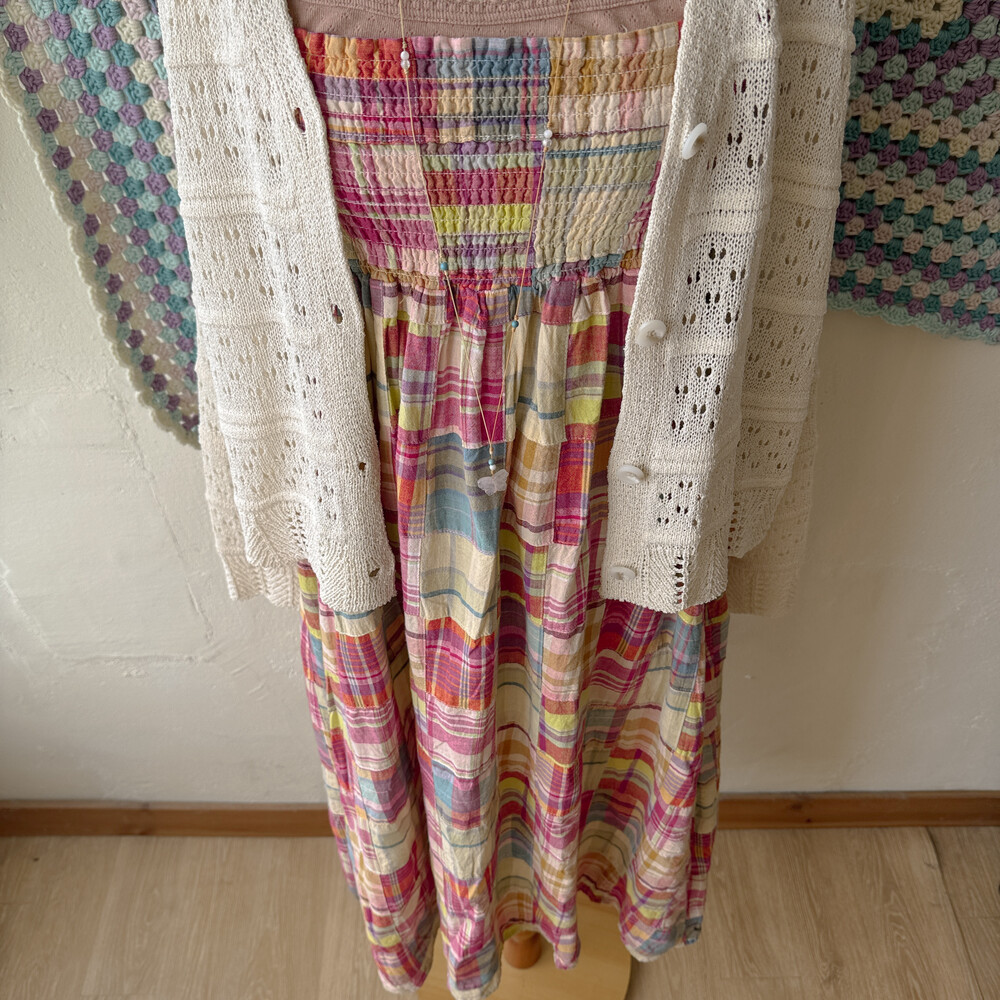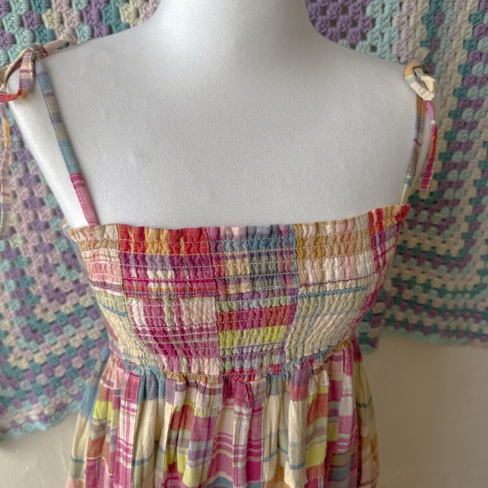 체크 패턴의 패치 끈원피스예요