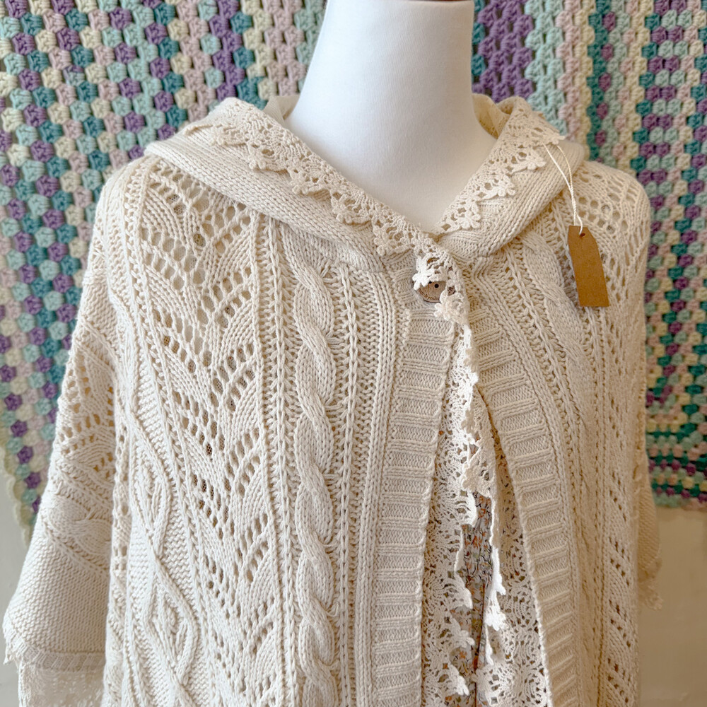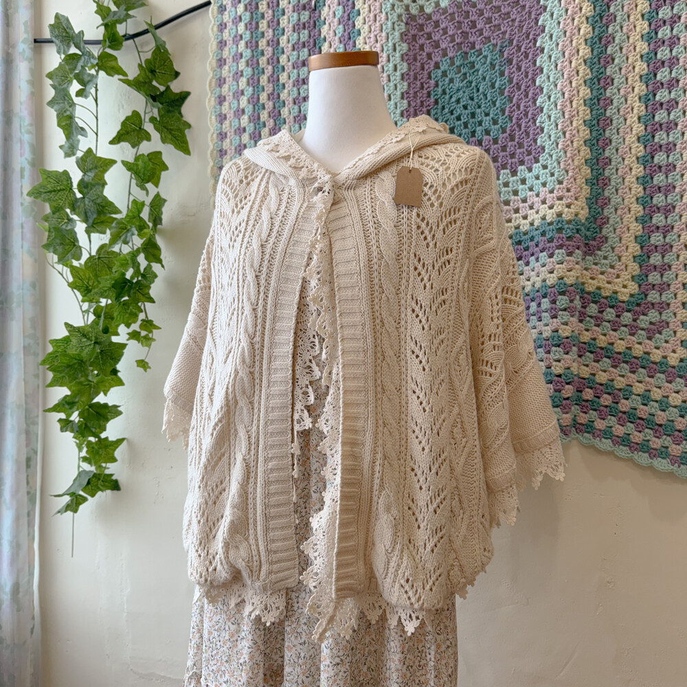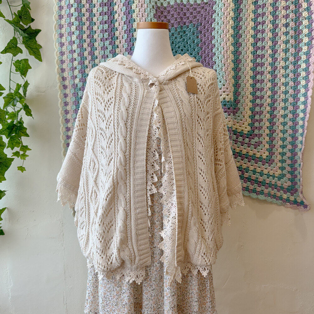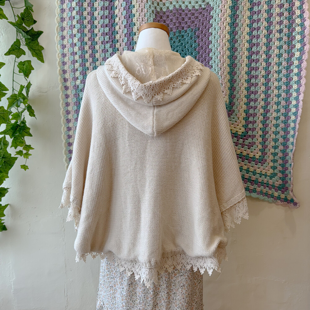 ivory lace&punching hood poncho