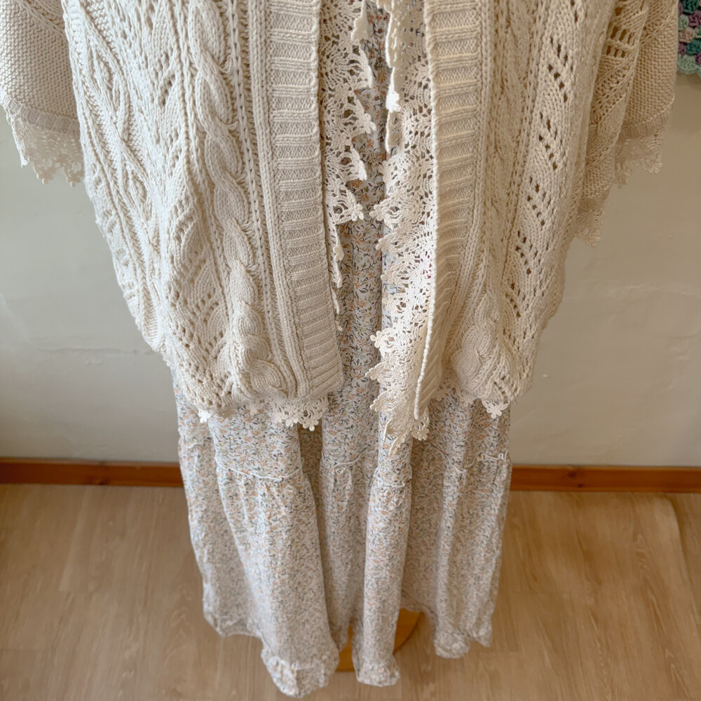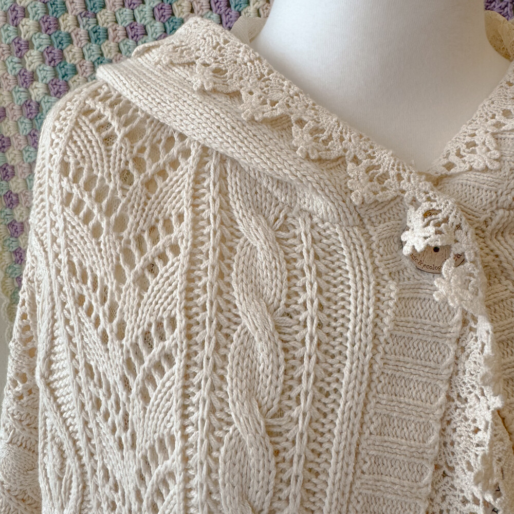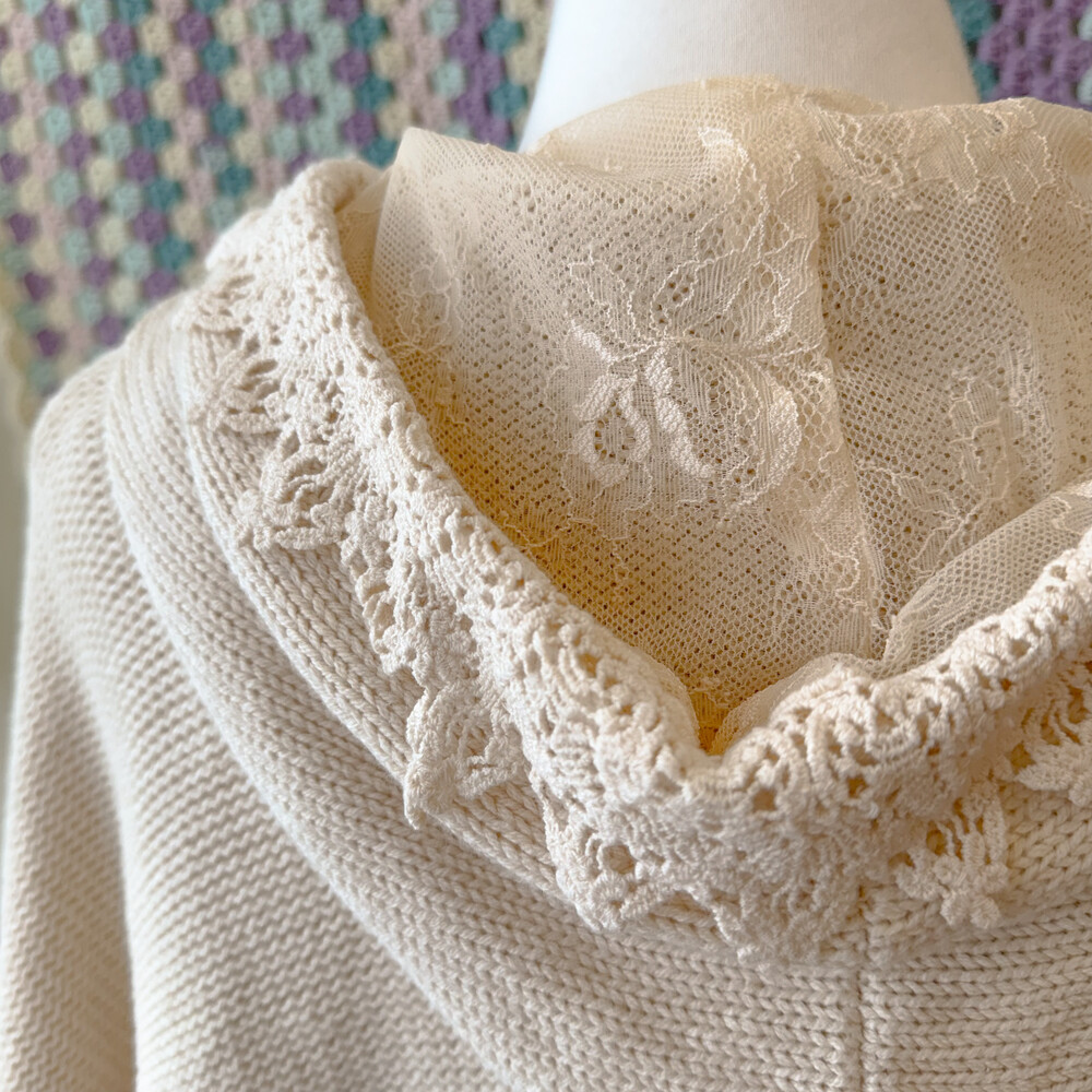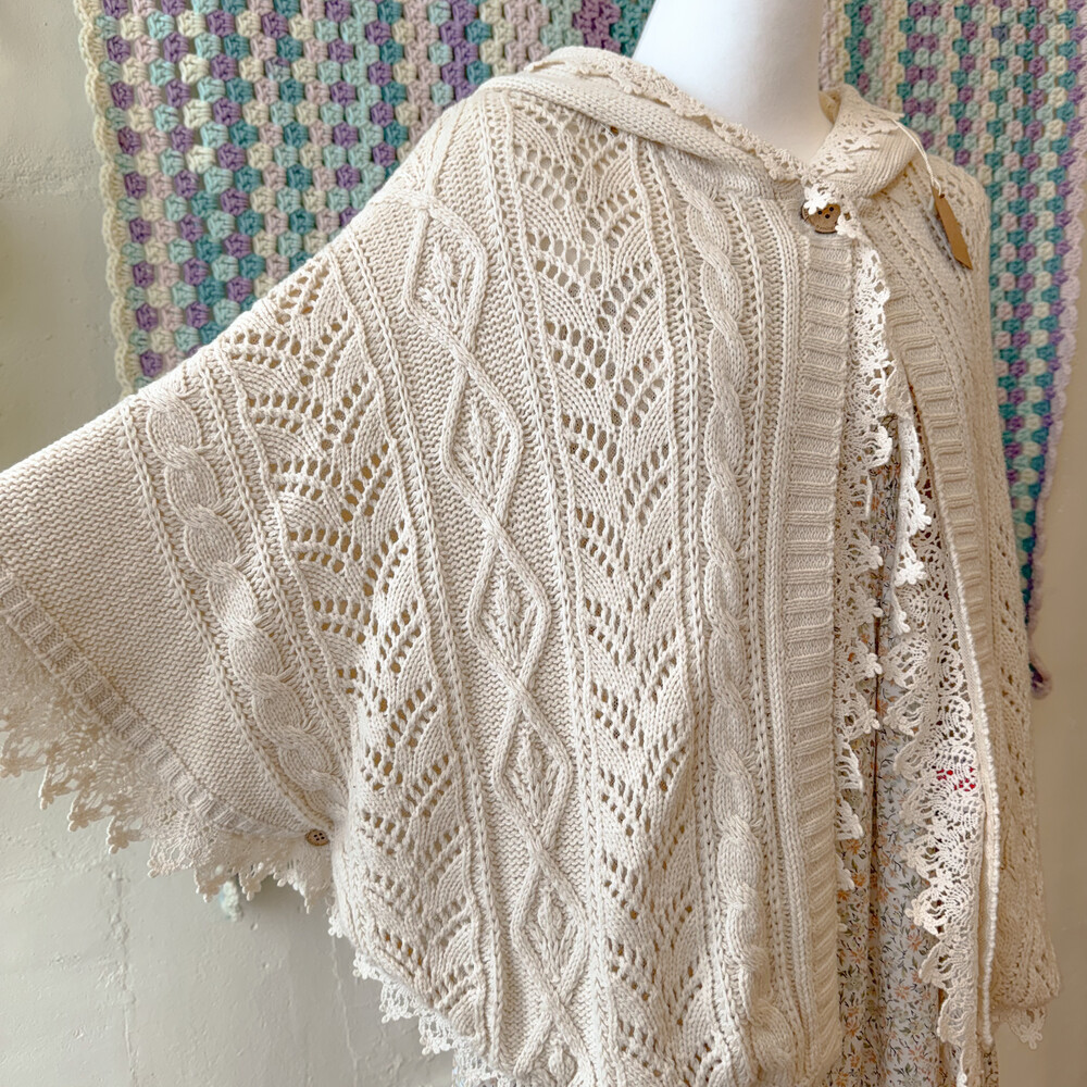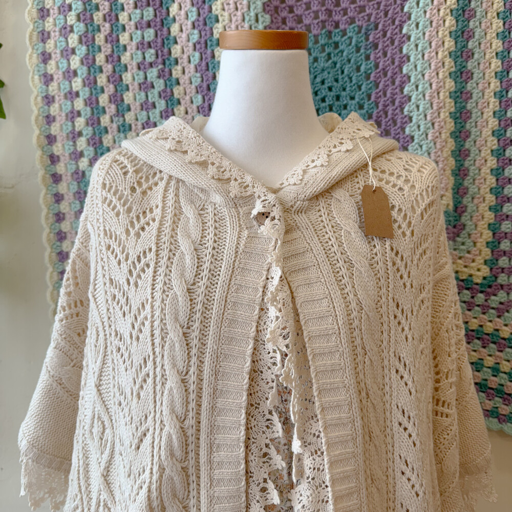 ivory lace&punching hood poncho