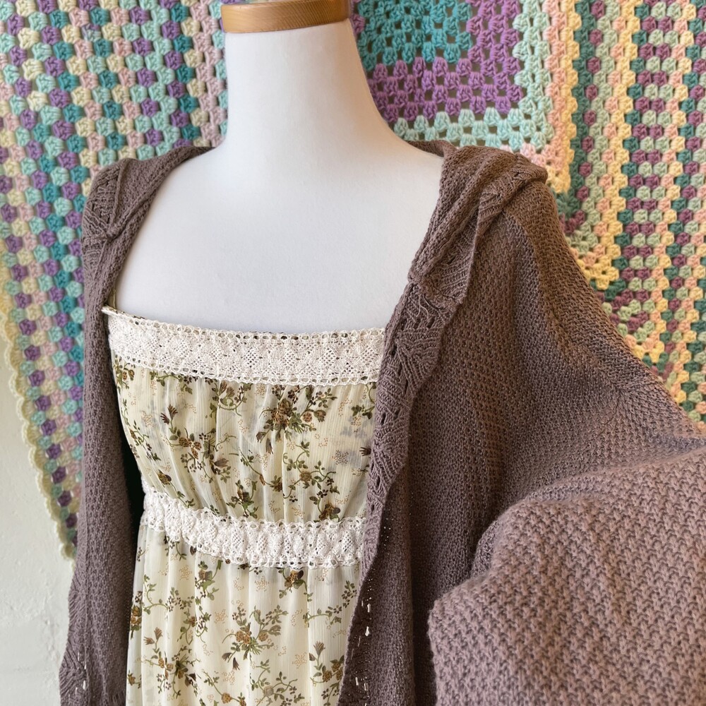 고동색감의 후드 니트 얇은 가디건이에요!