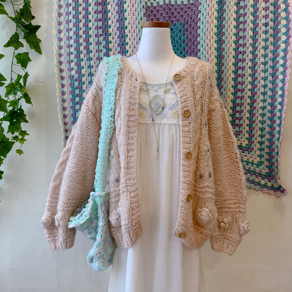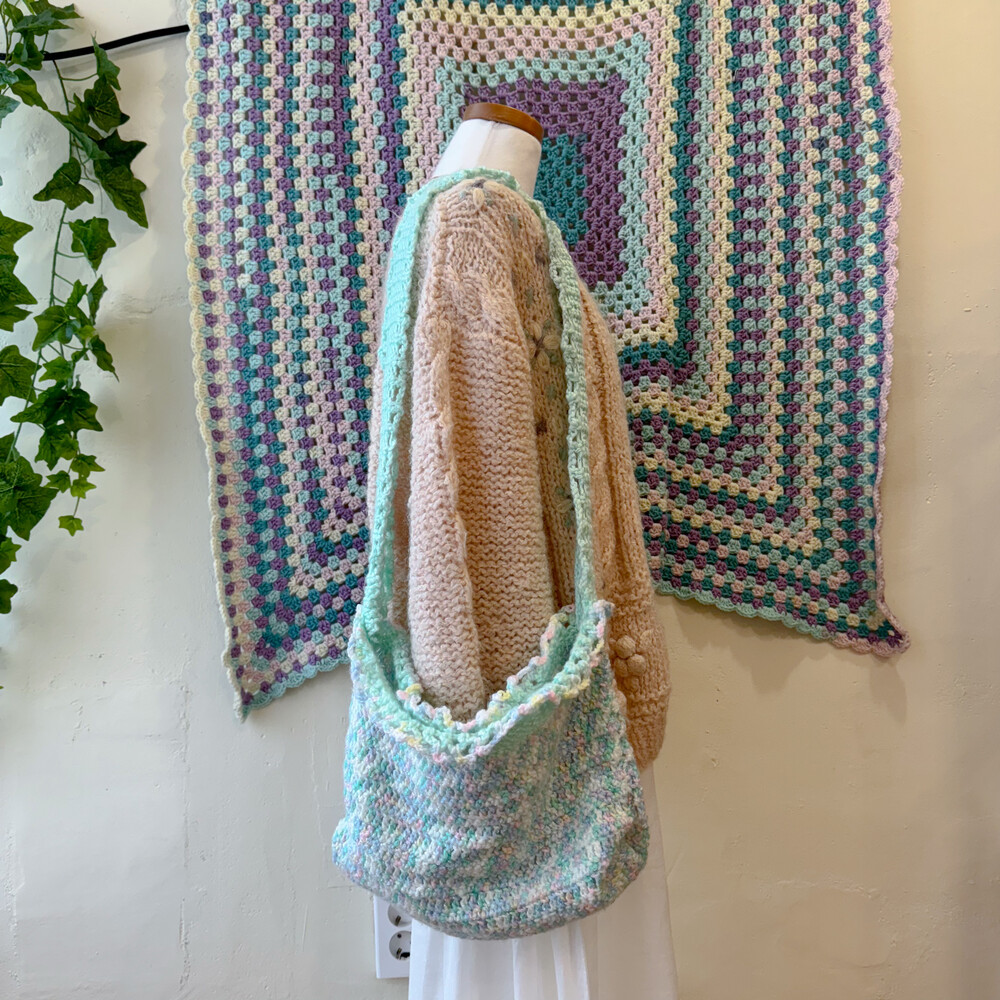 파스텔 색감의 뜨개 숄더백이에요