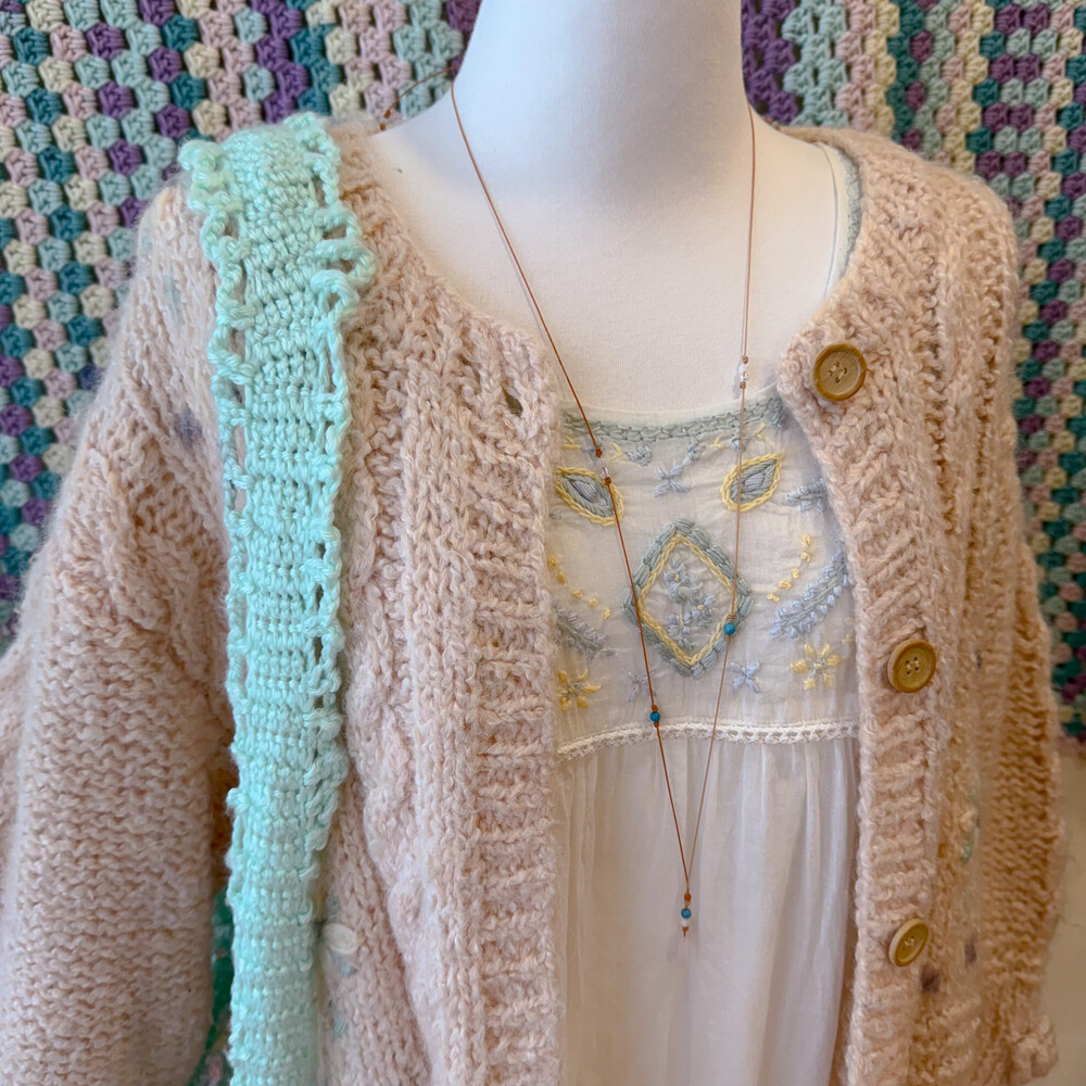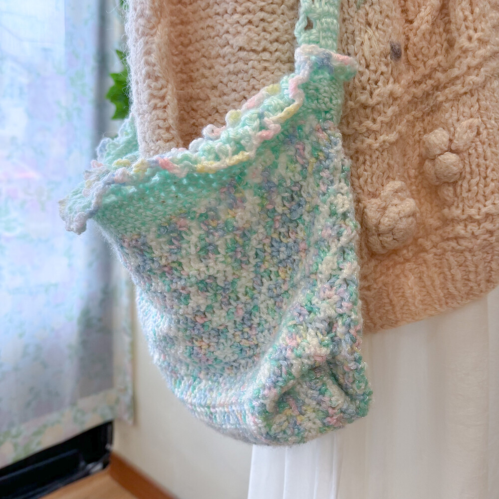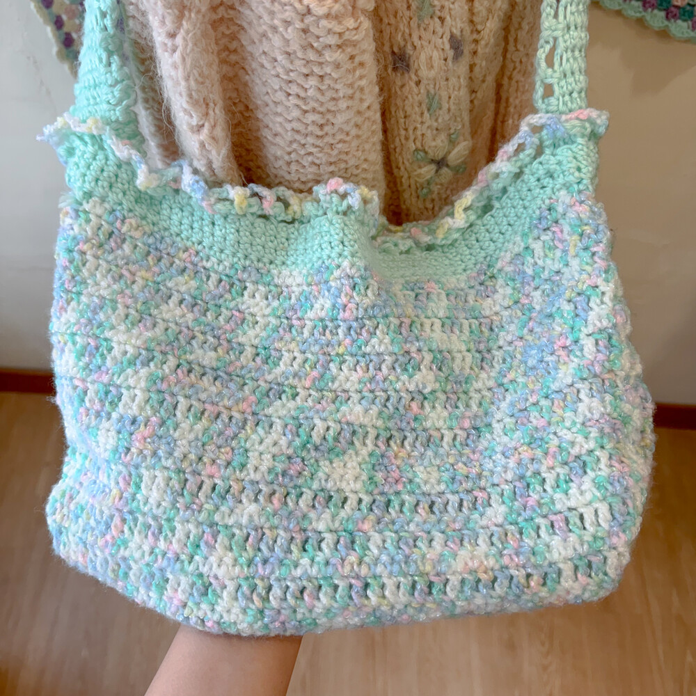 pastel mint&green crochet shoulder bag