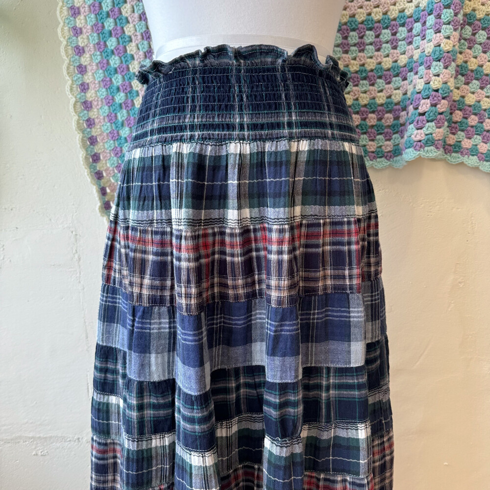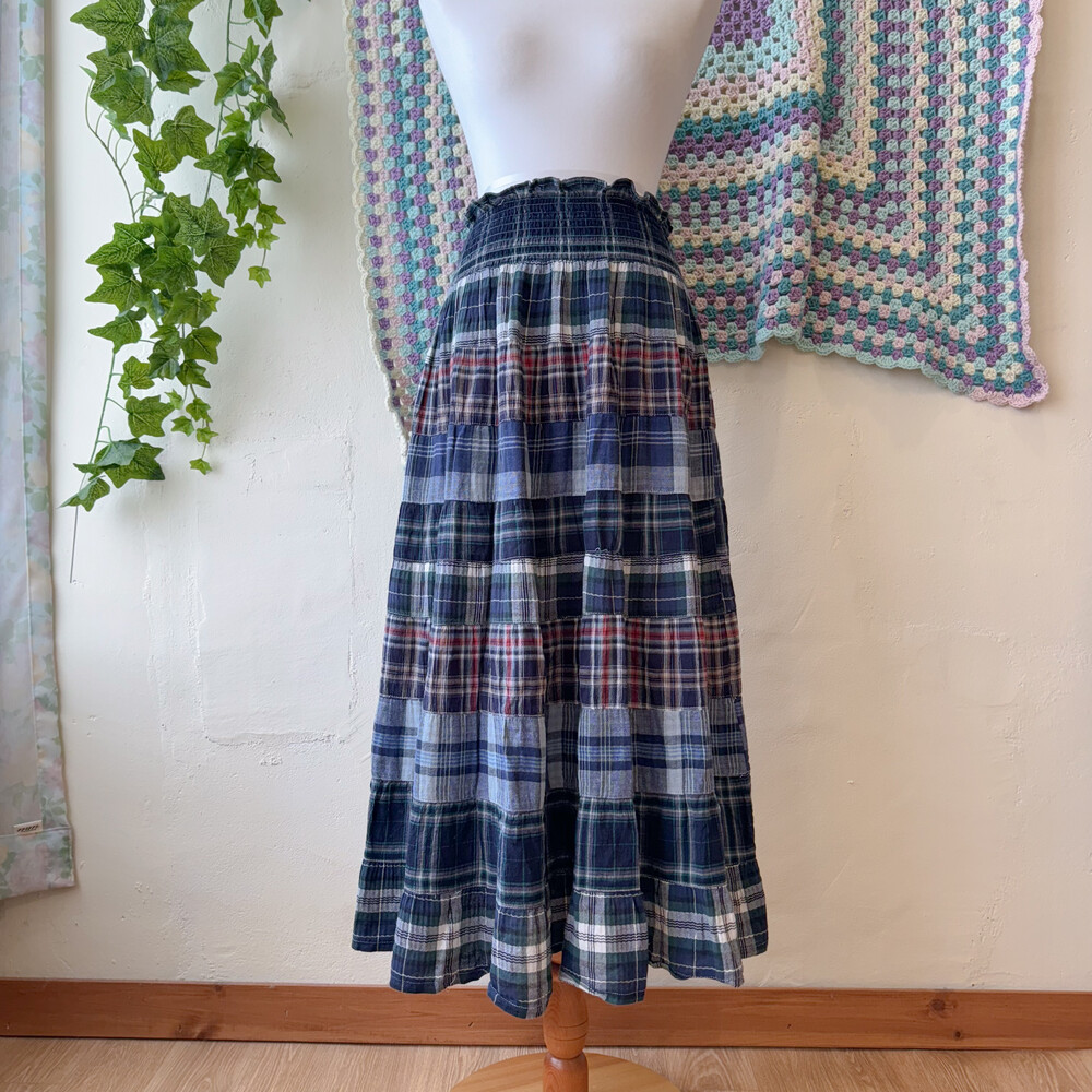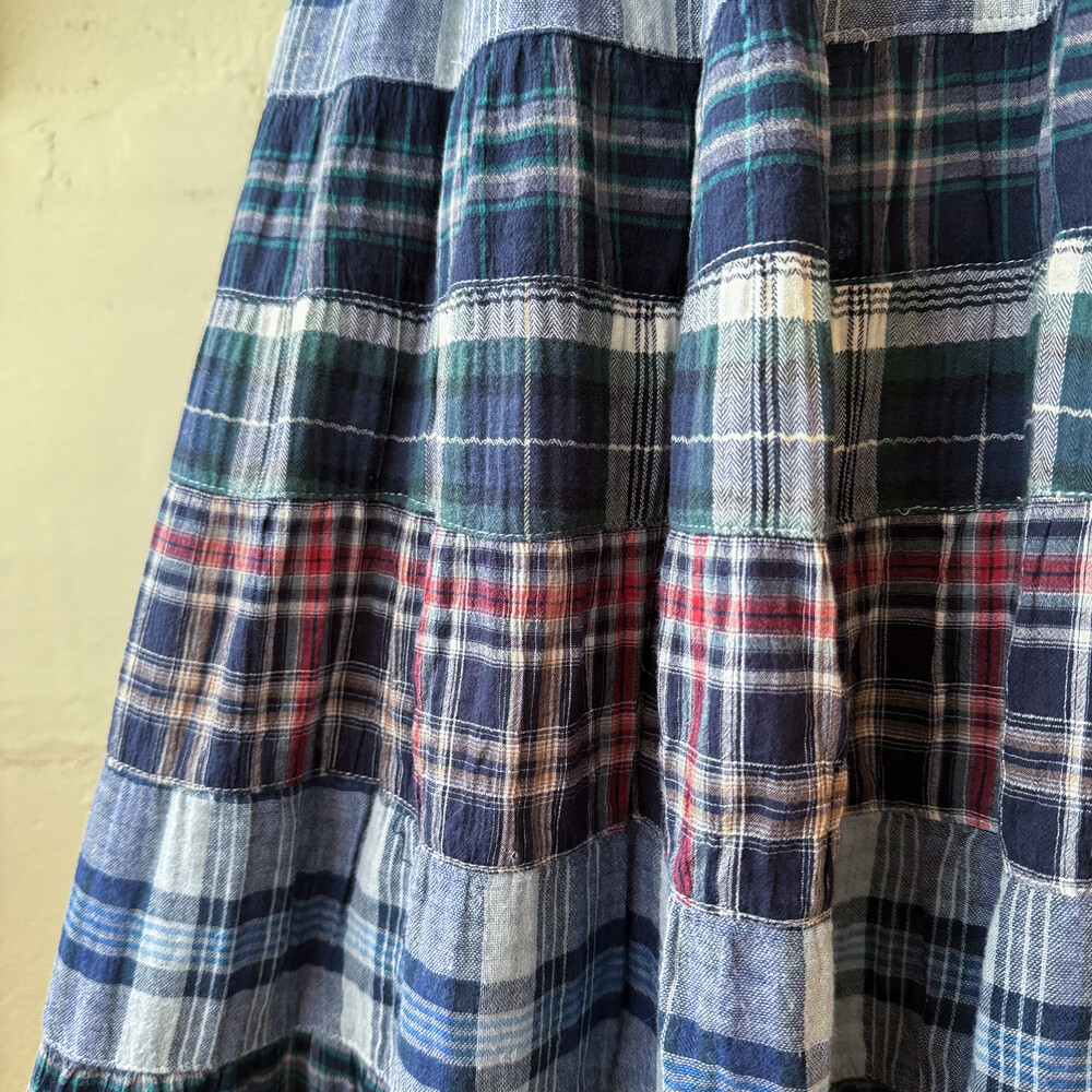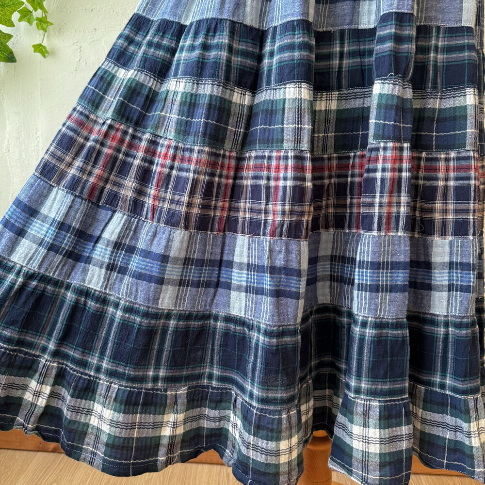 green&navy check patch tiered sk