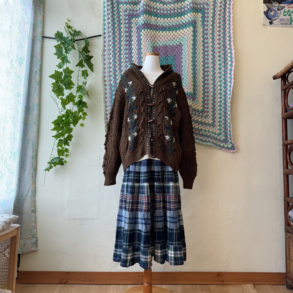 네이비, 그린 색감 조합의 체크 롱스커트예요