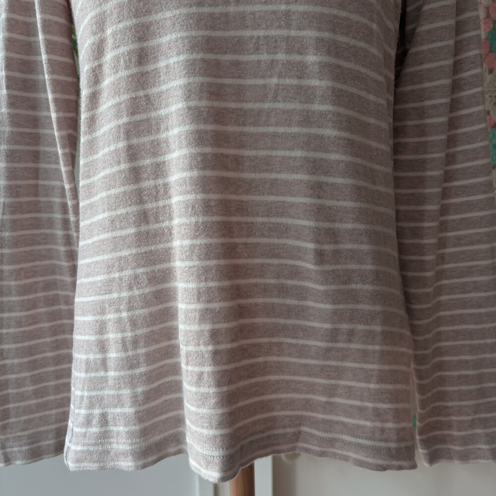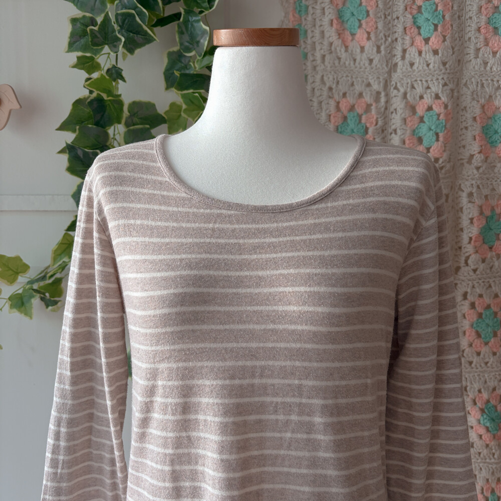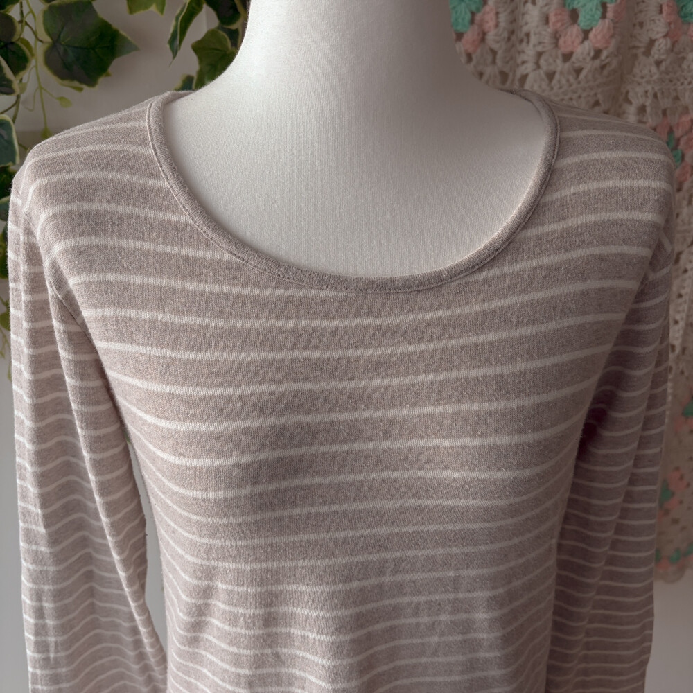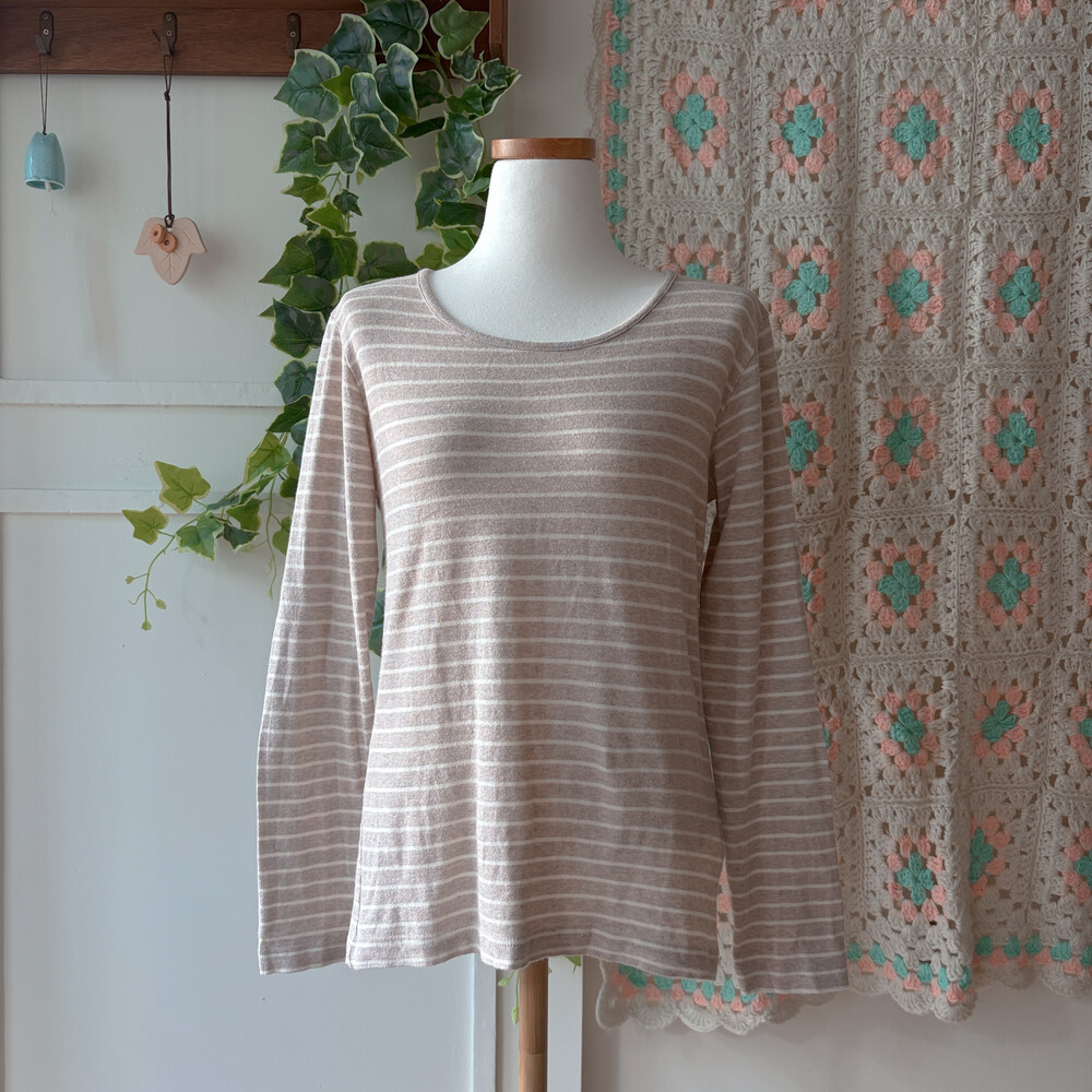 sm2 beige stripe round neck top