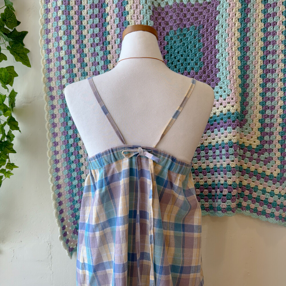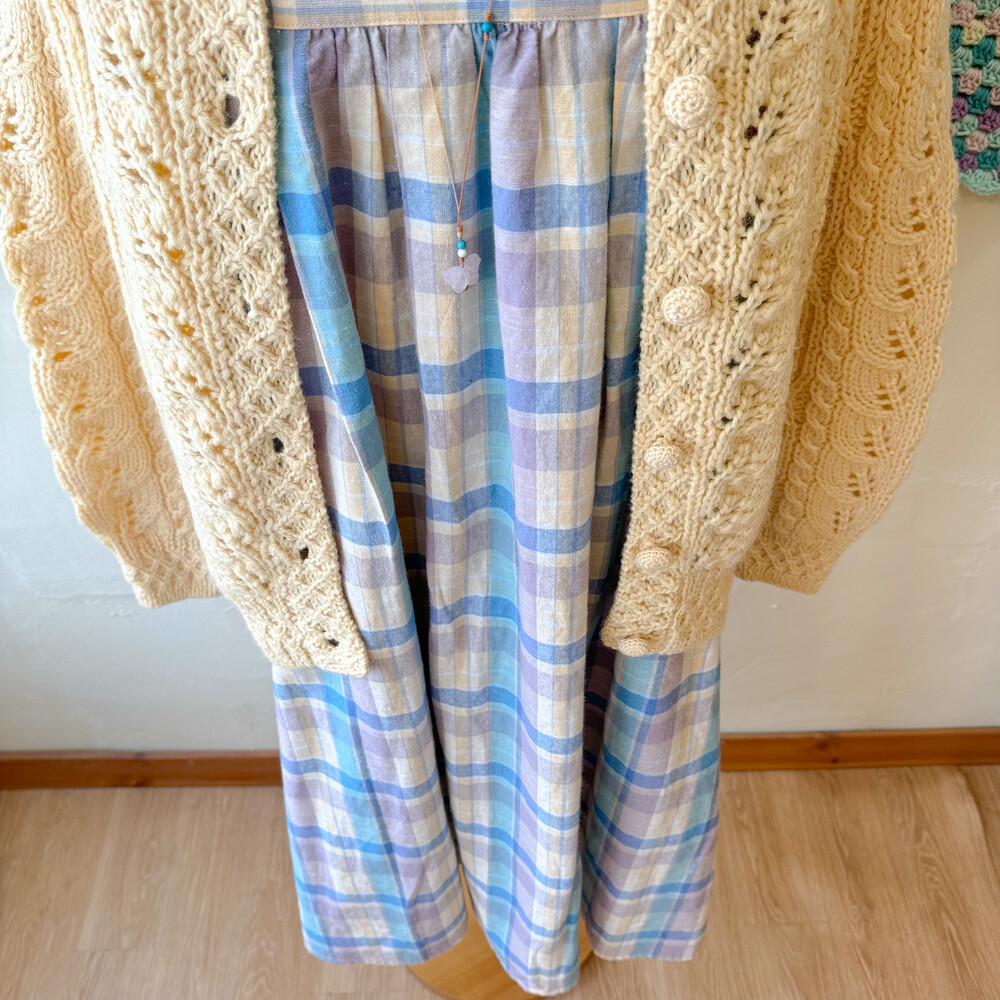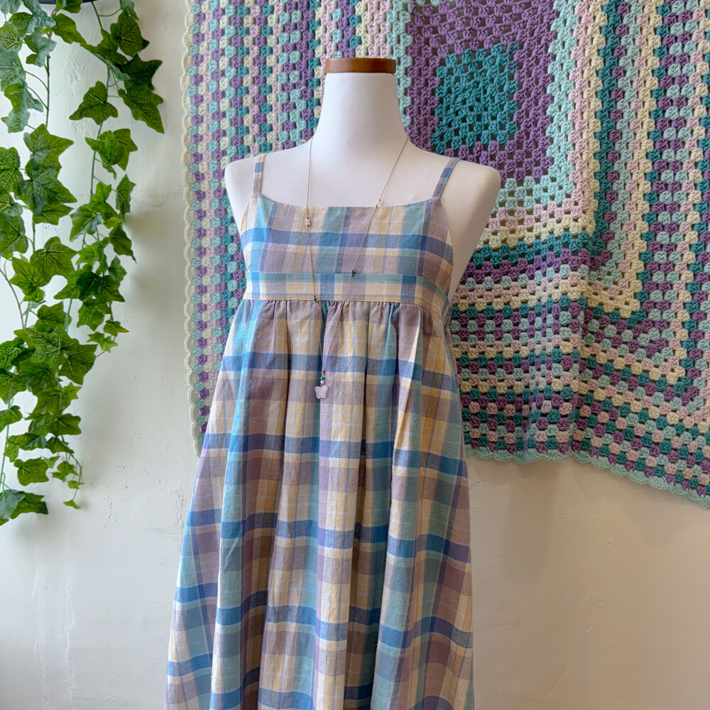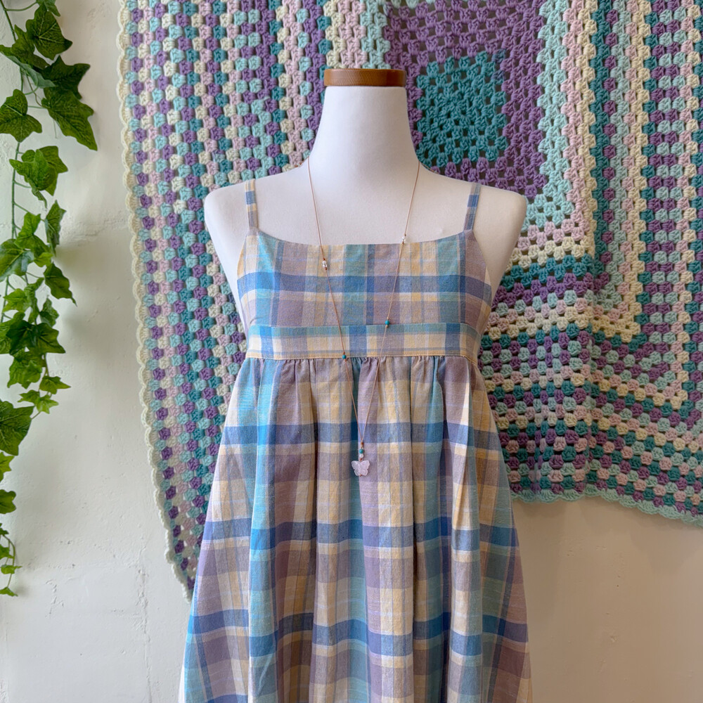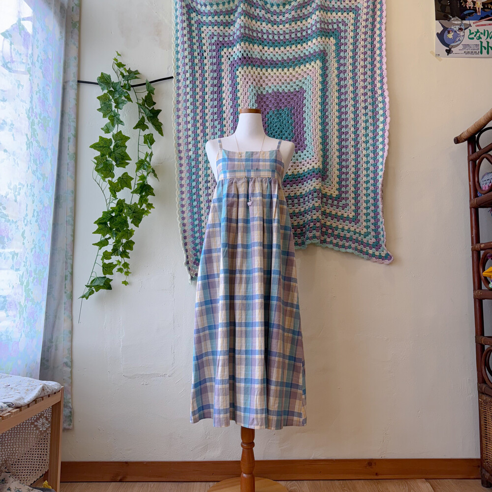 퍼플 블루 상아색감 등의 조합된 모리모리한 끈원피스예요