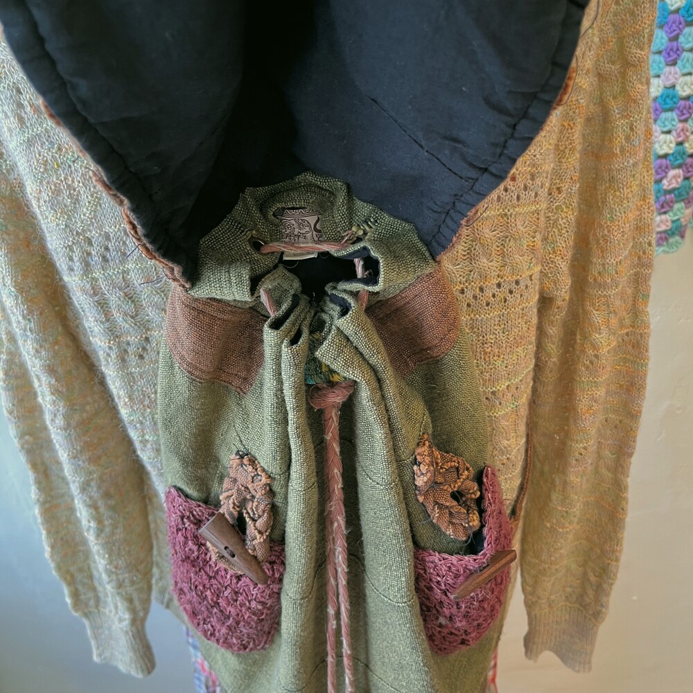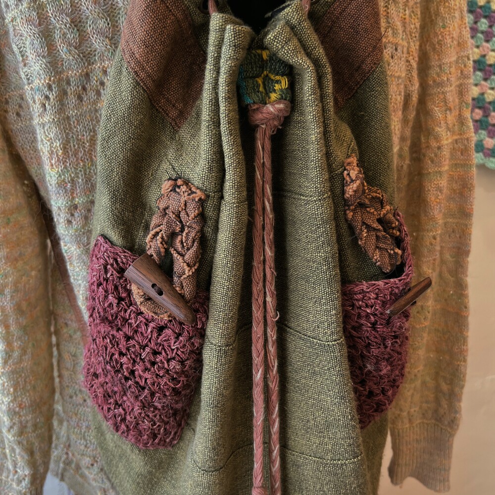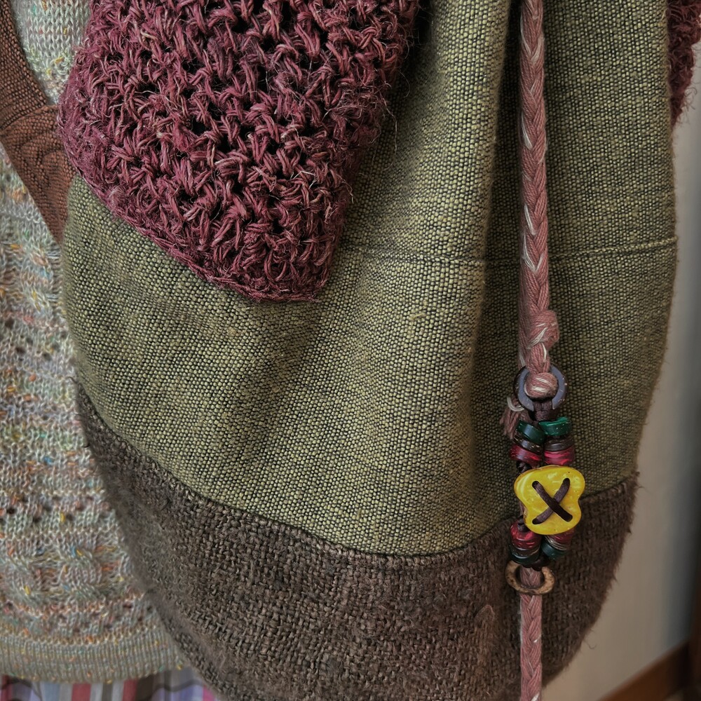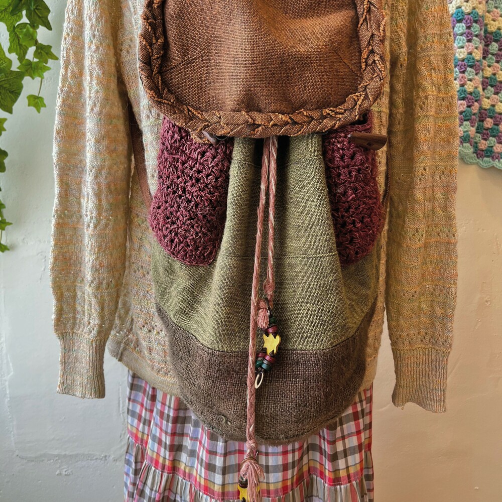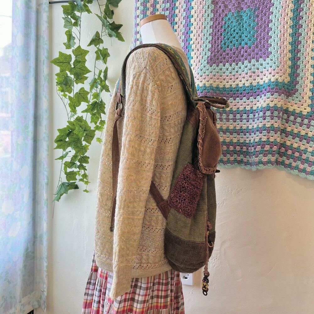 카키색감 베이스에 찐 히피 분위기의 백팩으로